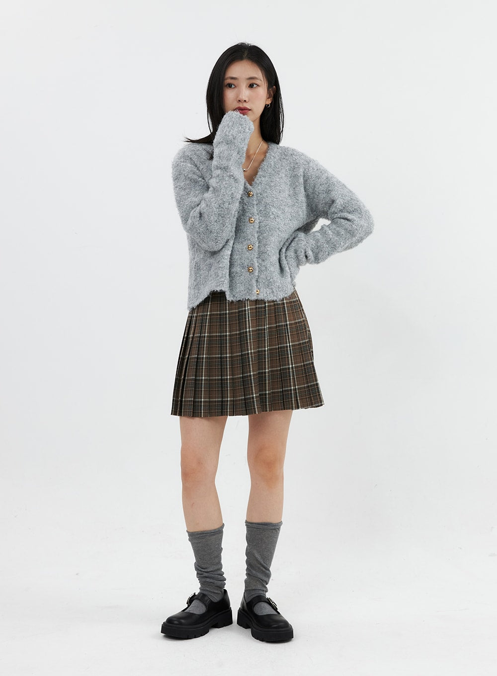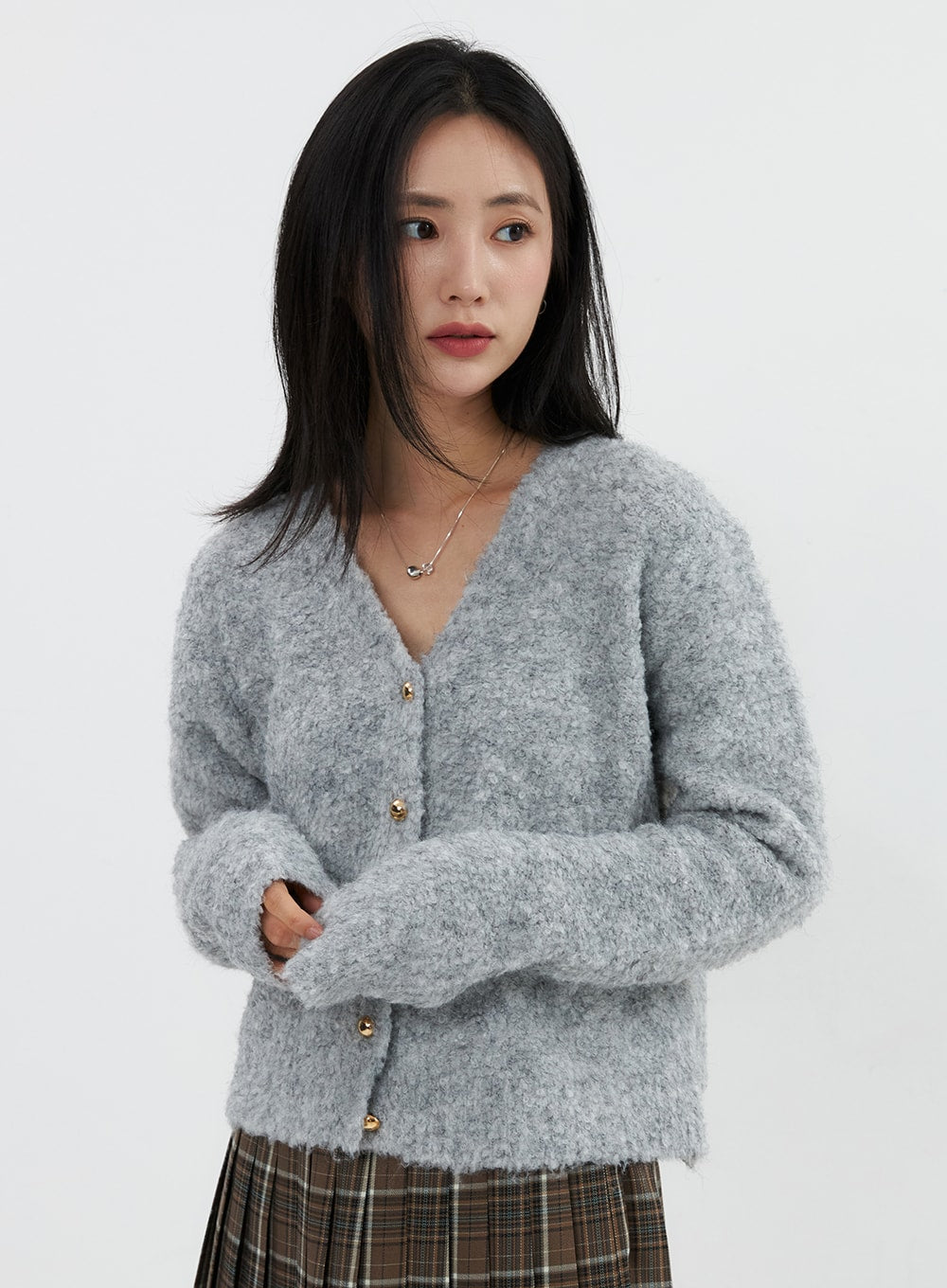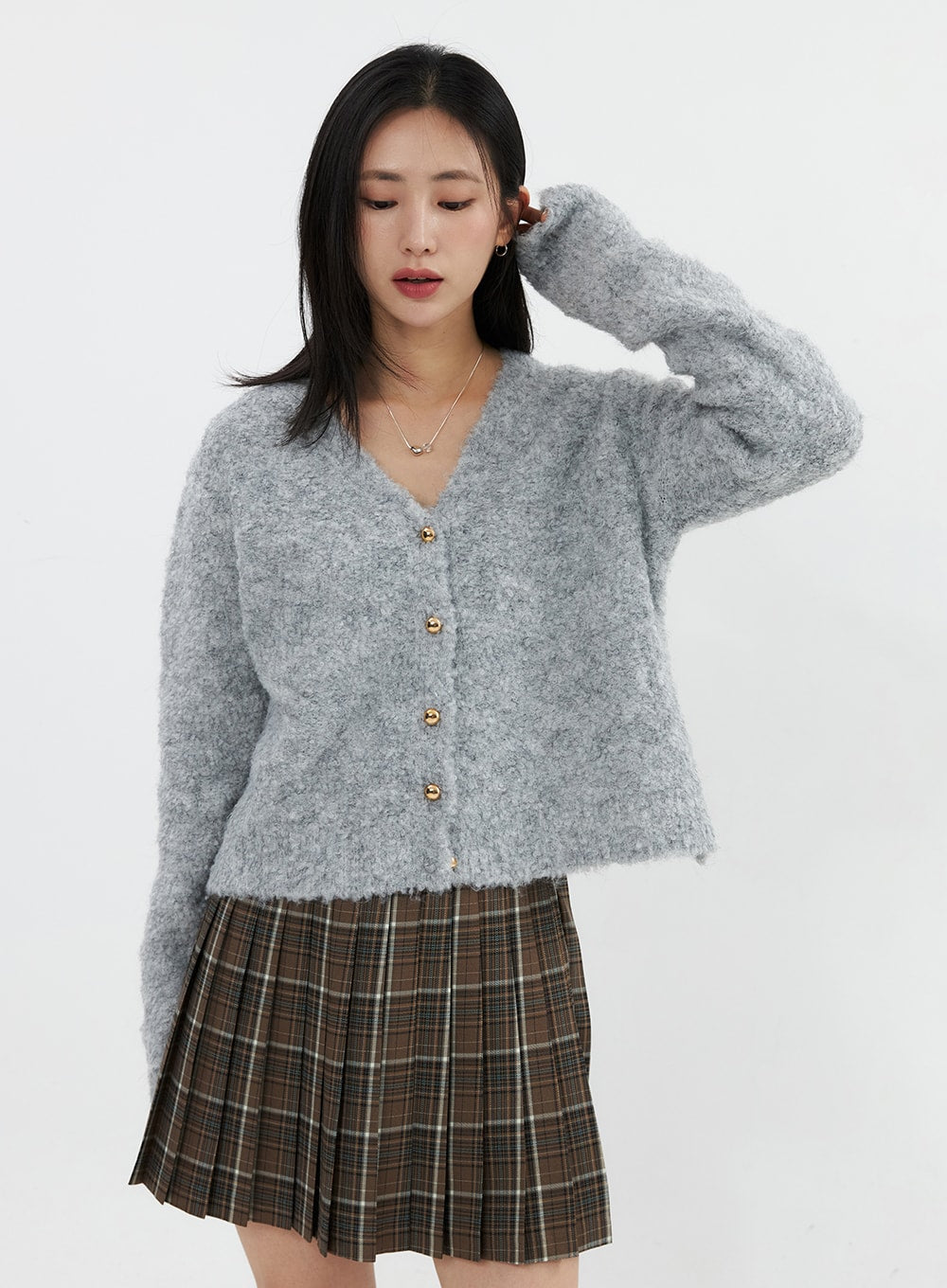Fuzzy V-Neck Cardigan OS326
