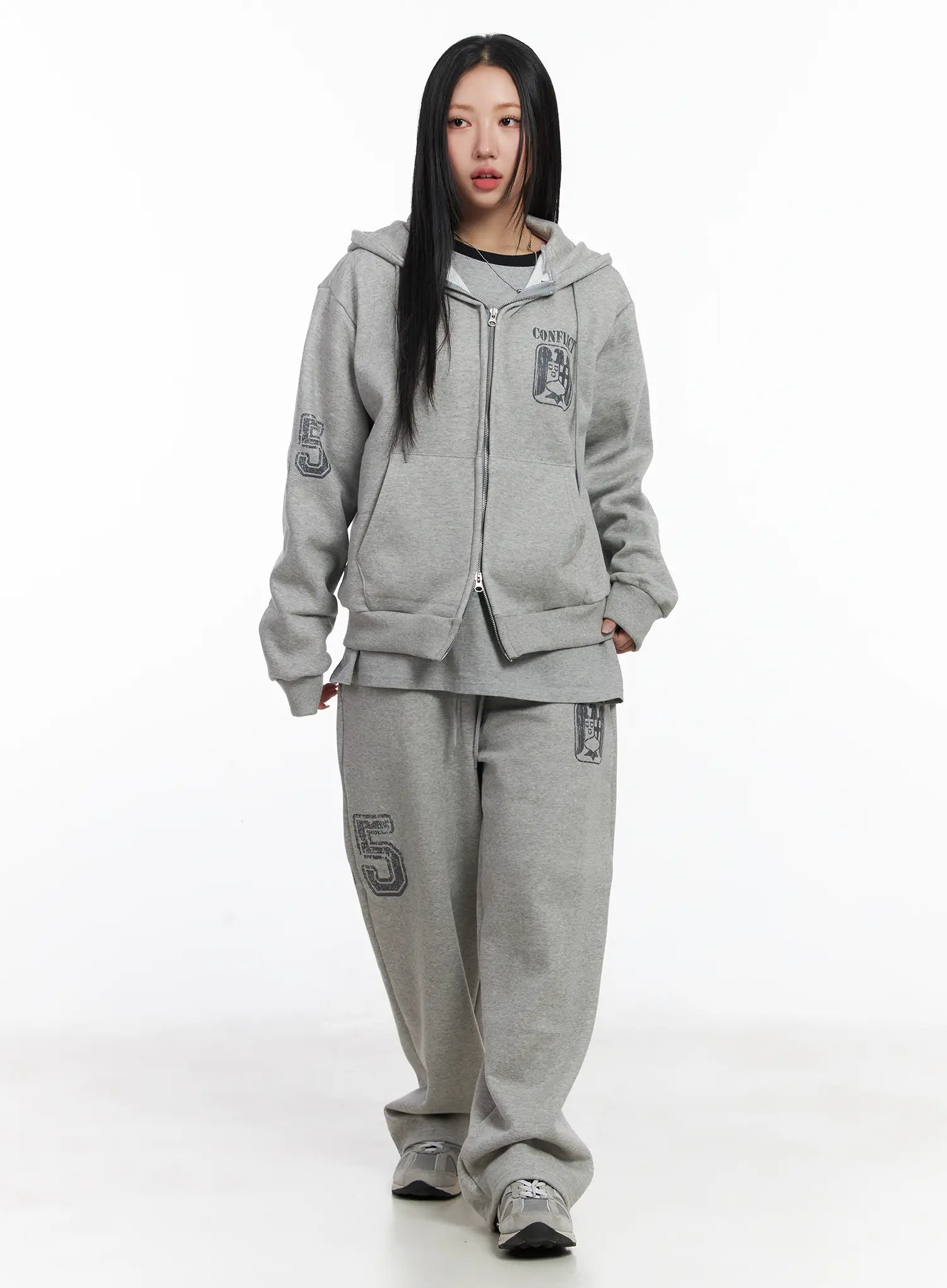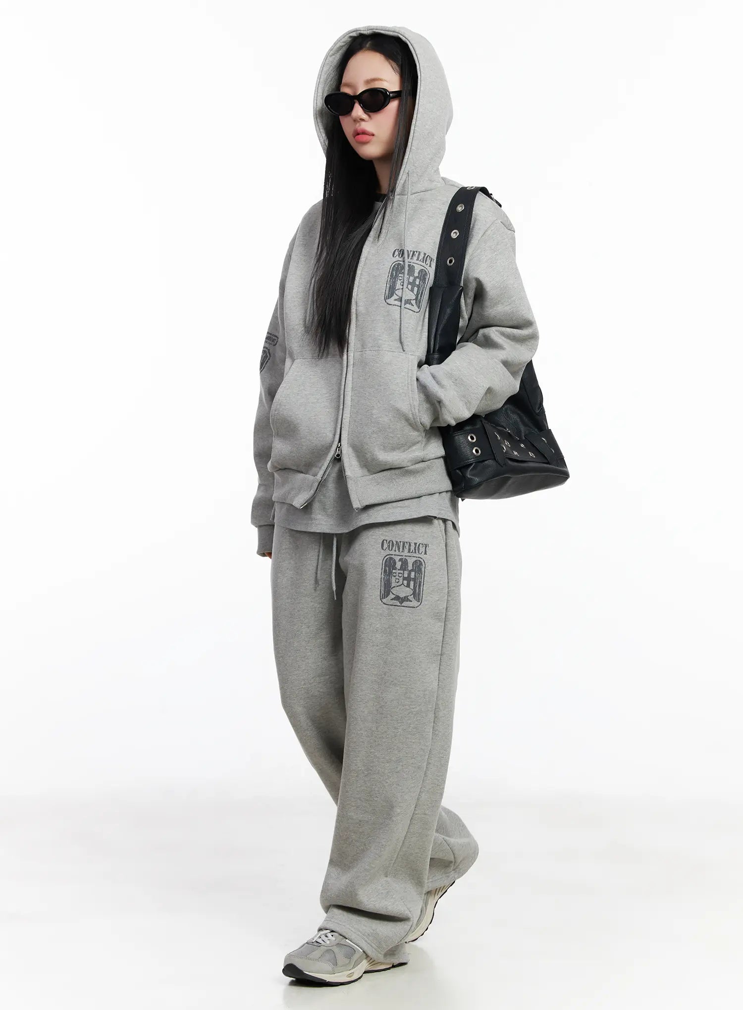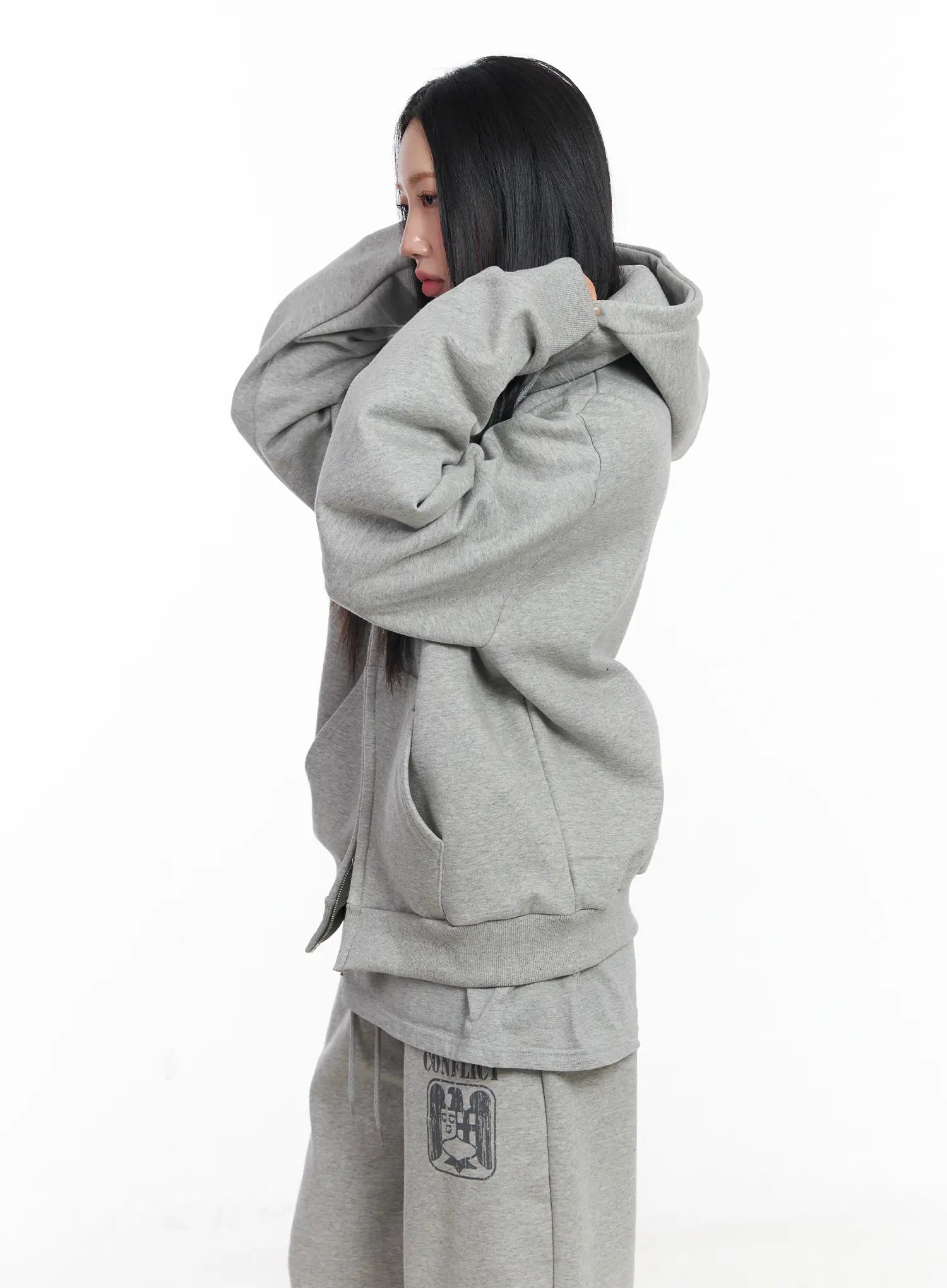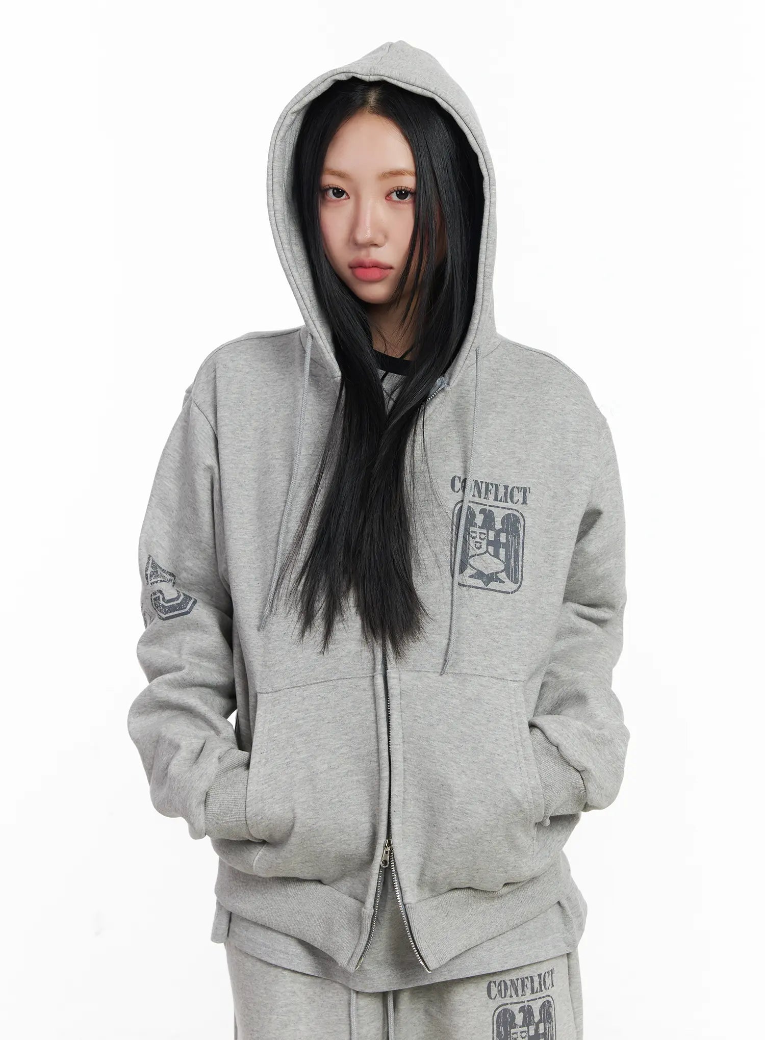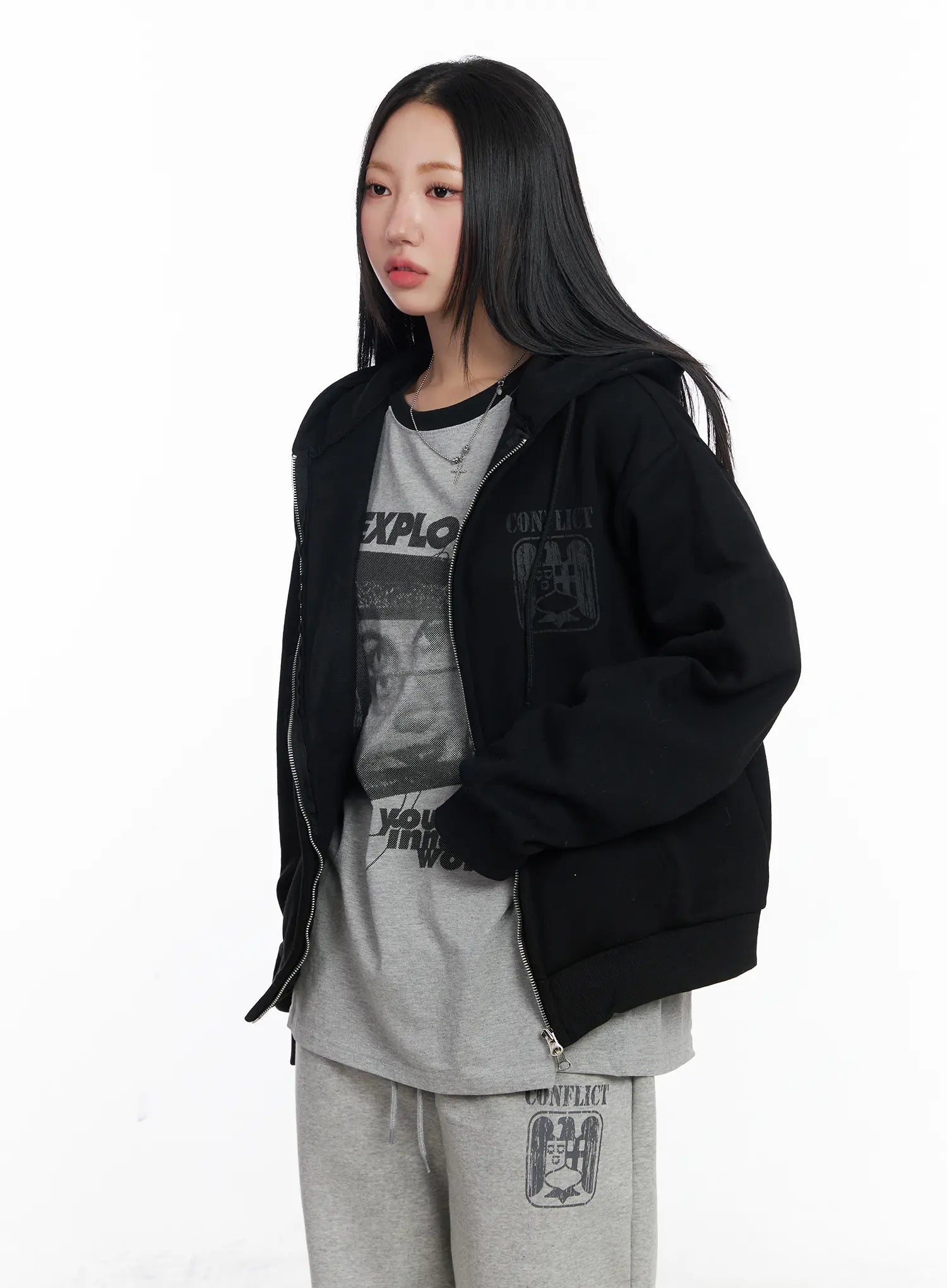 Graphic Fleece Oversized Zip-Up Hoodie CJ515