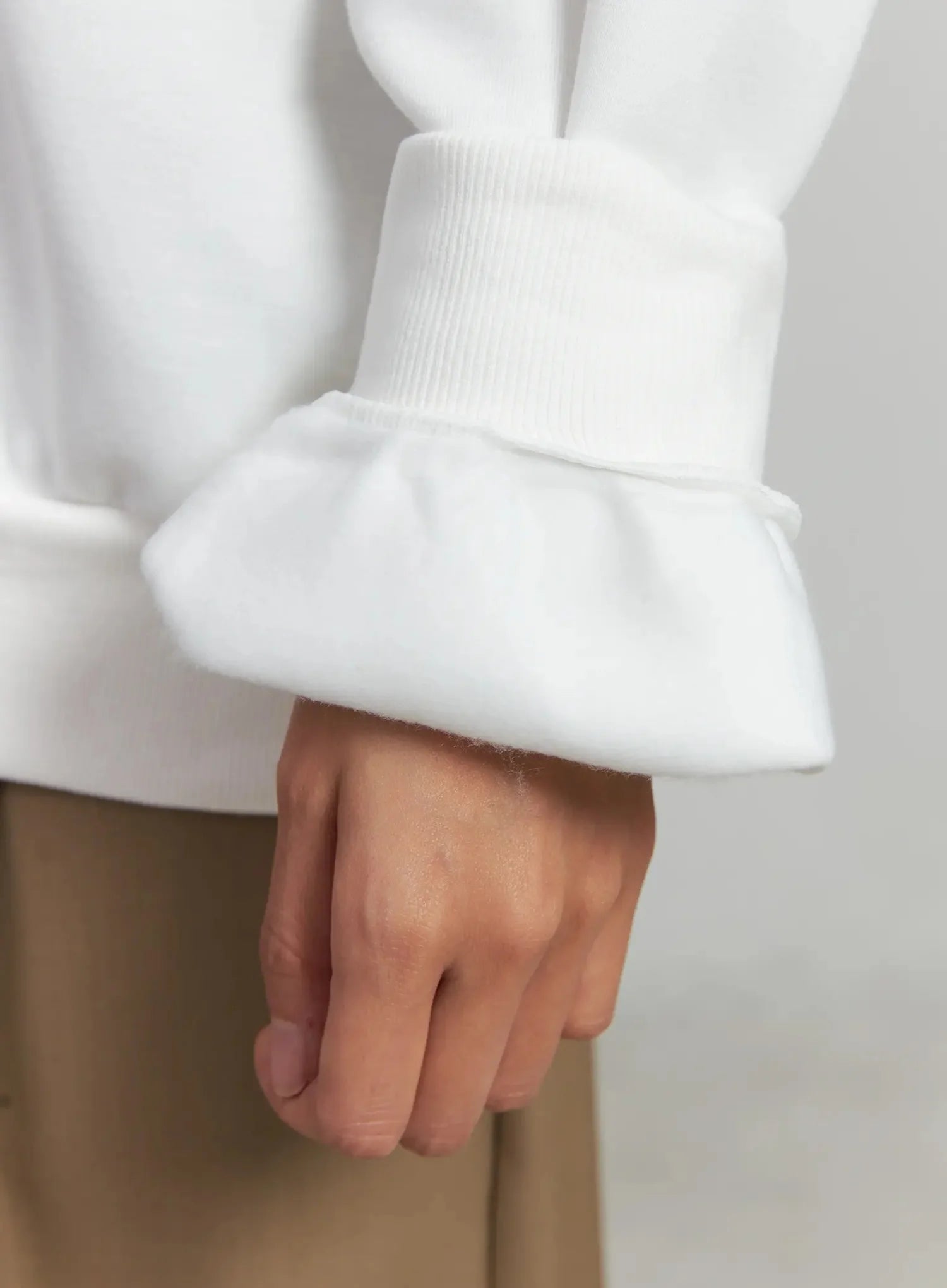 Model is wearing size M/L and the color White.