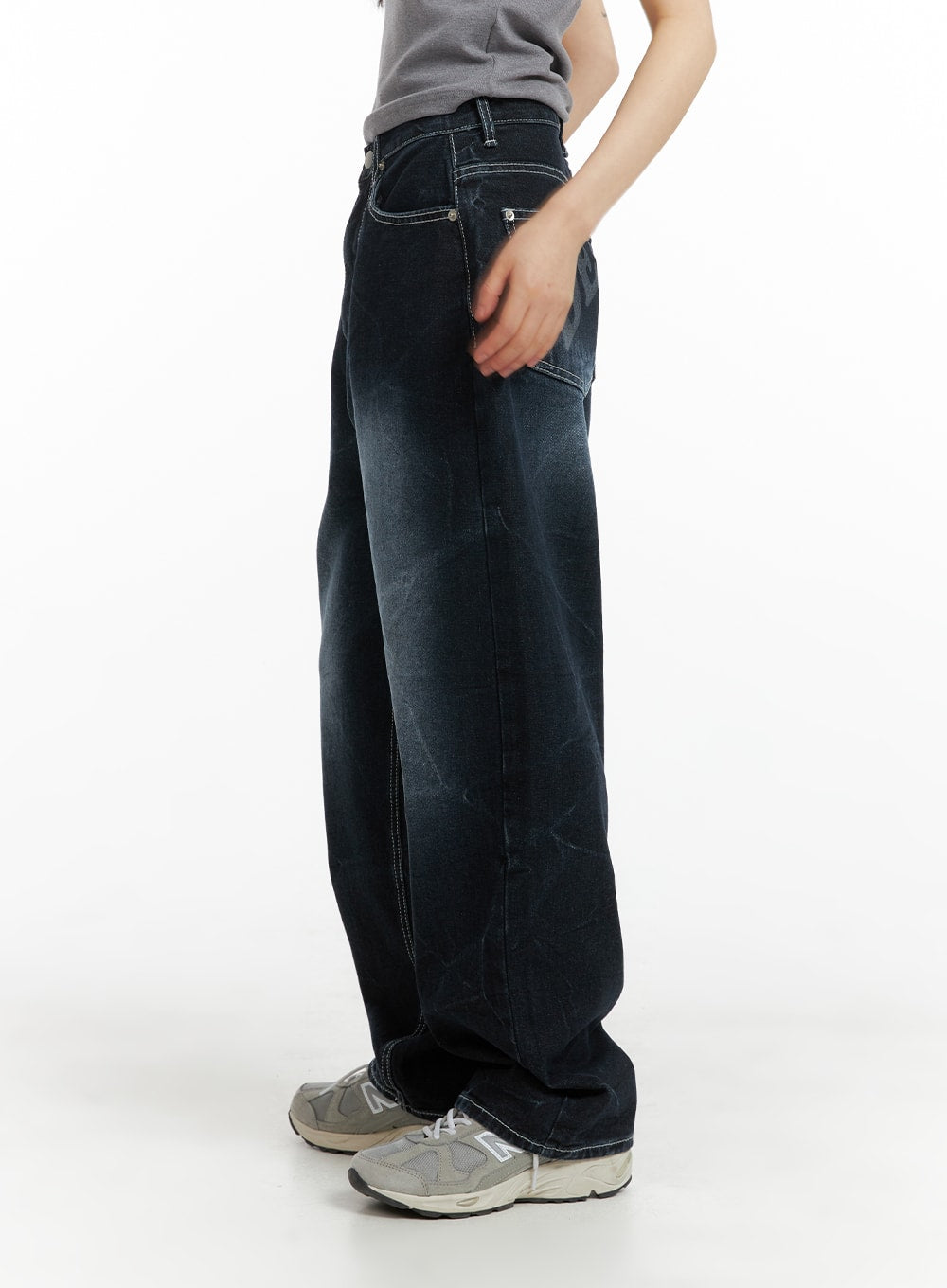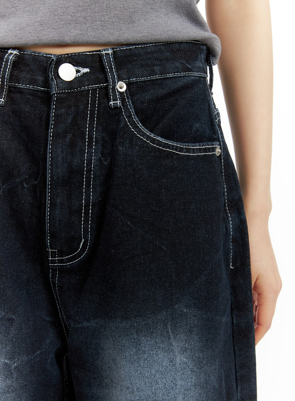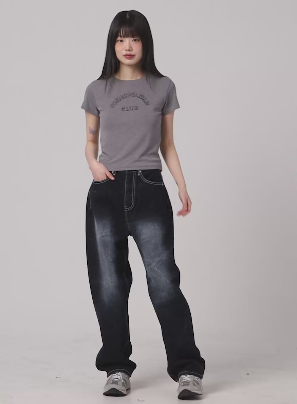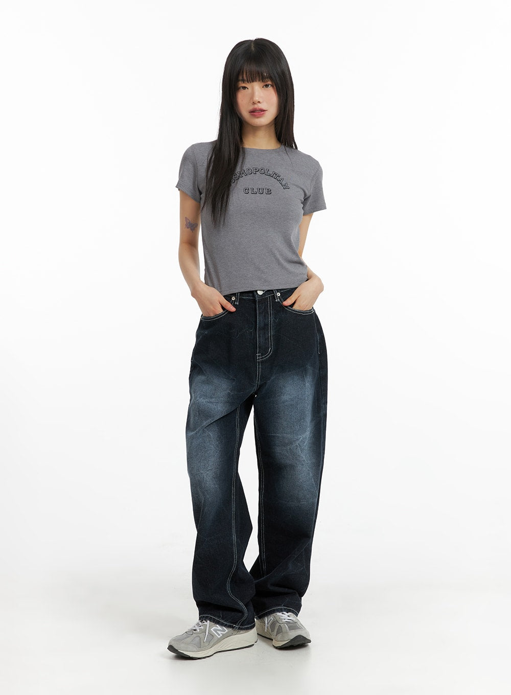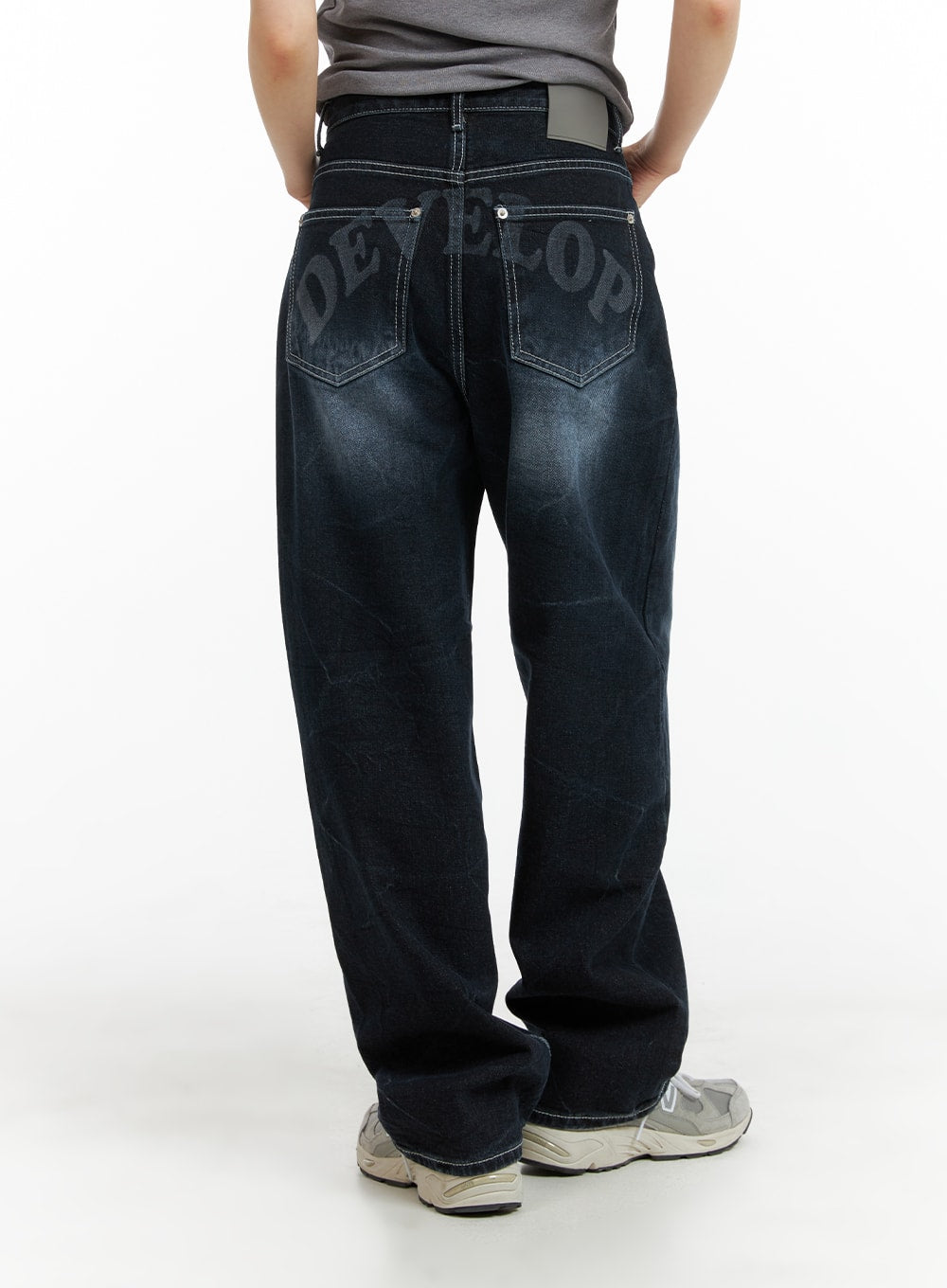 Graphic Lettering Dark Washed Baggy Jeans CM412