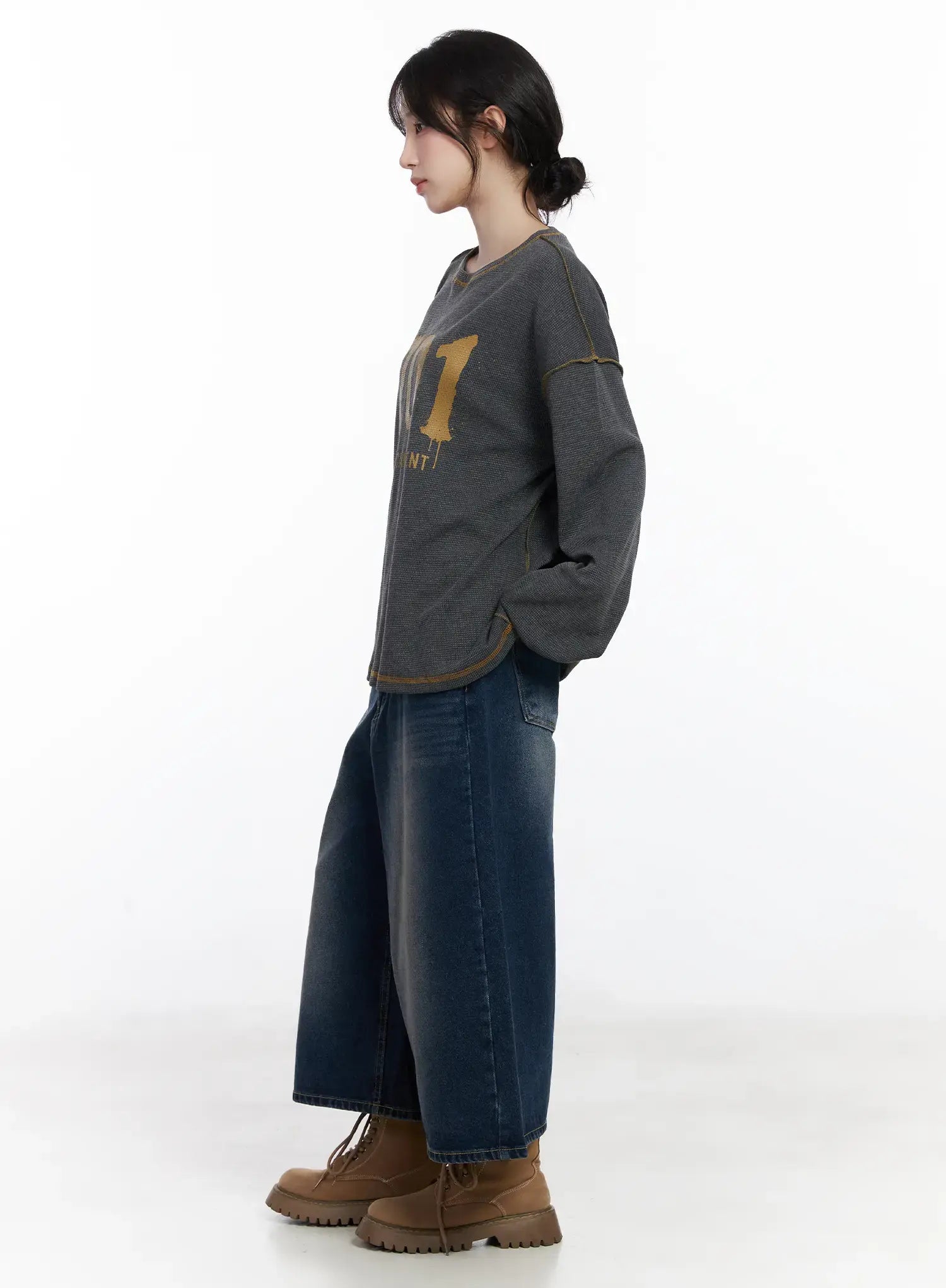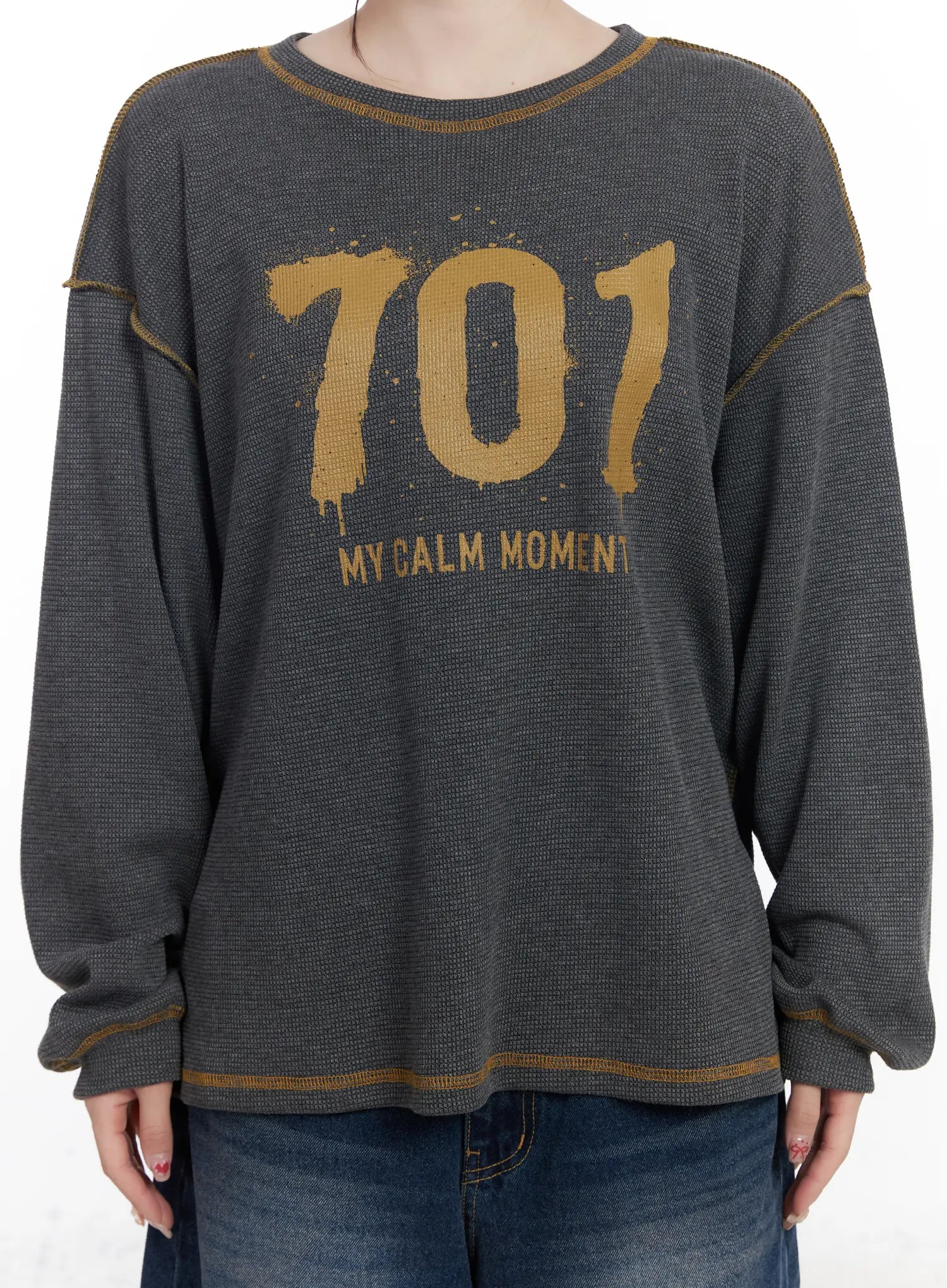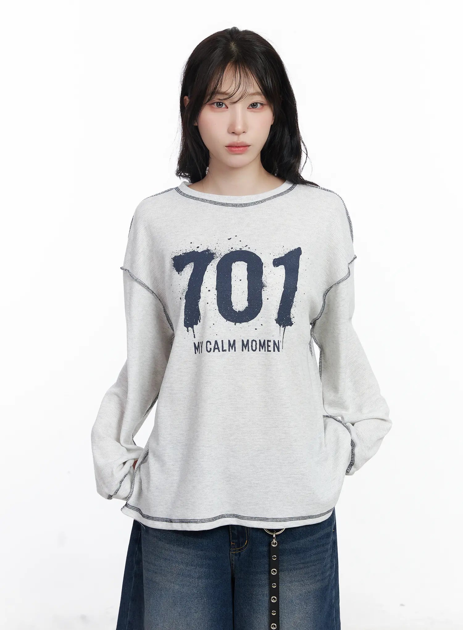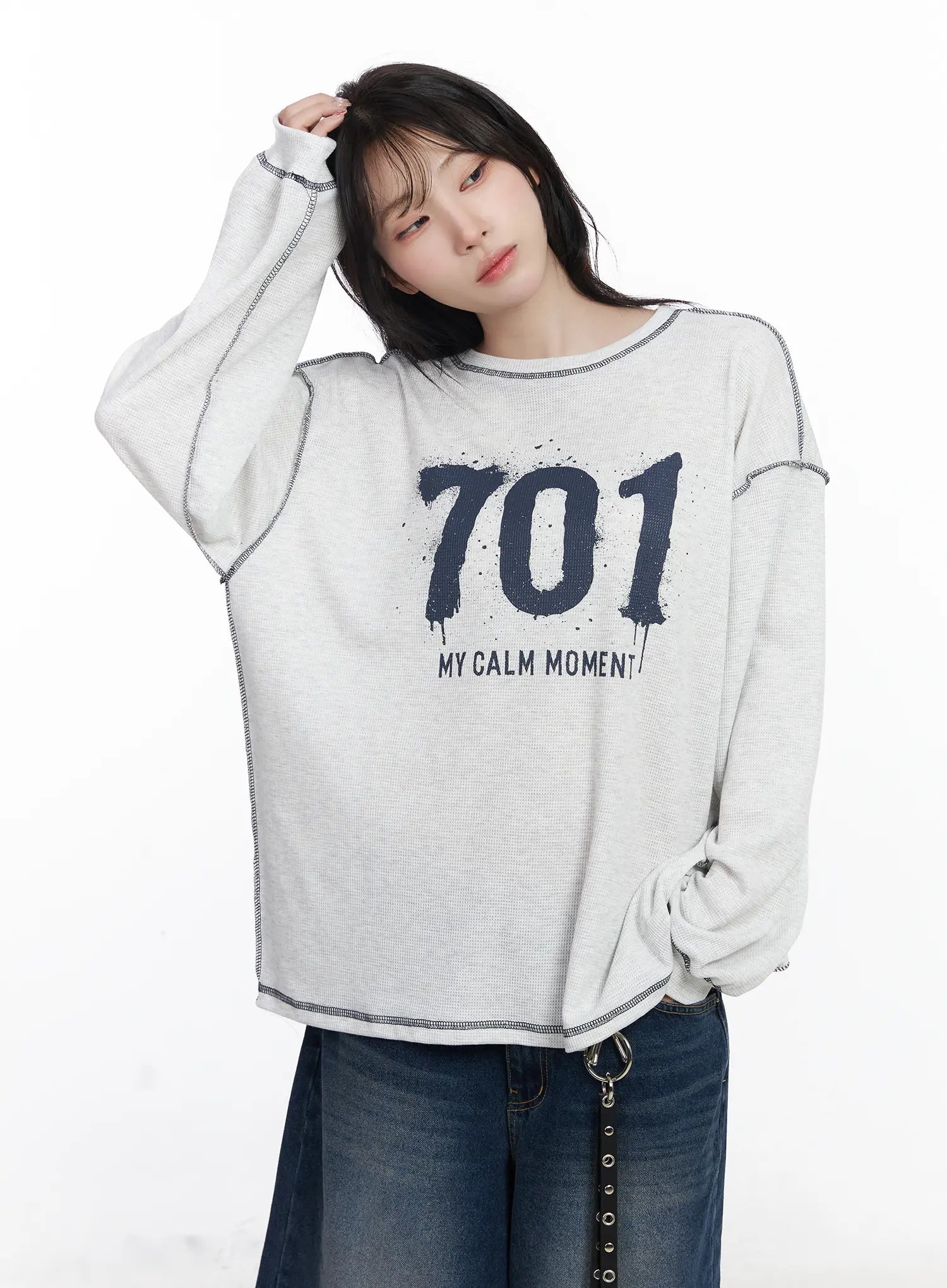 Graphic Oversized Textured Long Sleeve Top CJ527