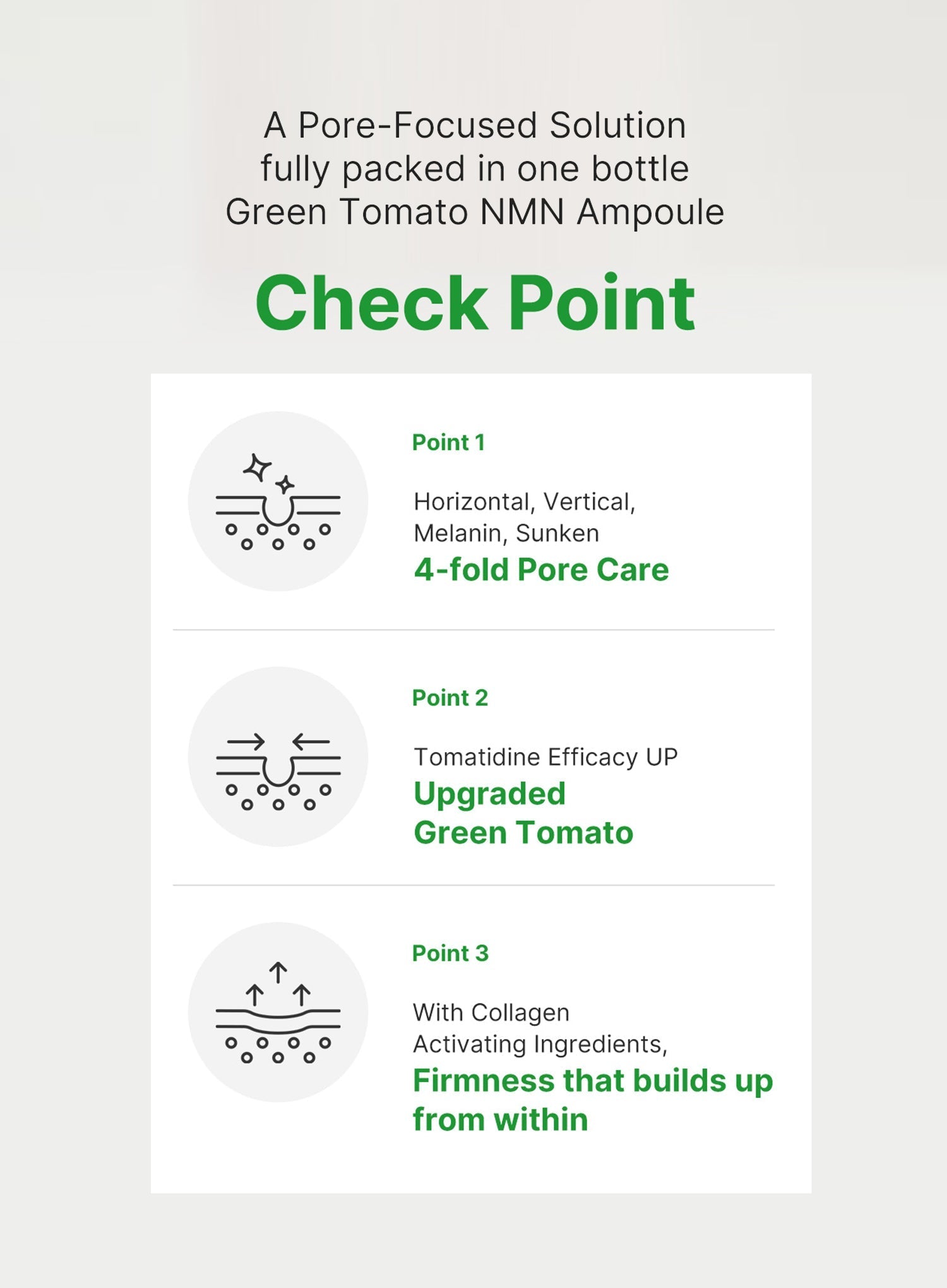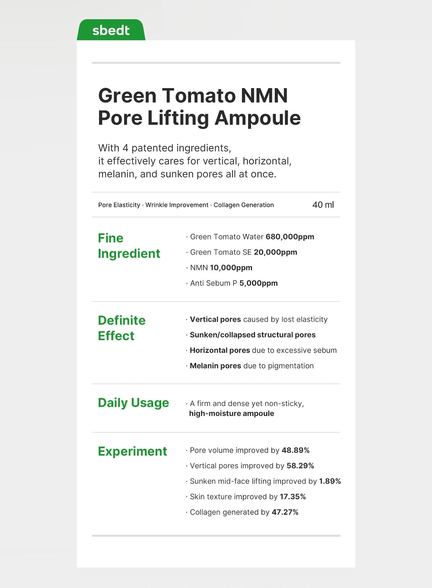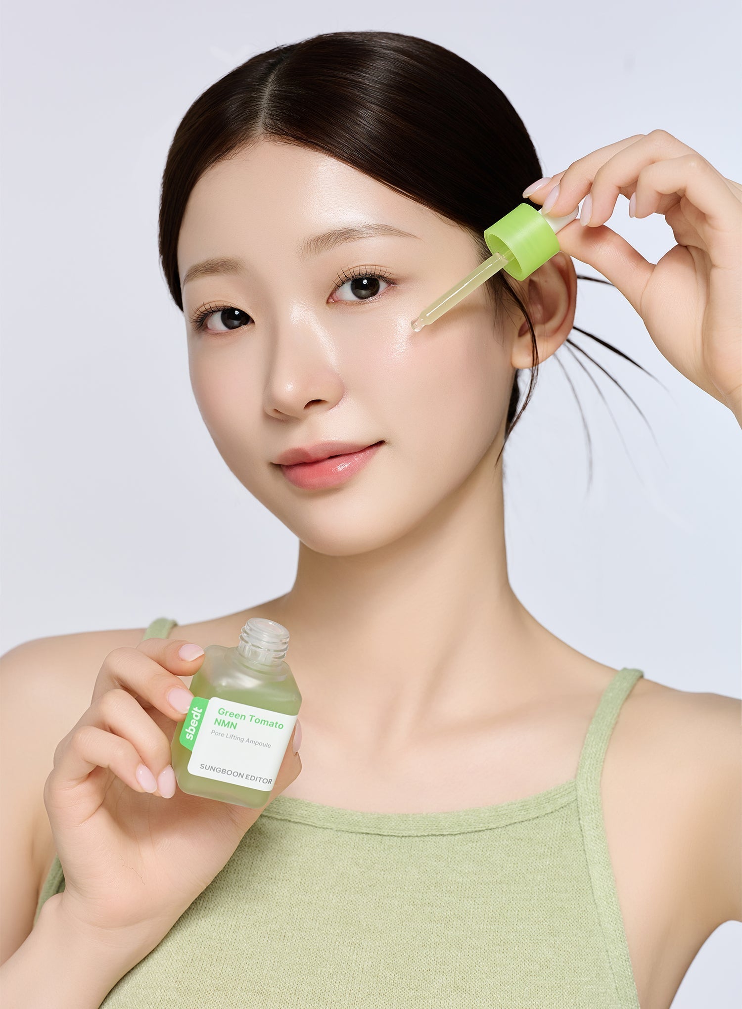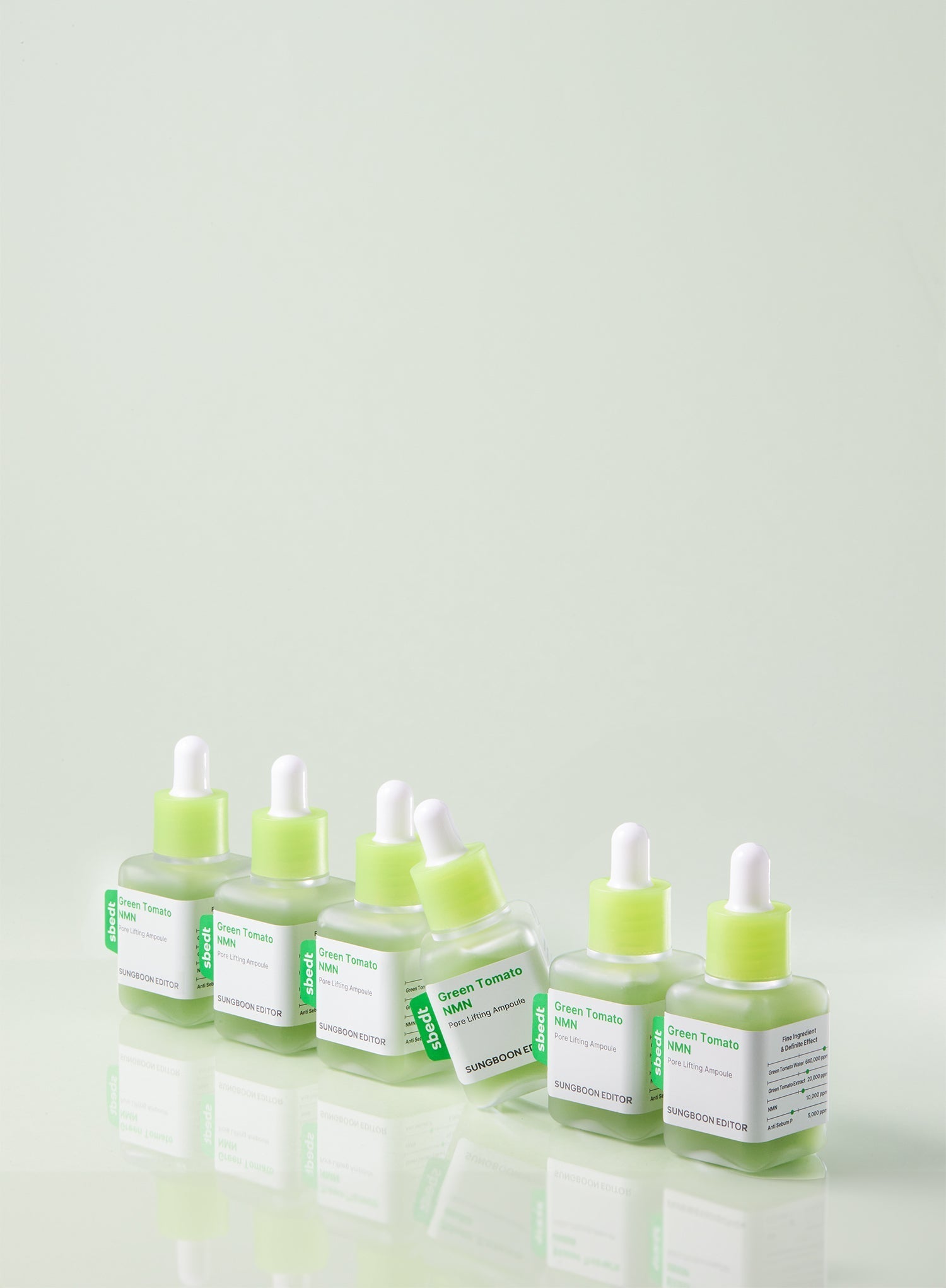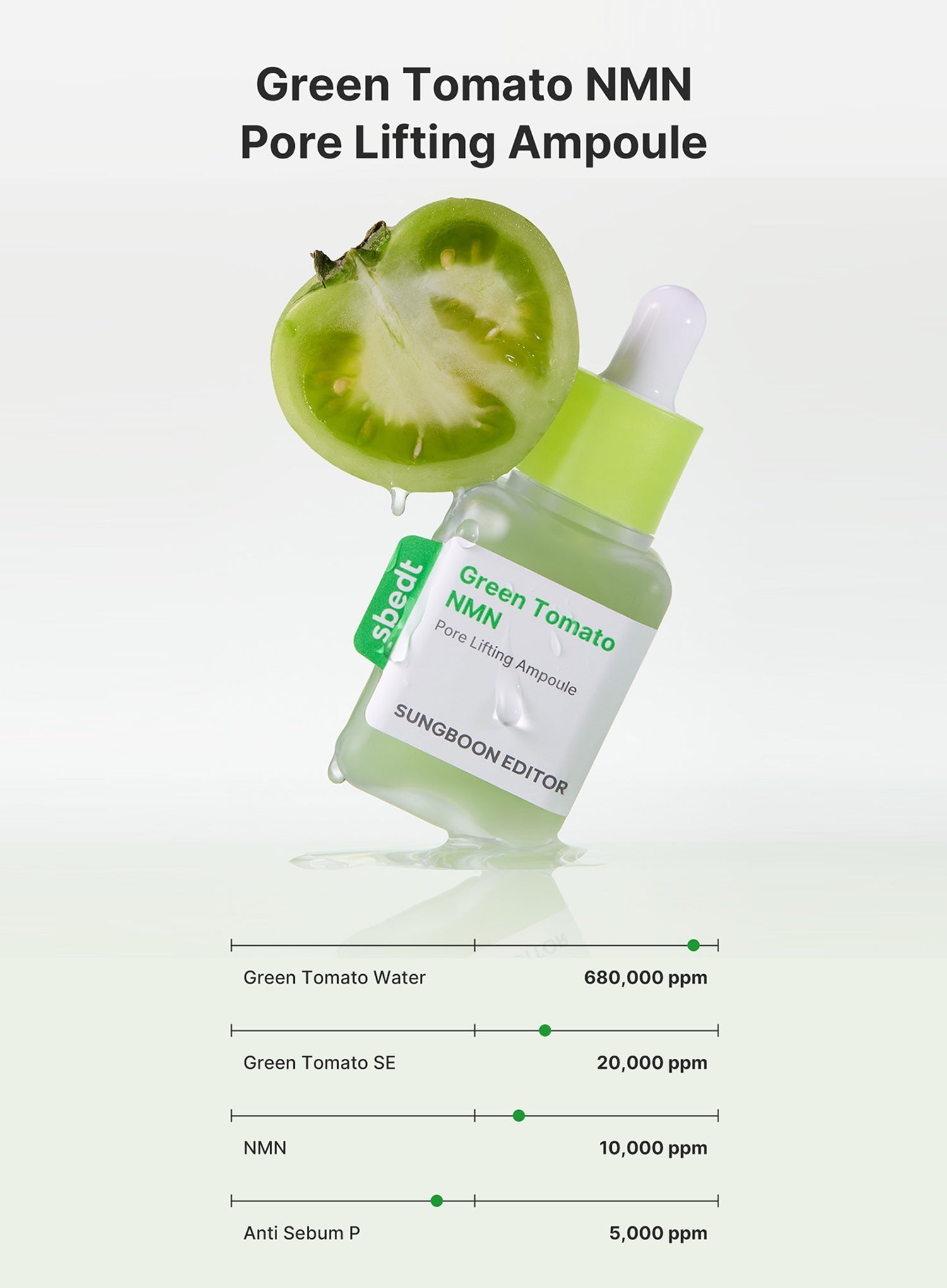 Green tomato water ampoule supporting pore appearance and skin elasticity.