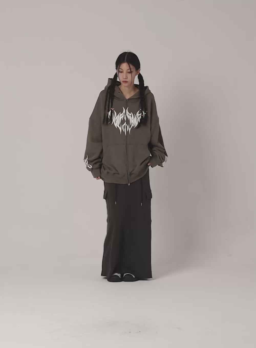 Grunge Graphic Zip-Up Hoodie IS322