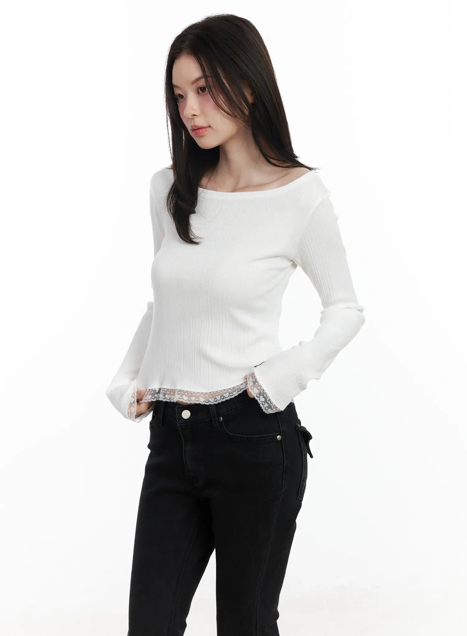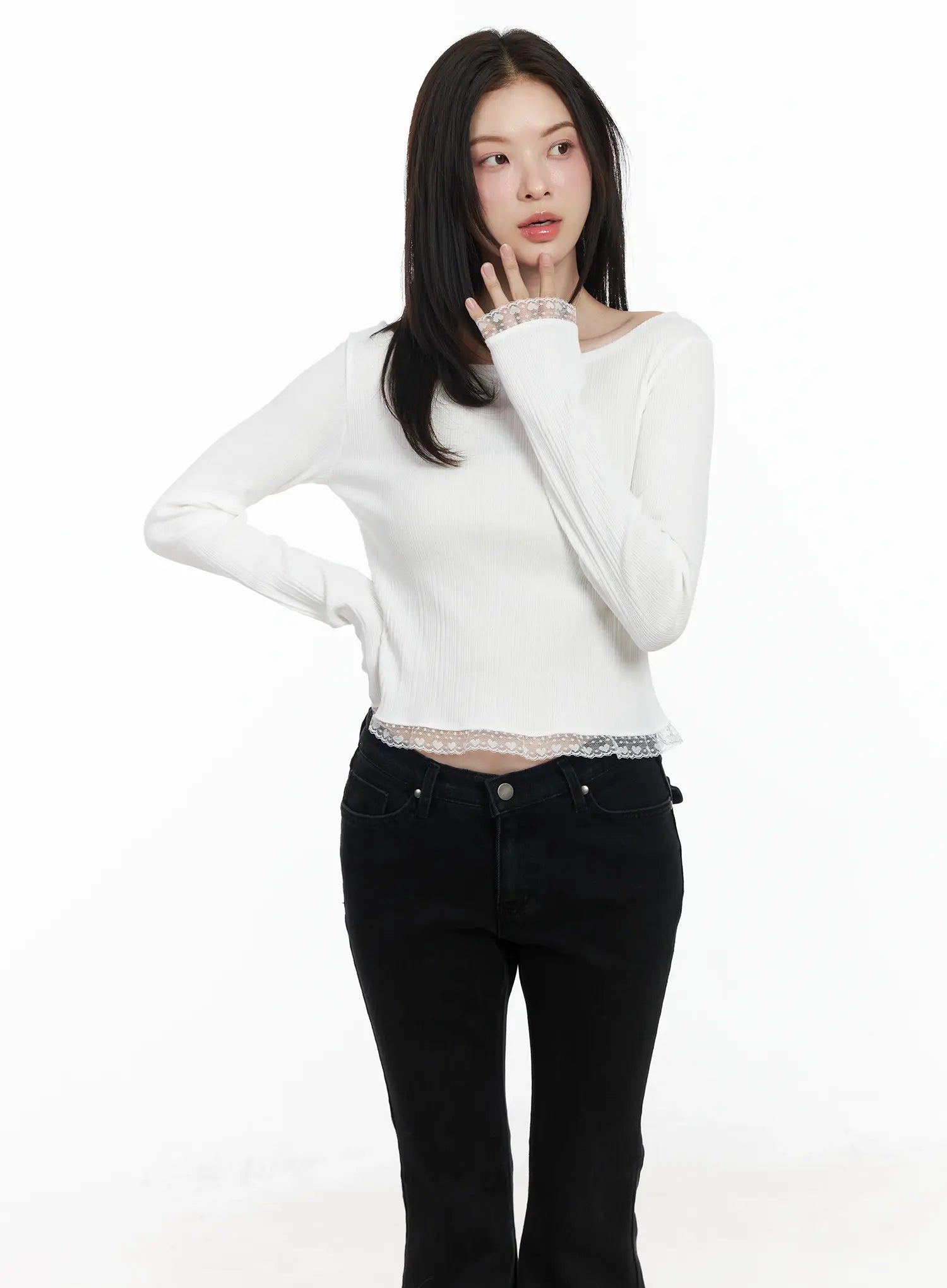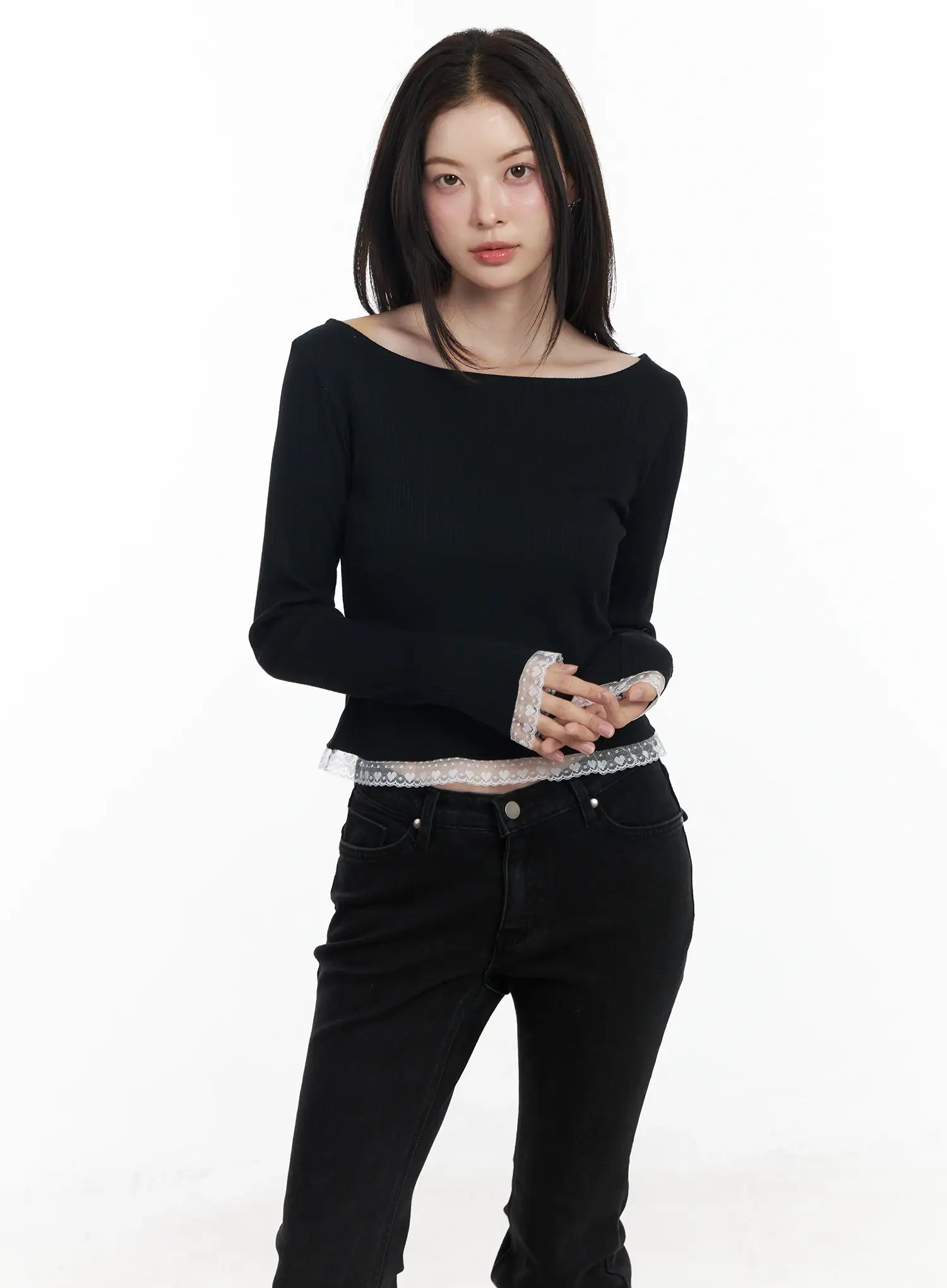Heart Lace Frill Hem Boat-Neck Top IF520