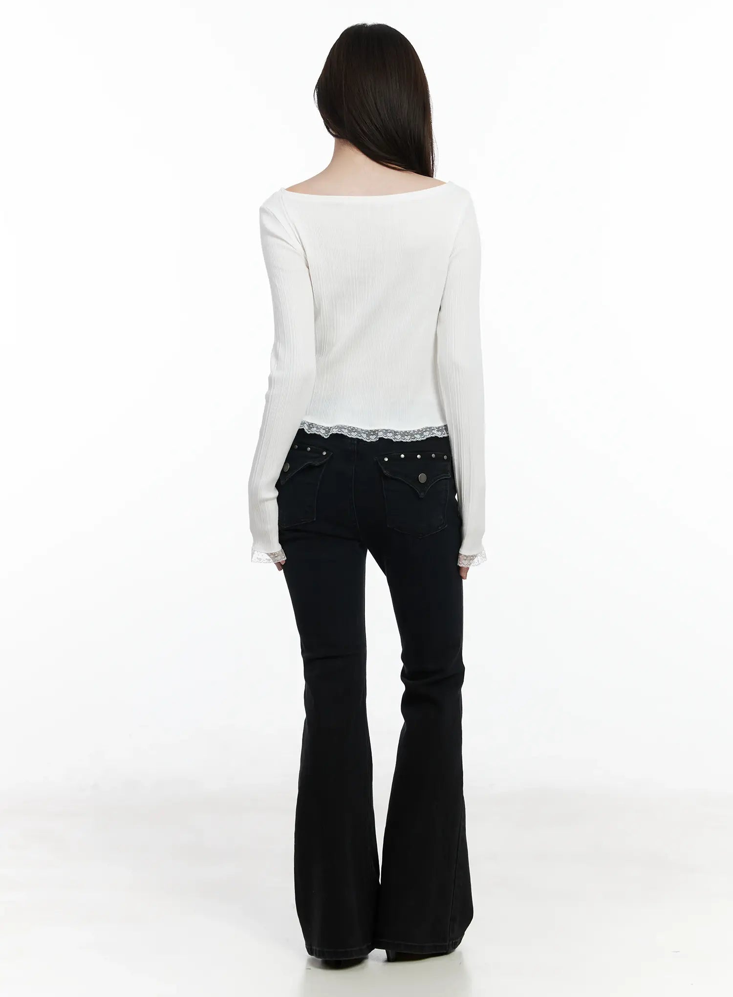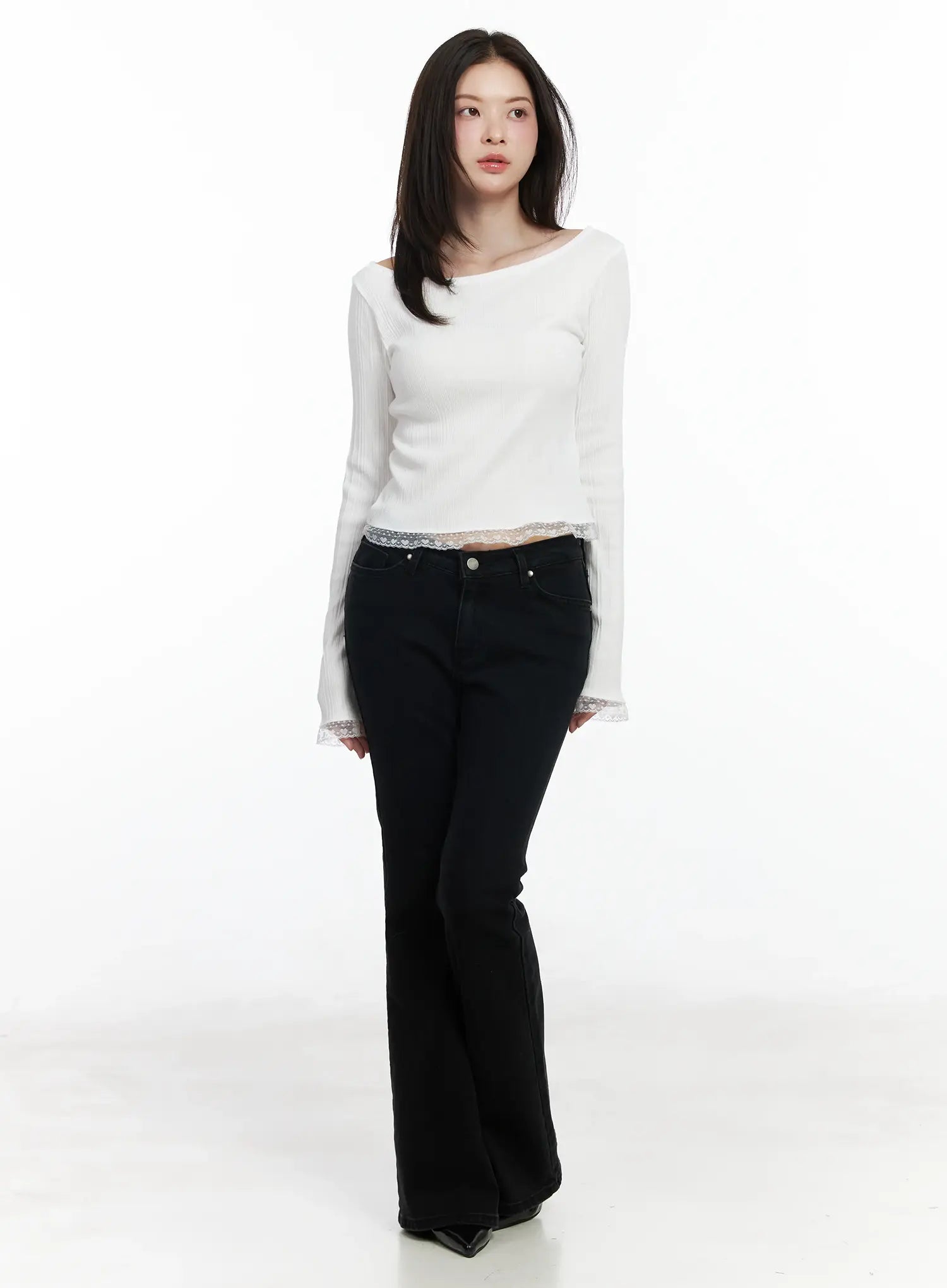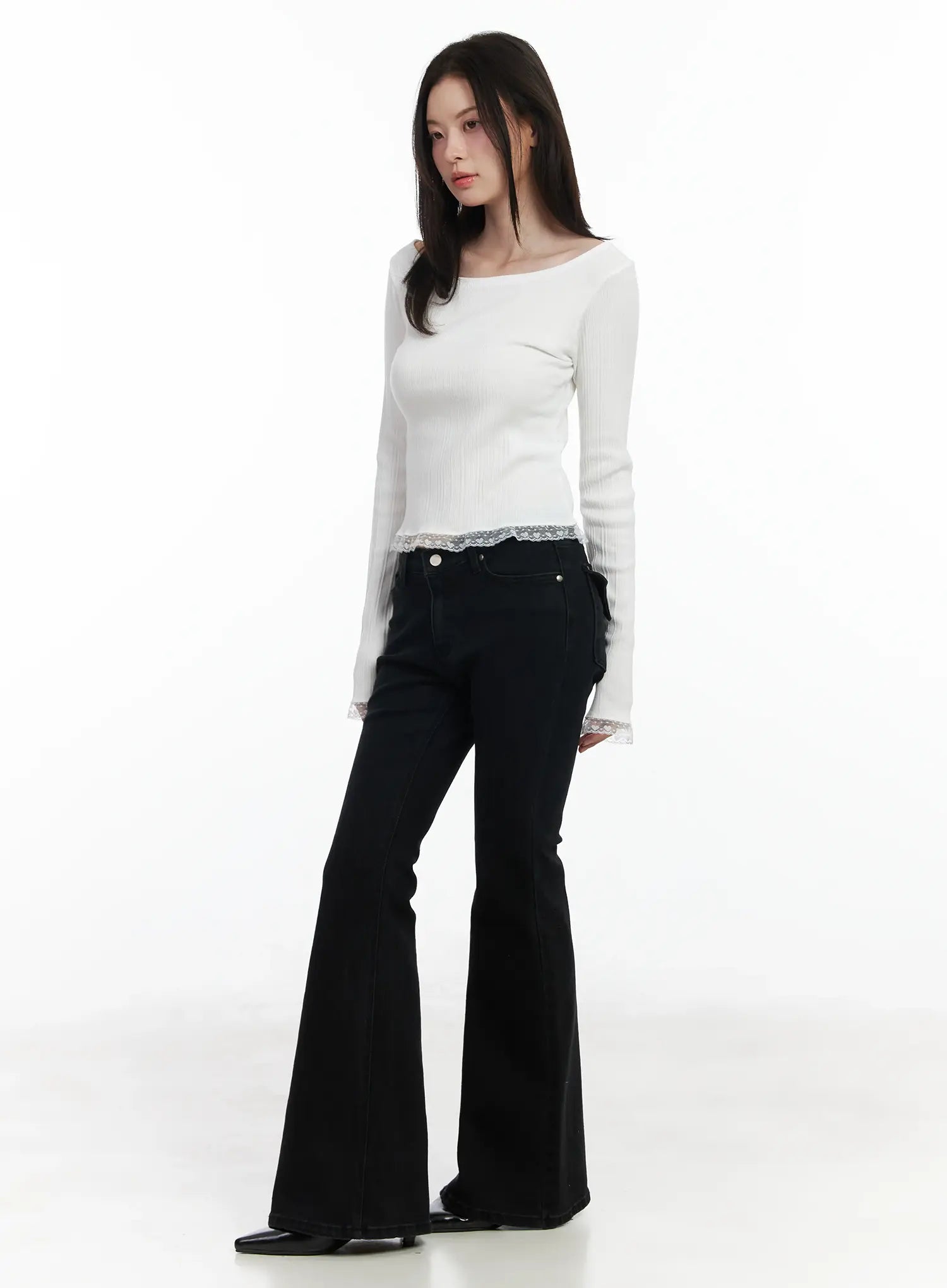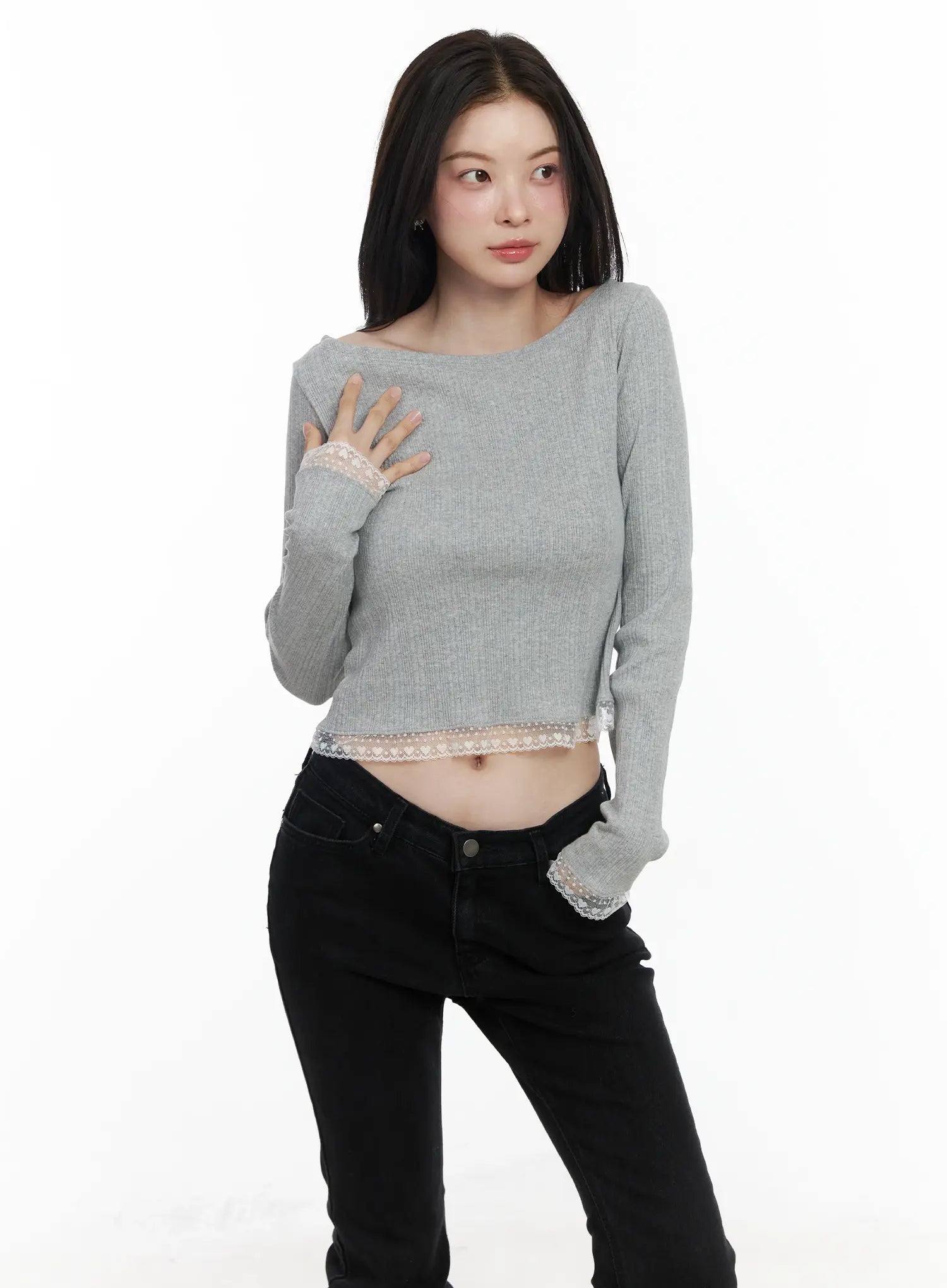 Heart Lace Frill Hem Boat-Neck Top IF520