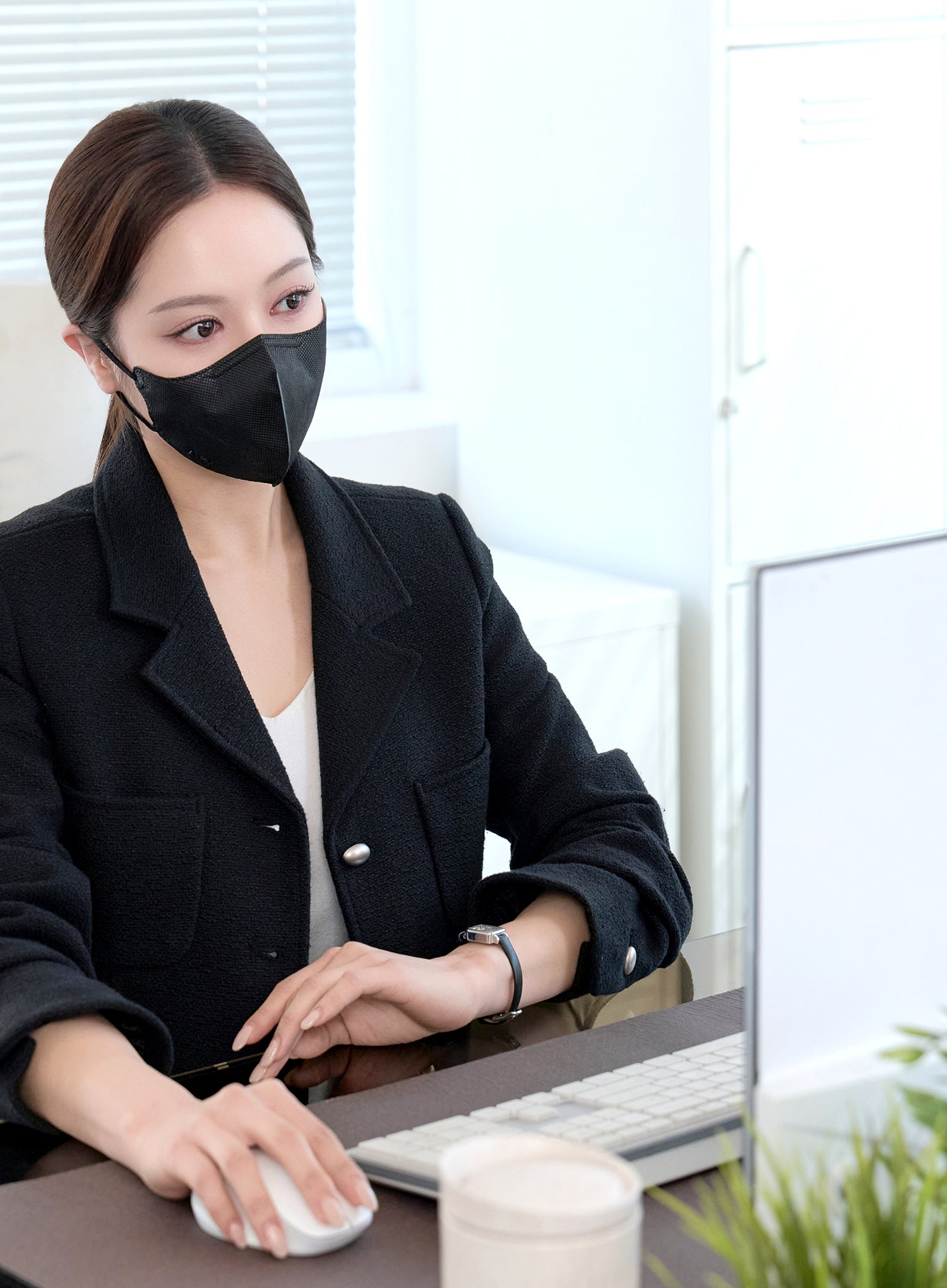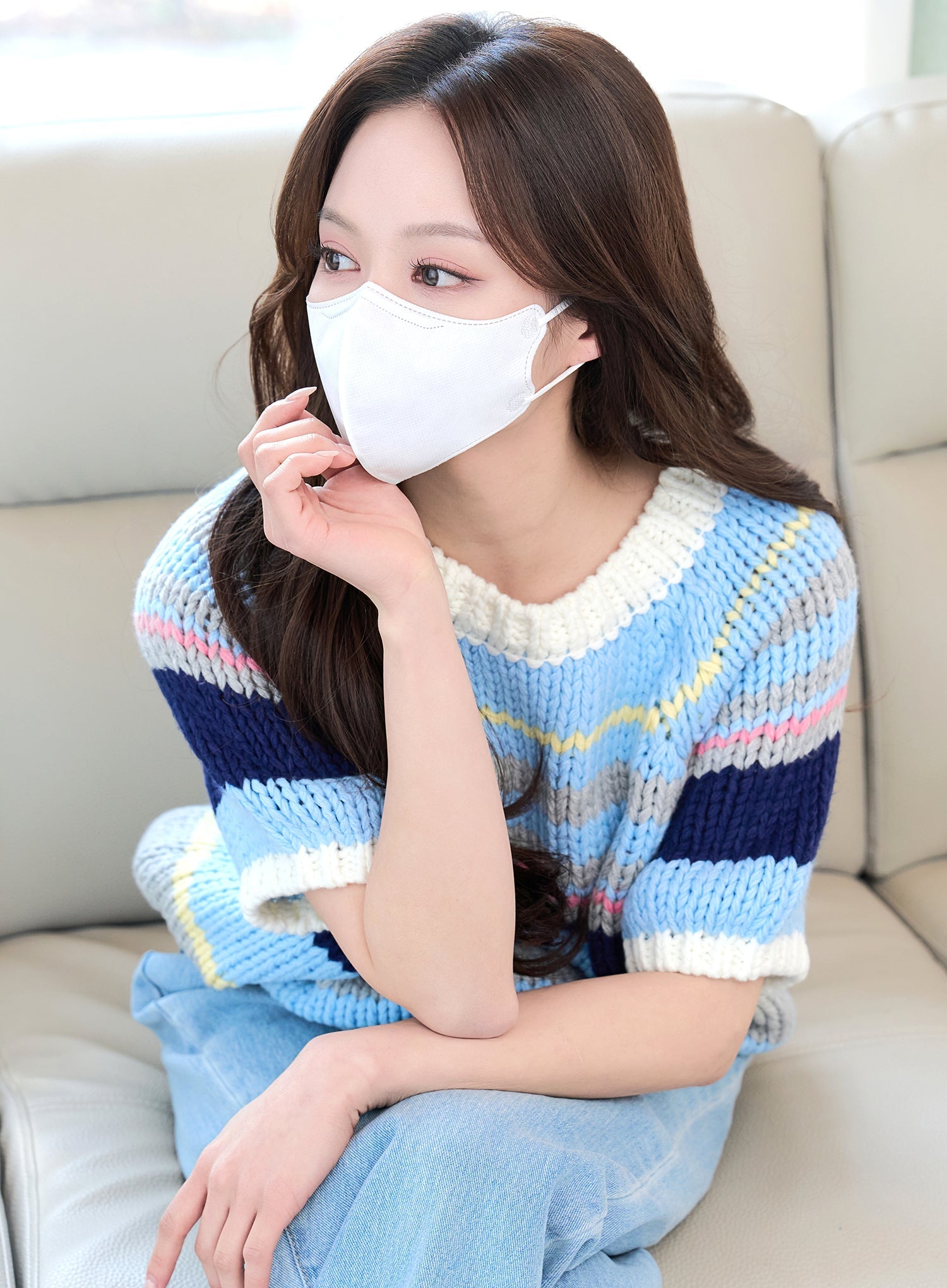 Place the mask so it fully covers your nose and mouth, then press and adjust to ensure a snug fit with no gaps between the mask and your face.