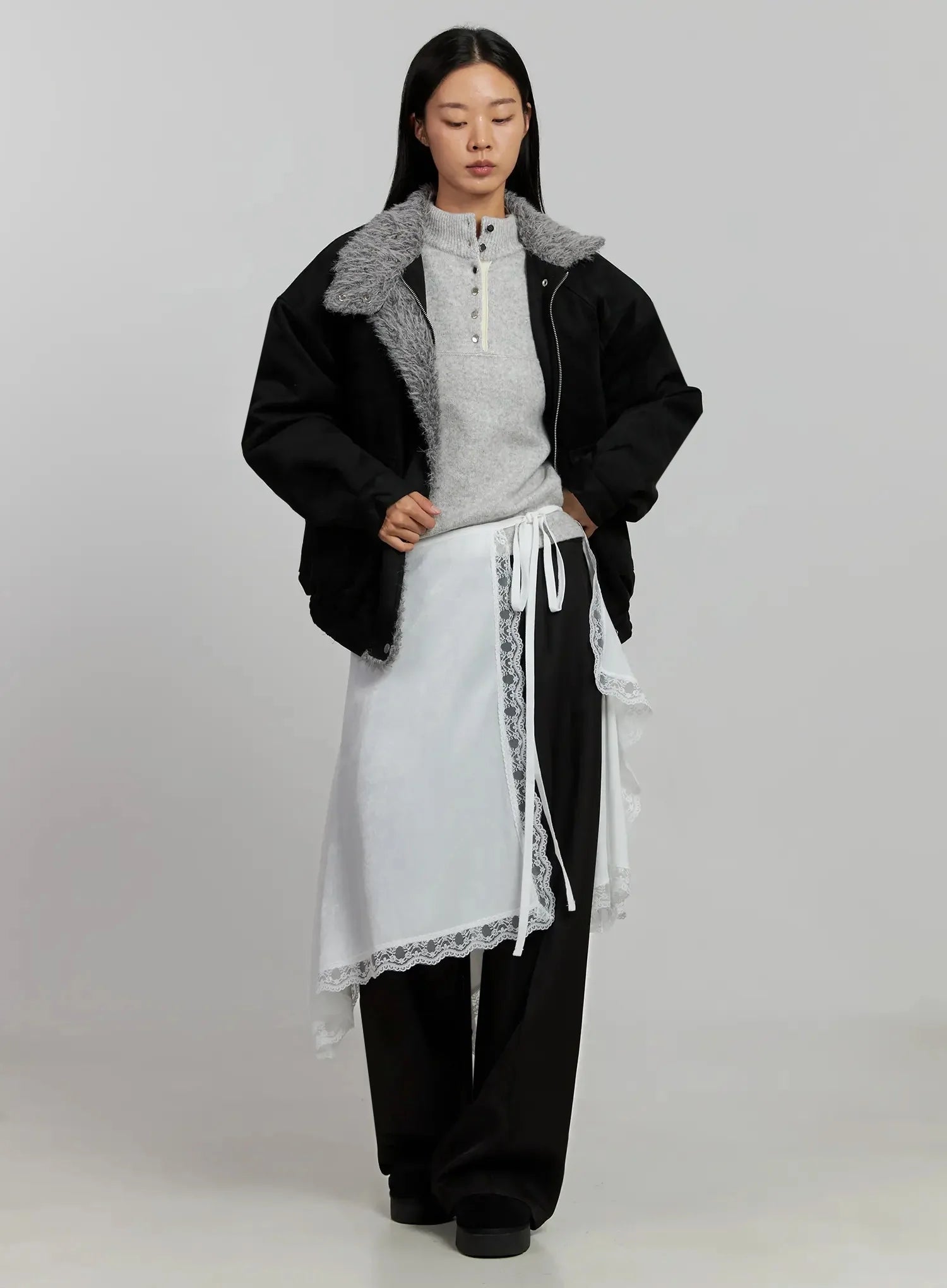 Lace Overlay Skirt IJ505