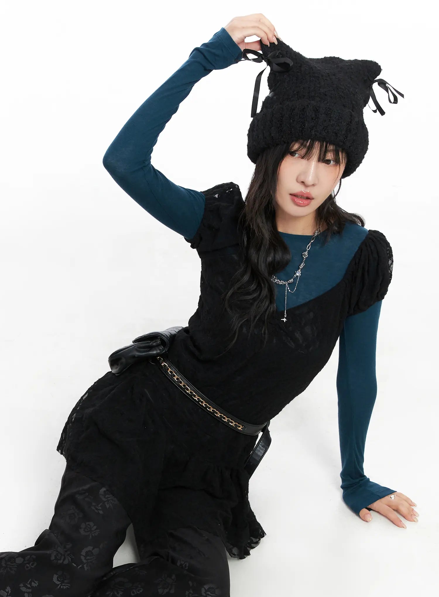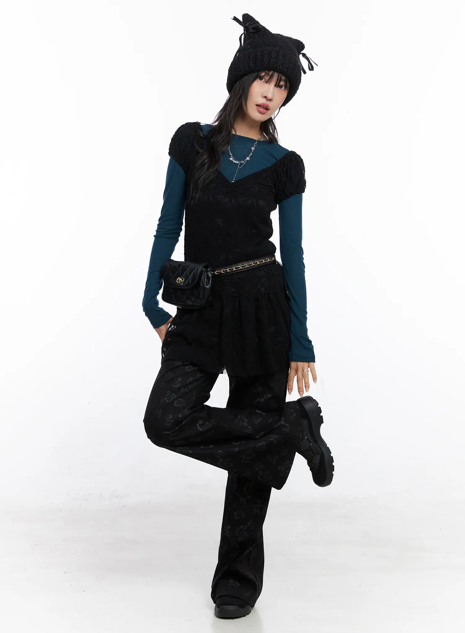 Model is wearing size S/M and the color Black.