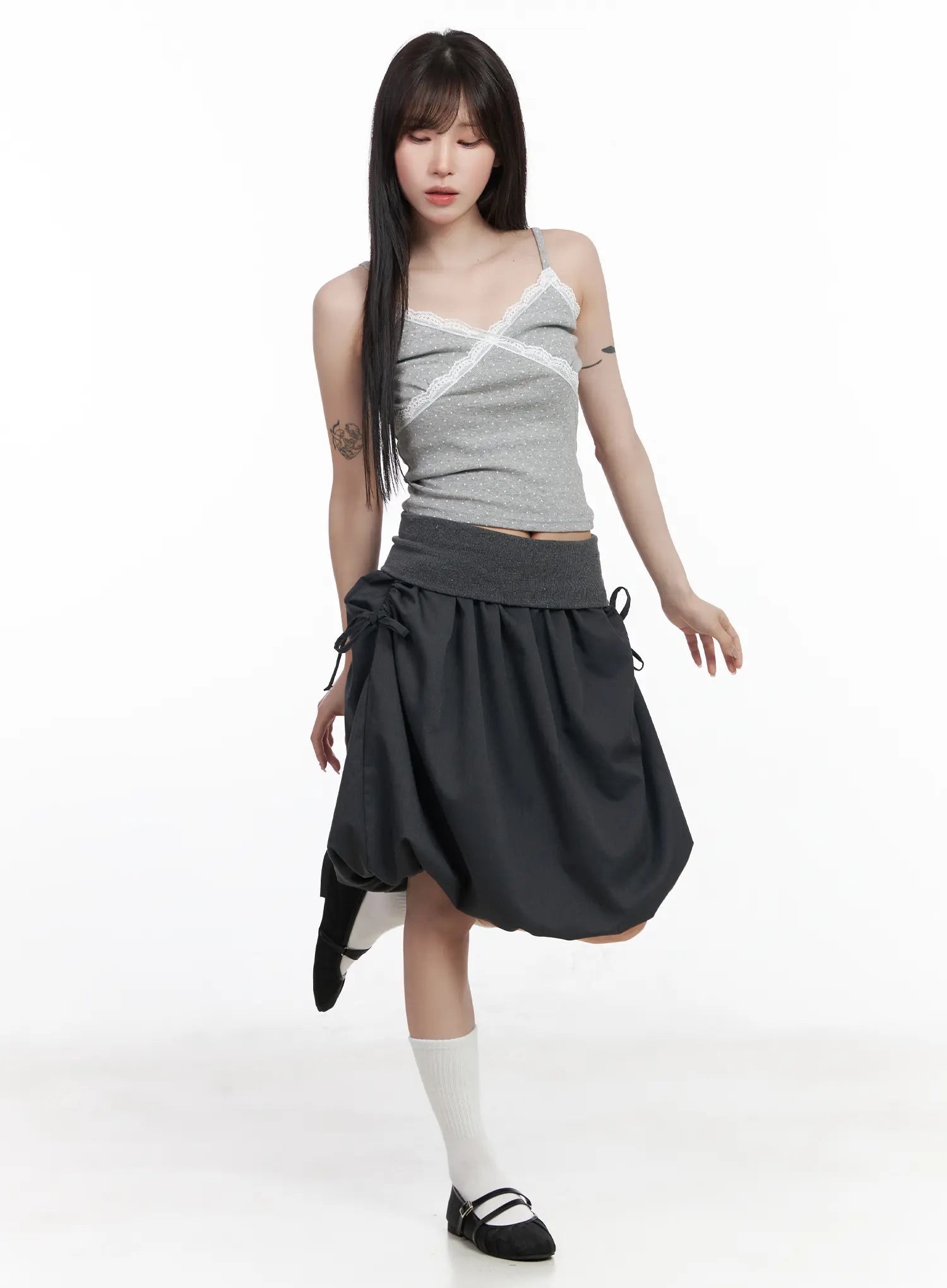 Lace Trim Polka Dot Crop Sleeveless Top CF523
