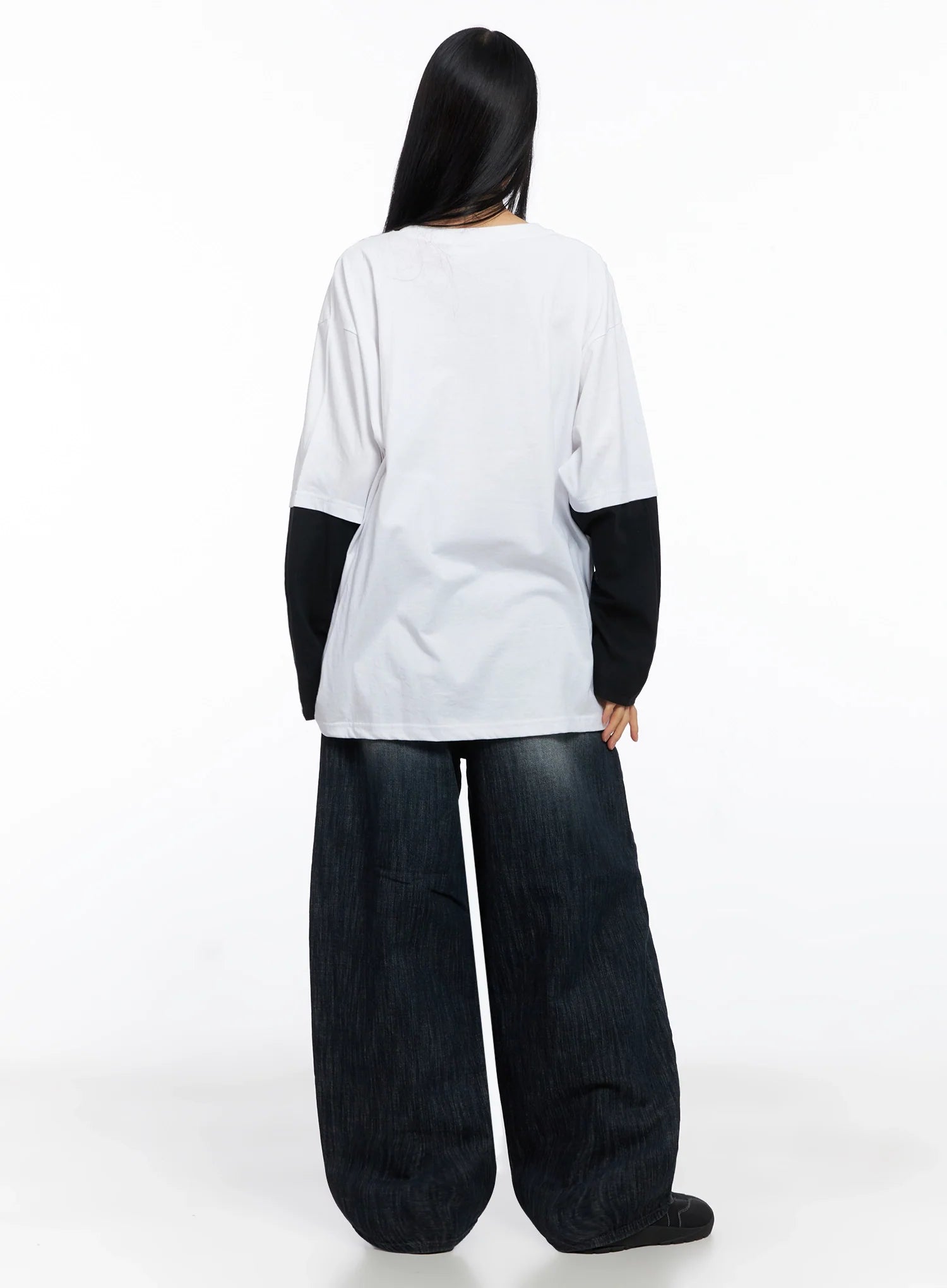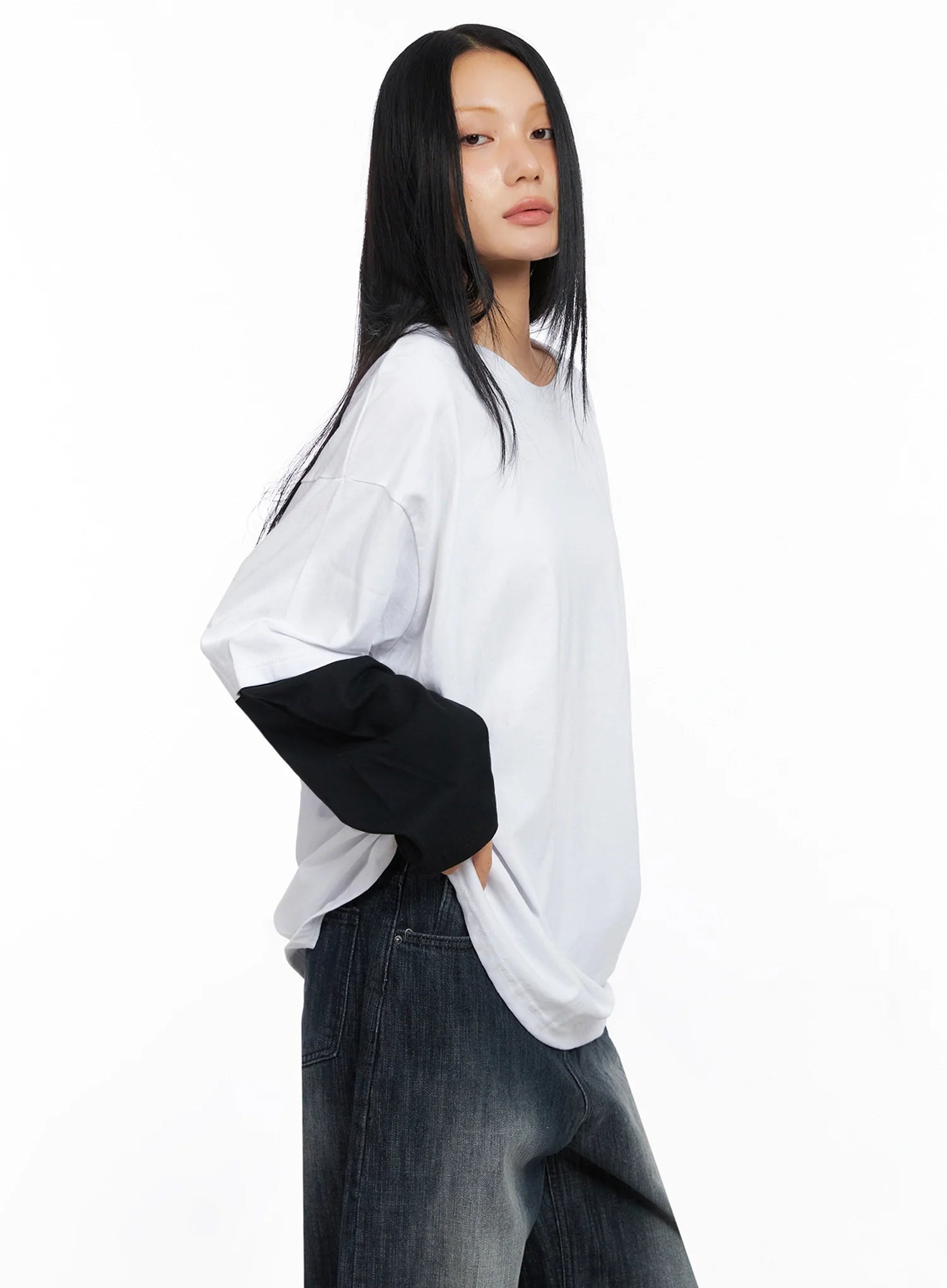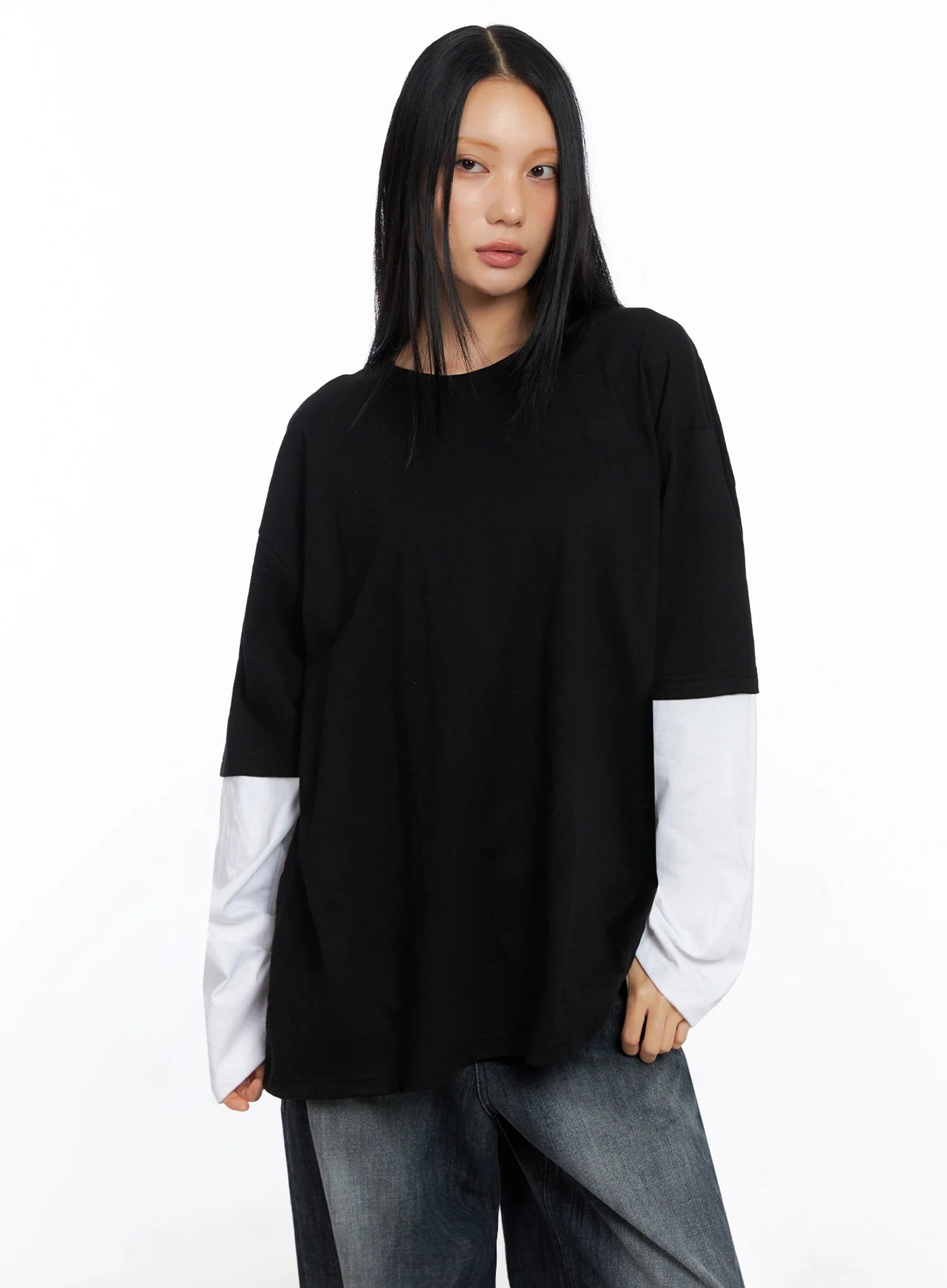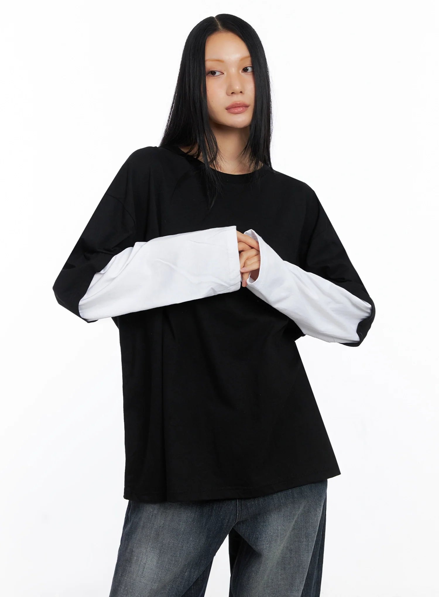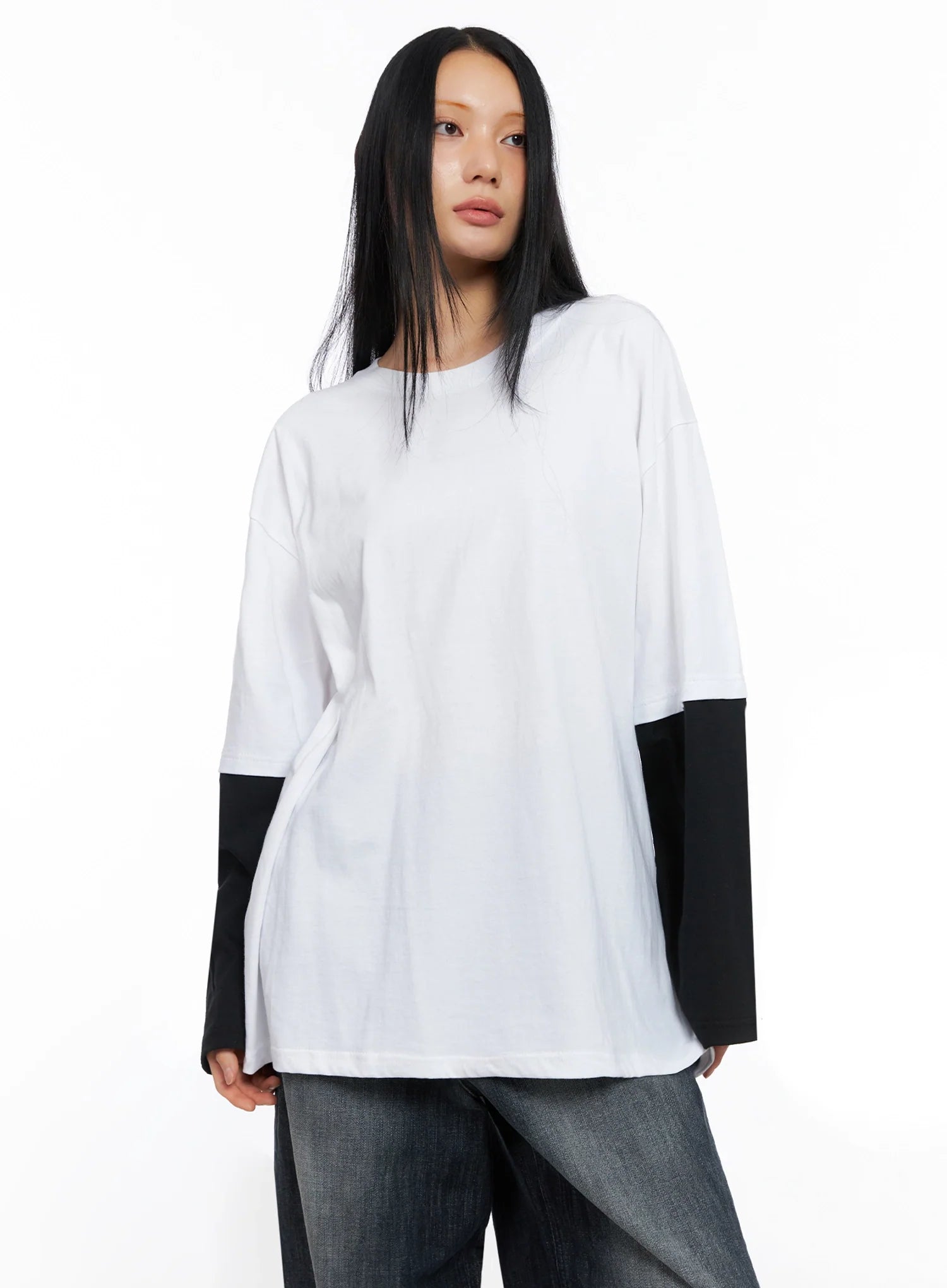 Layered Contrast Oversized Long Sleeve Tee CO517