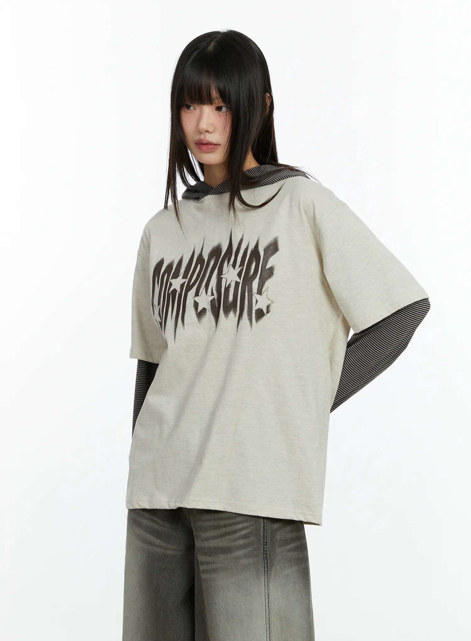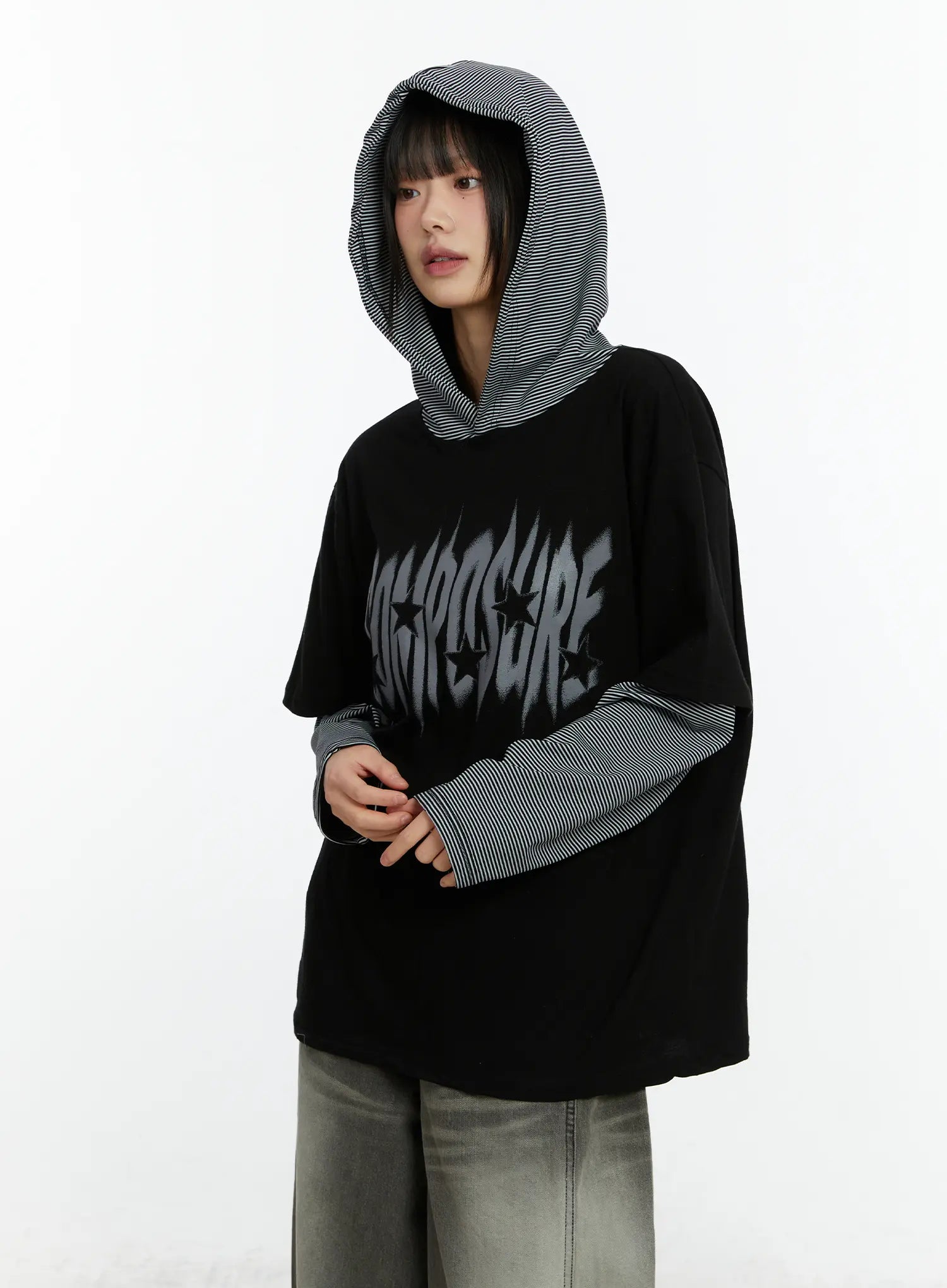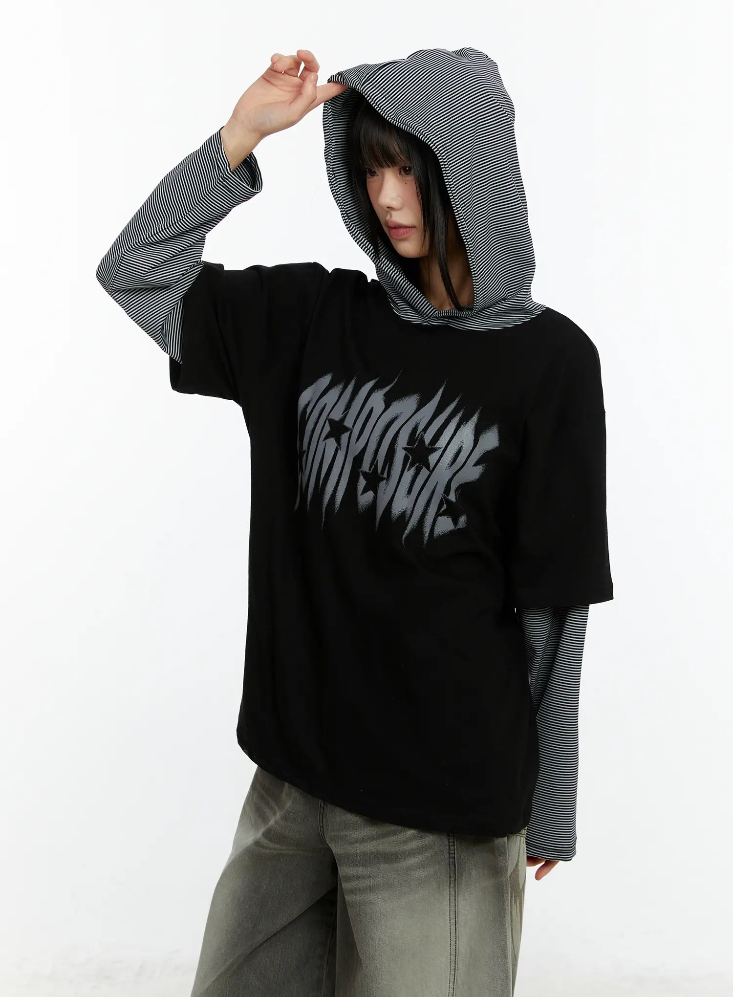 Layered Hooded Graphic Long Sleeve Top CF509