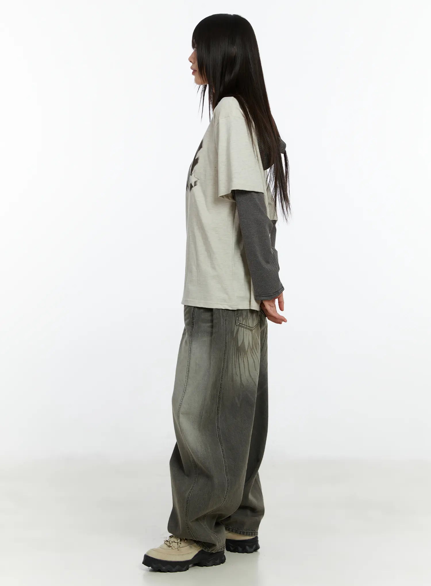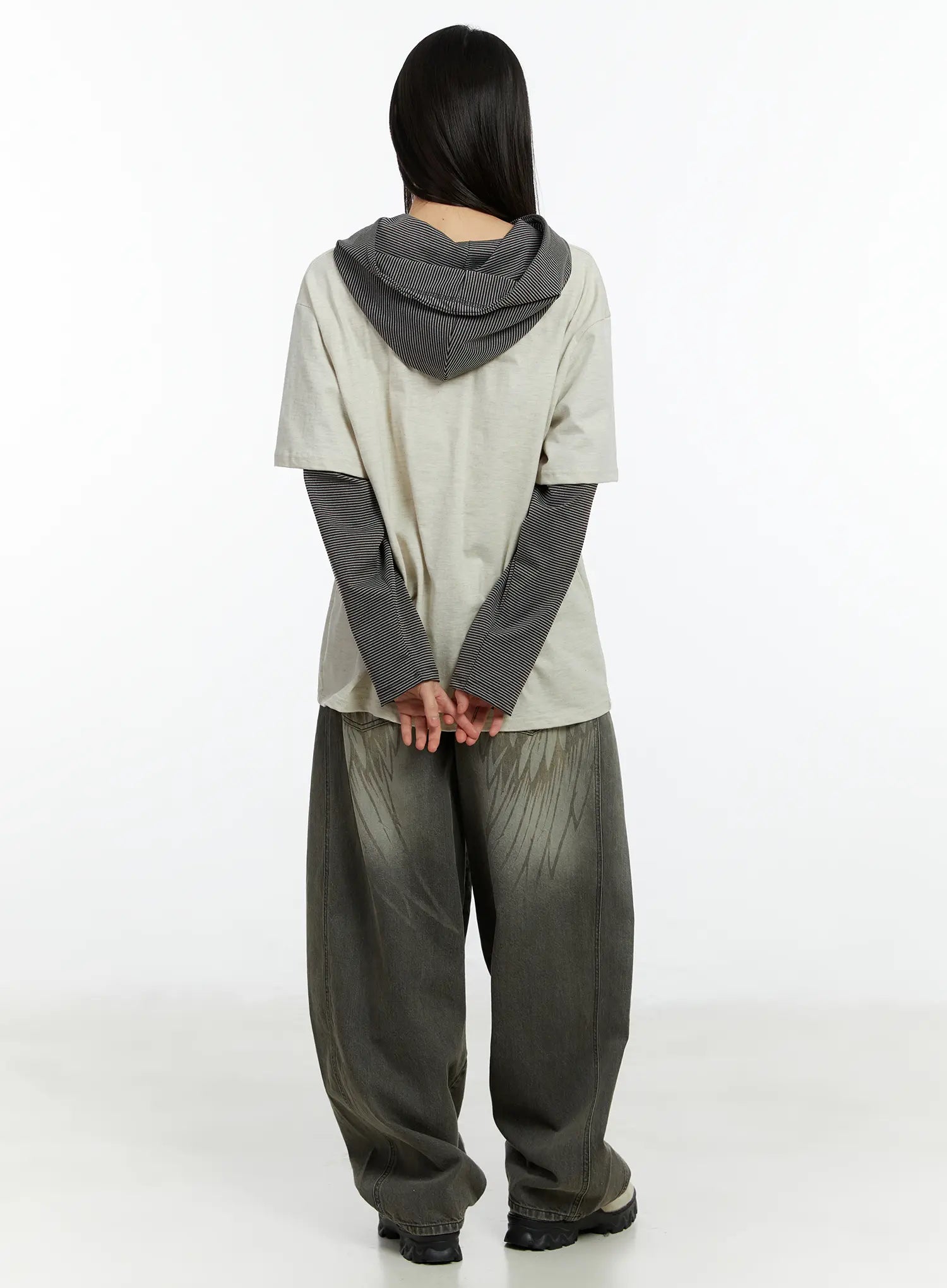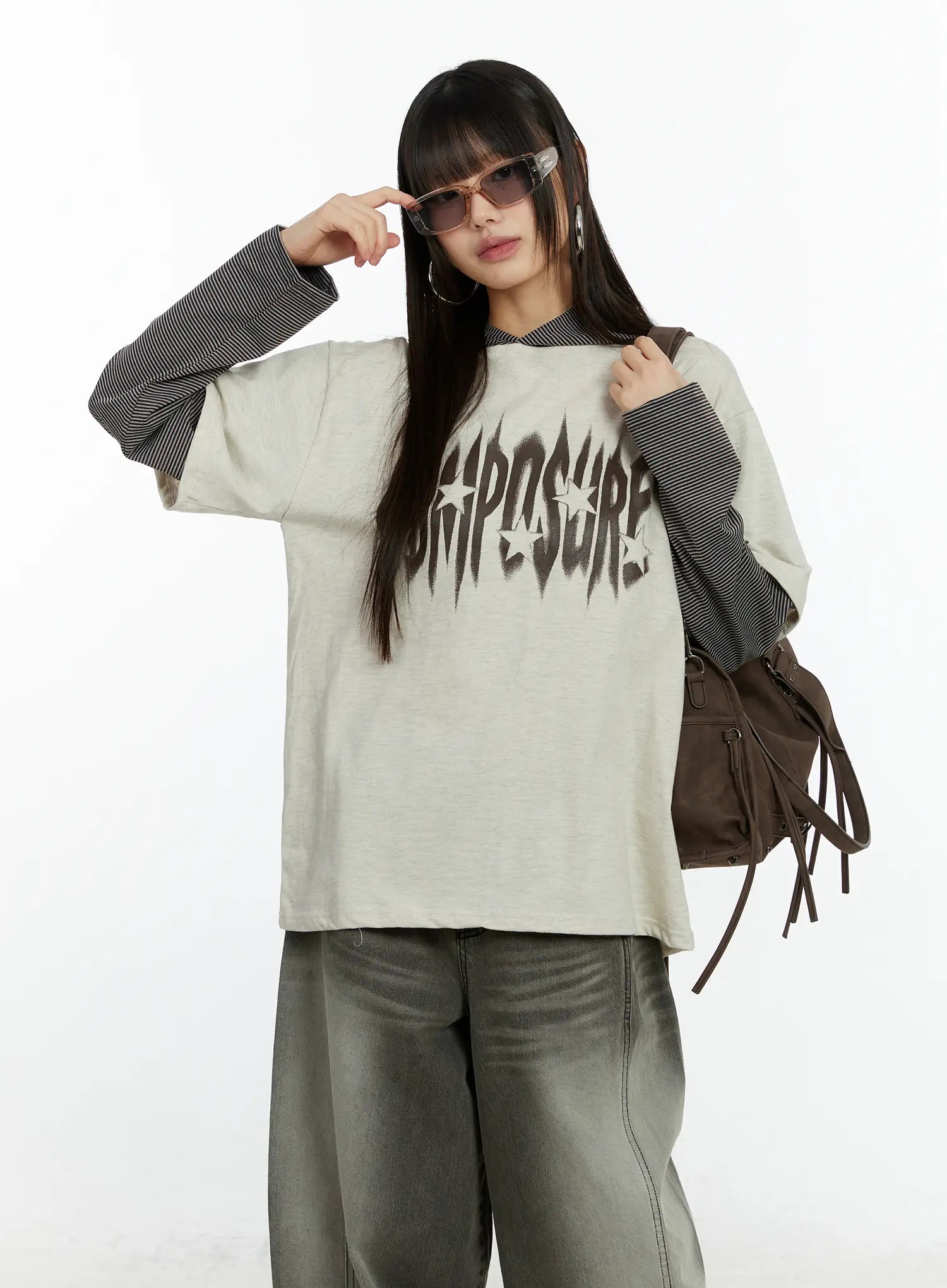 Layered Hooded Graphic Long Sleeve Top CF509