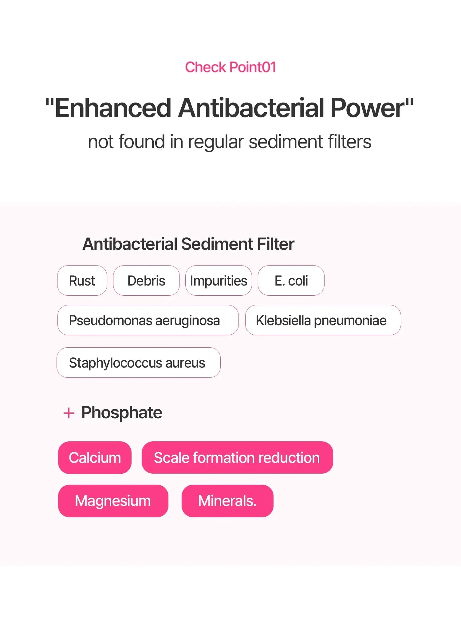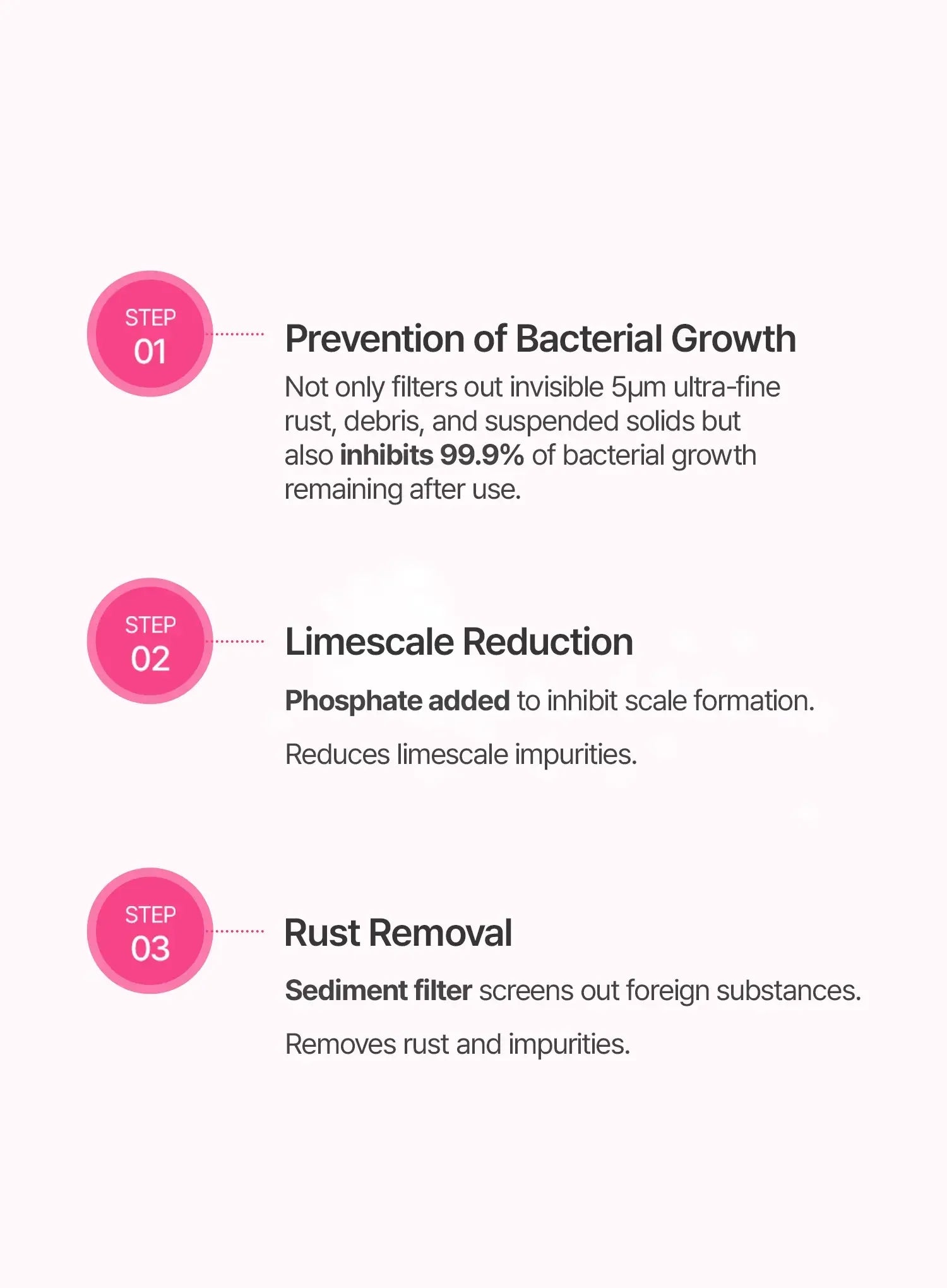 - 99.9% antibacterial: Antibacterial sediment filter helps reduce rust-colored water and limescale buildup.