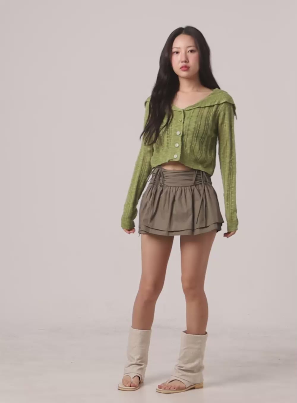 Model is wearing the color Beige.