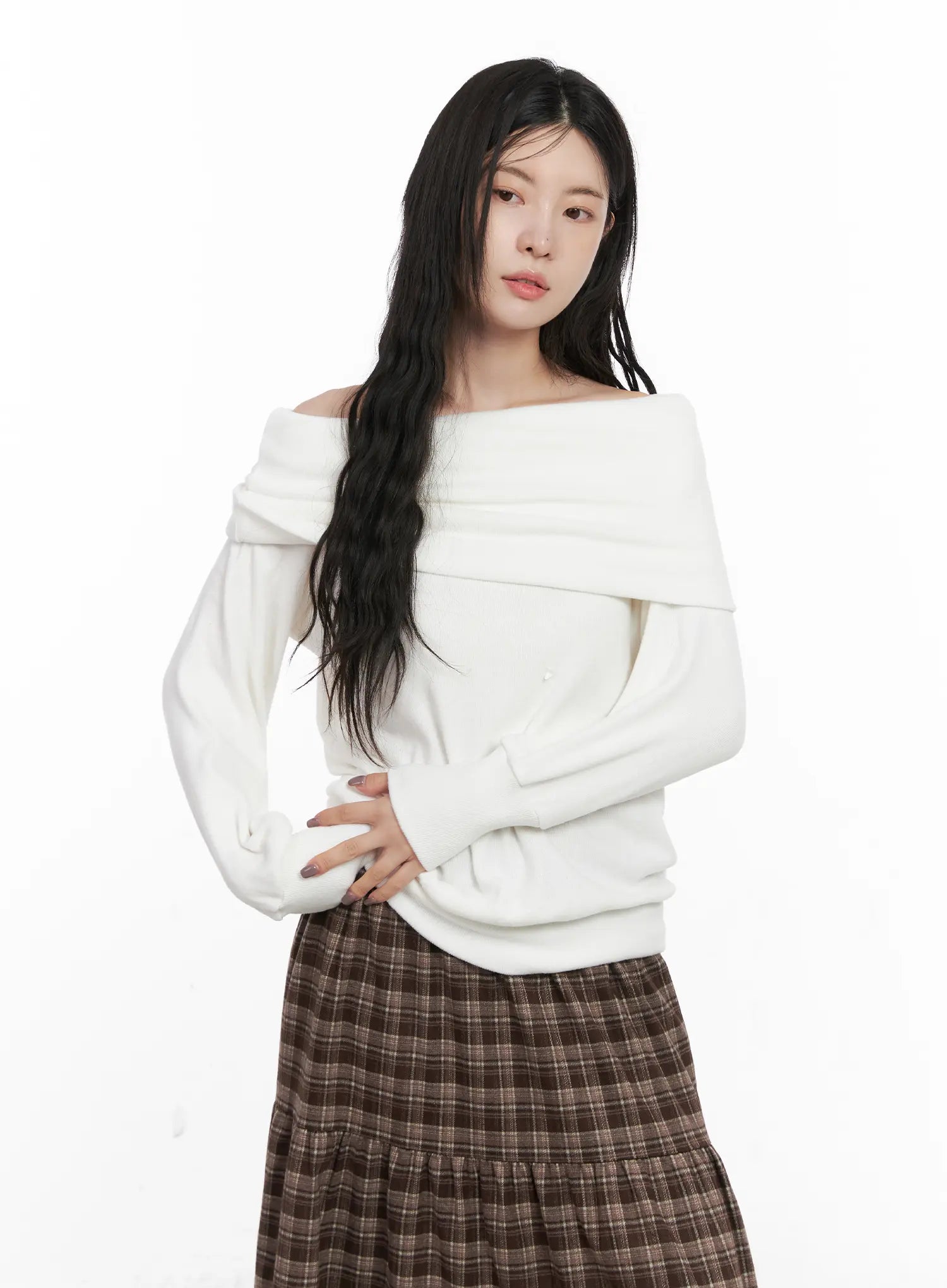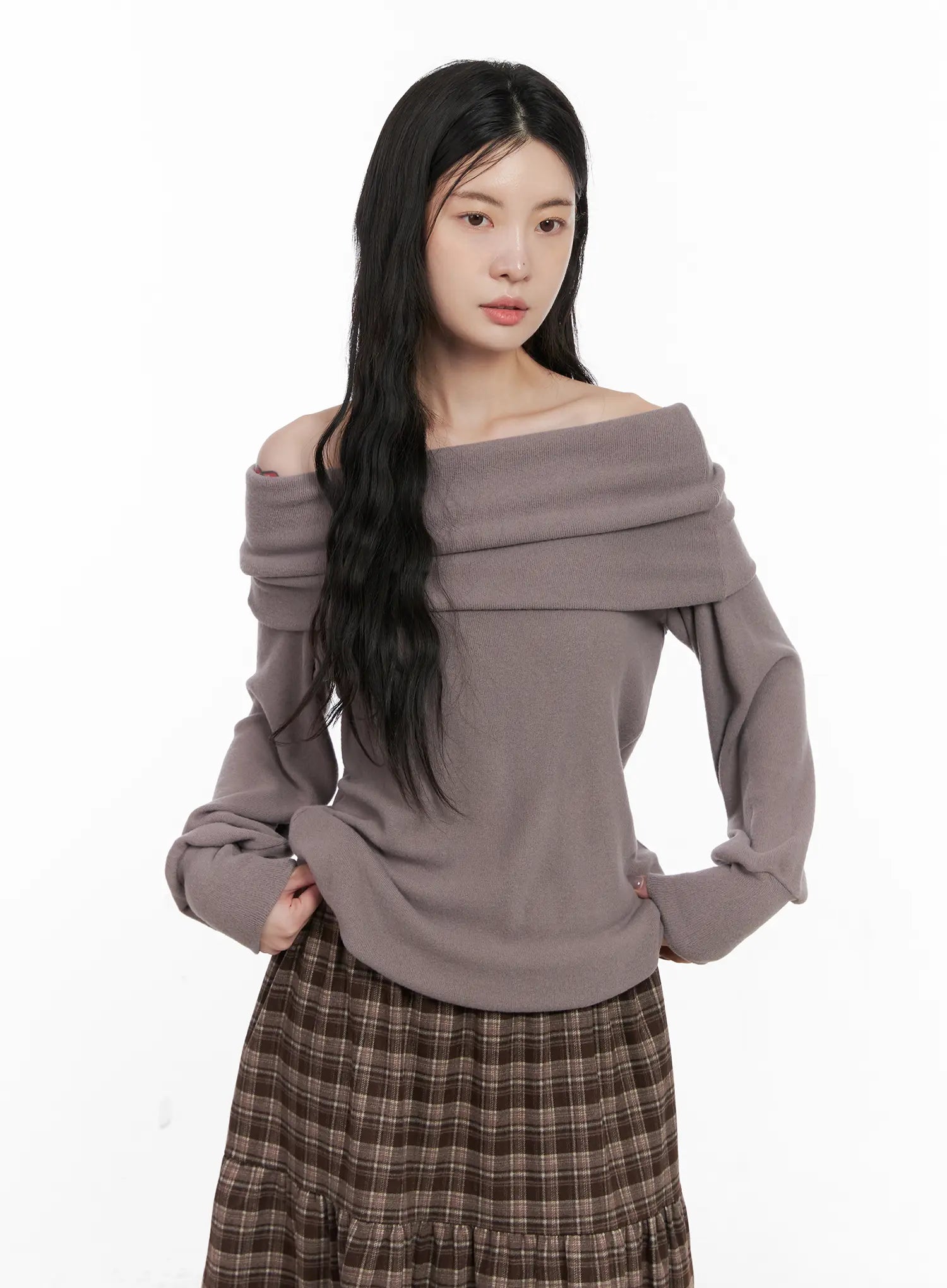 Loose Fit Off-Shoulder Long Sleeve Top CN512