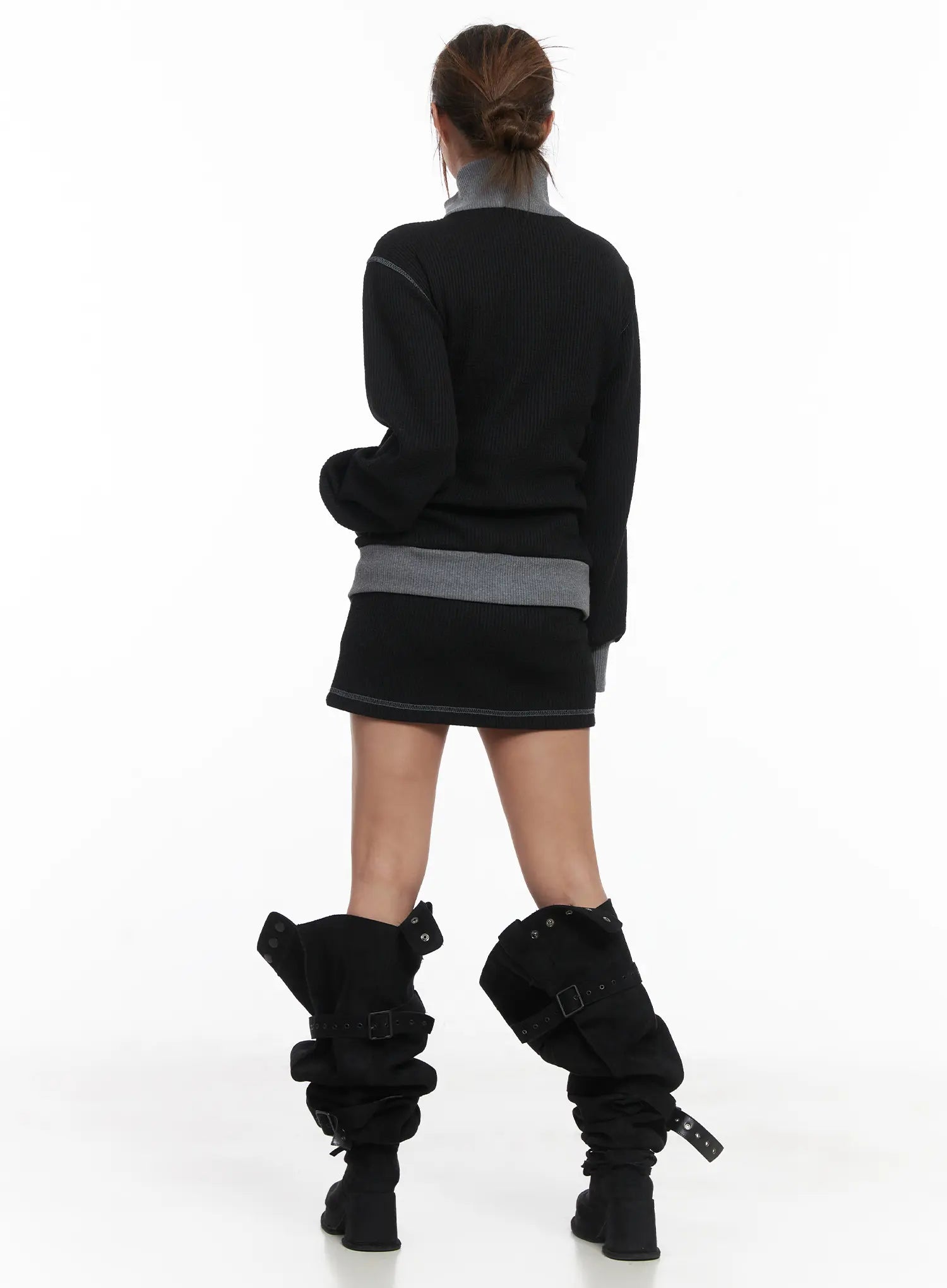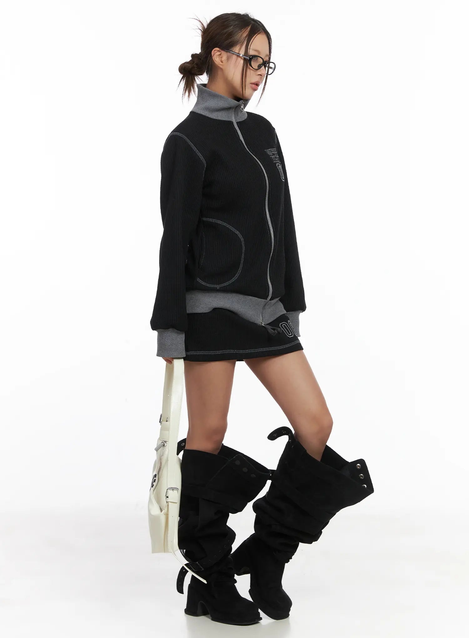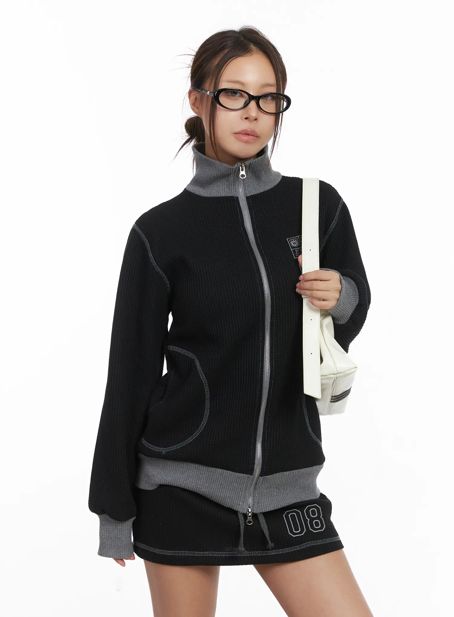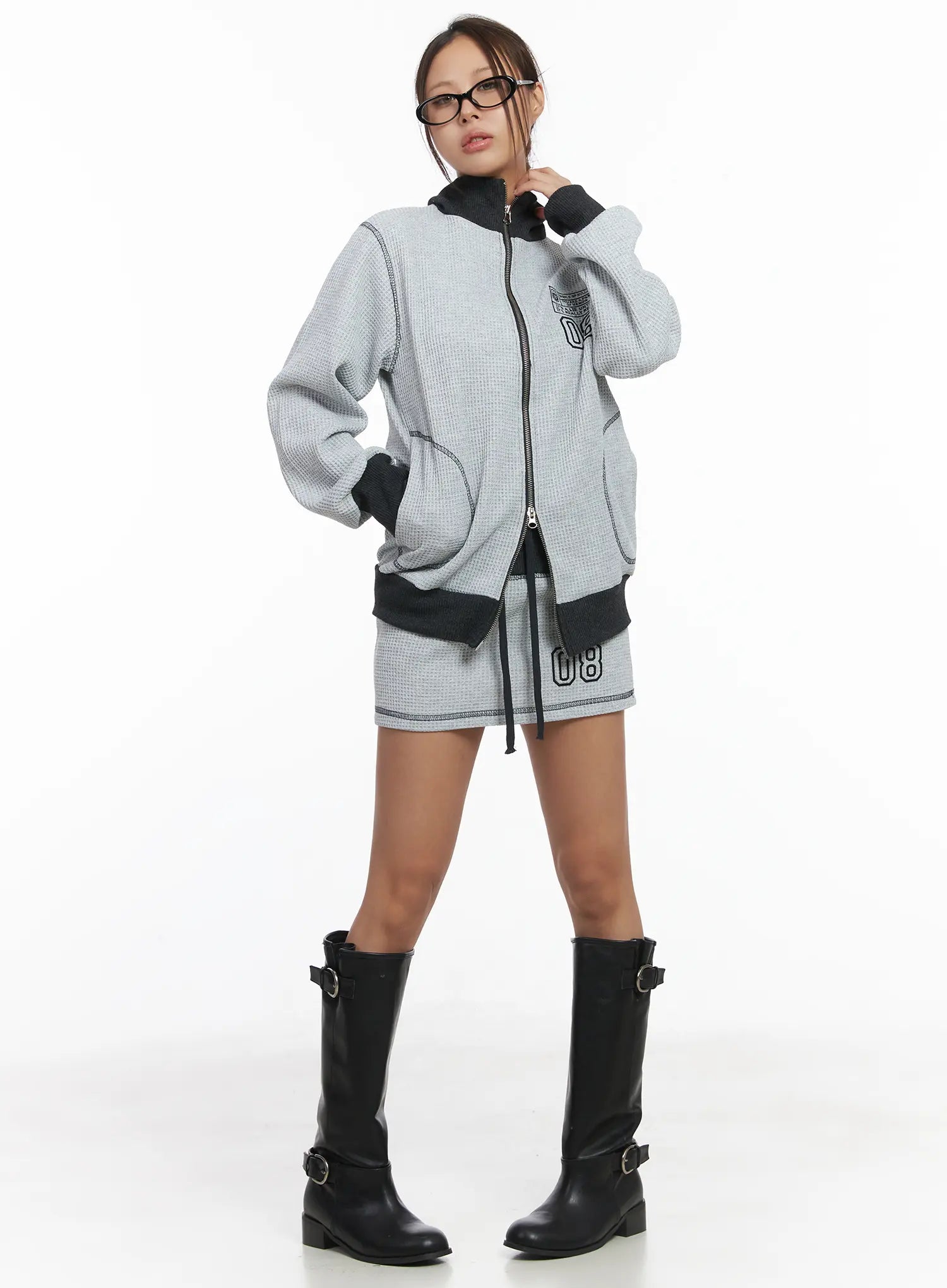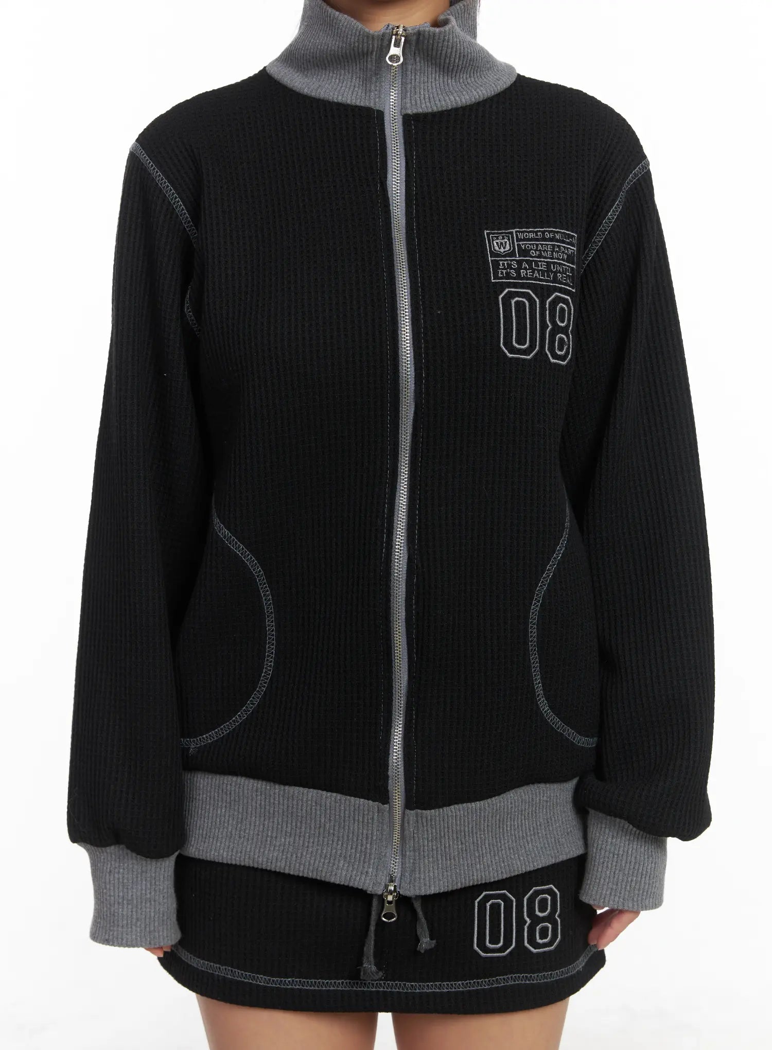 Loose Fit Two-Tone Waffle Zip-Up CJ512