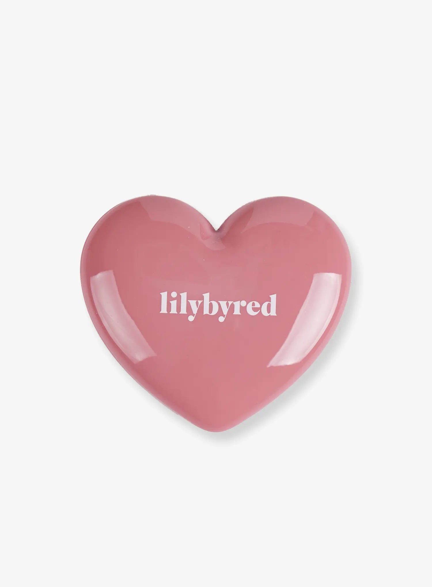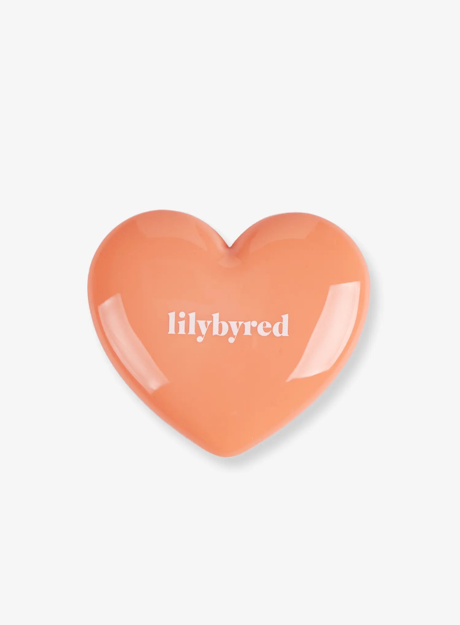 User-friendly, highly buildable balm blush in heart-shaped packaging.