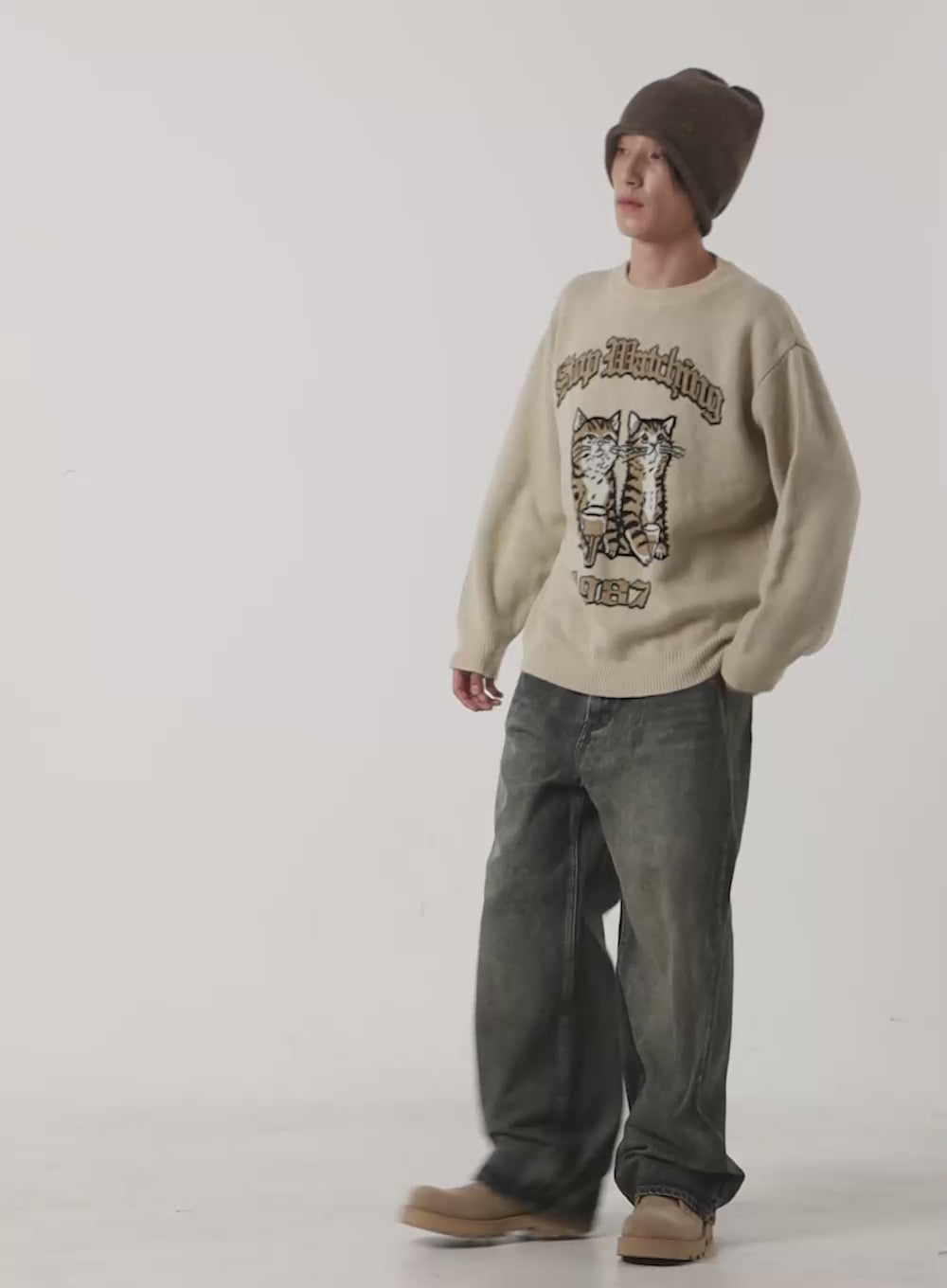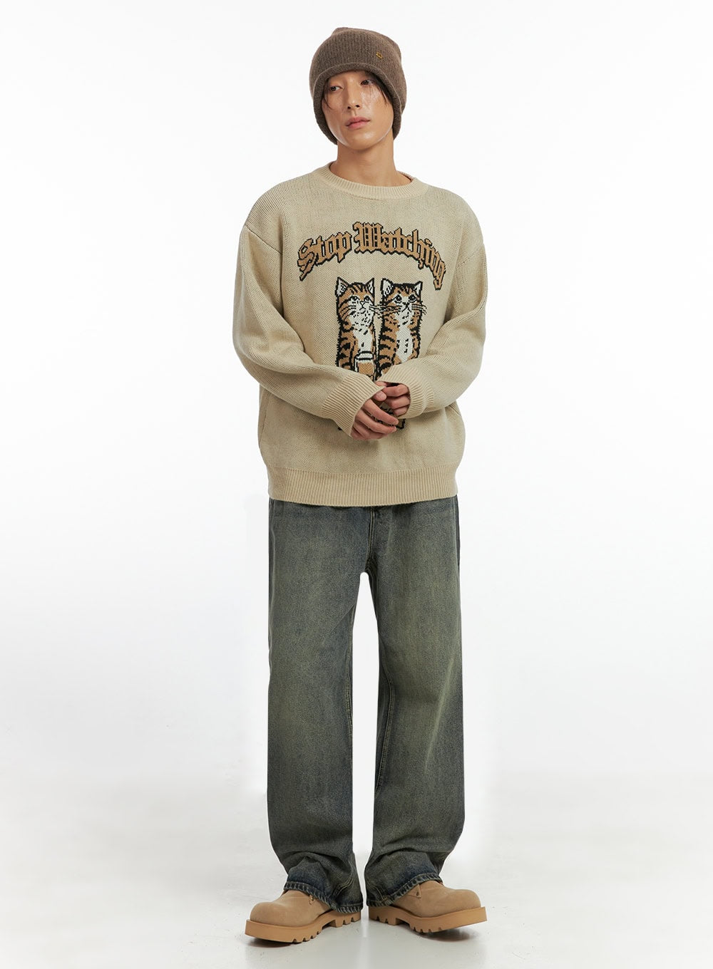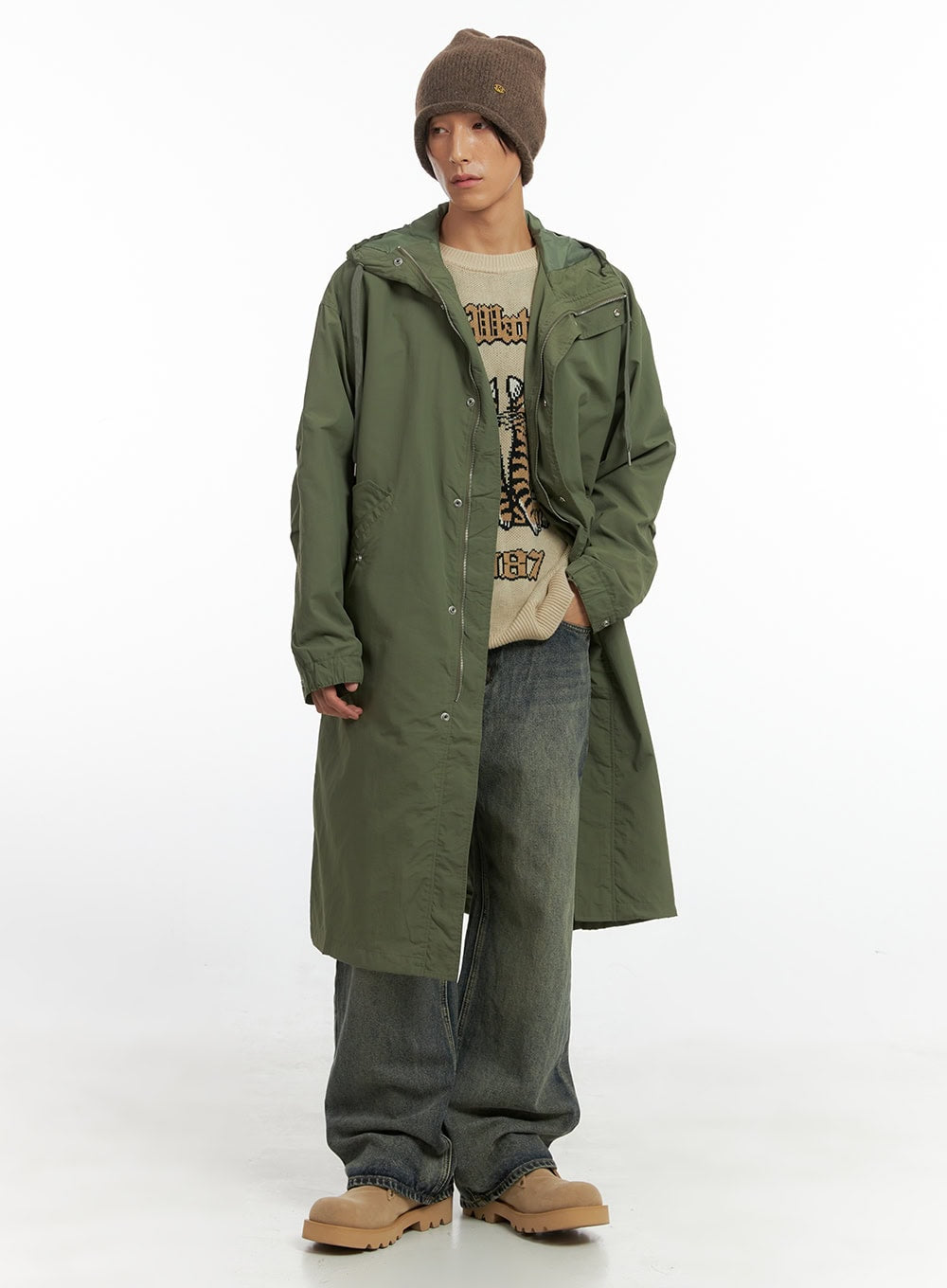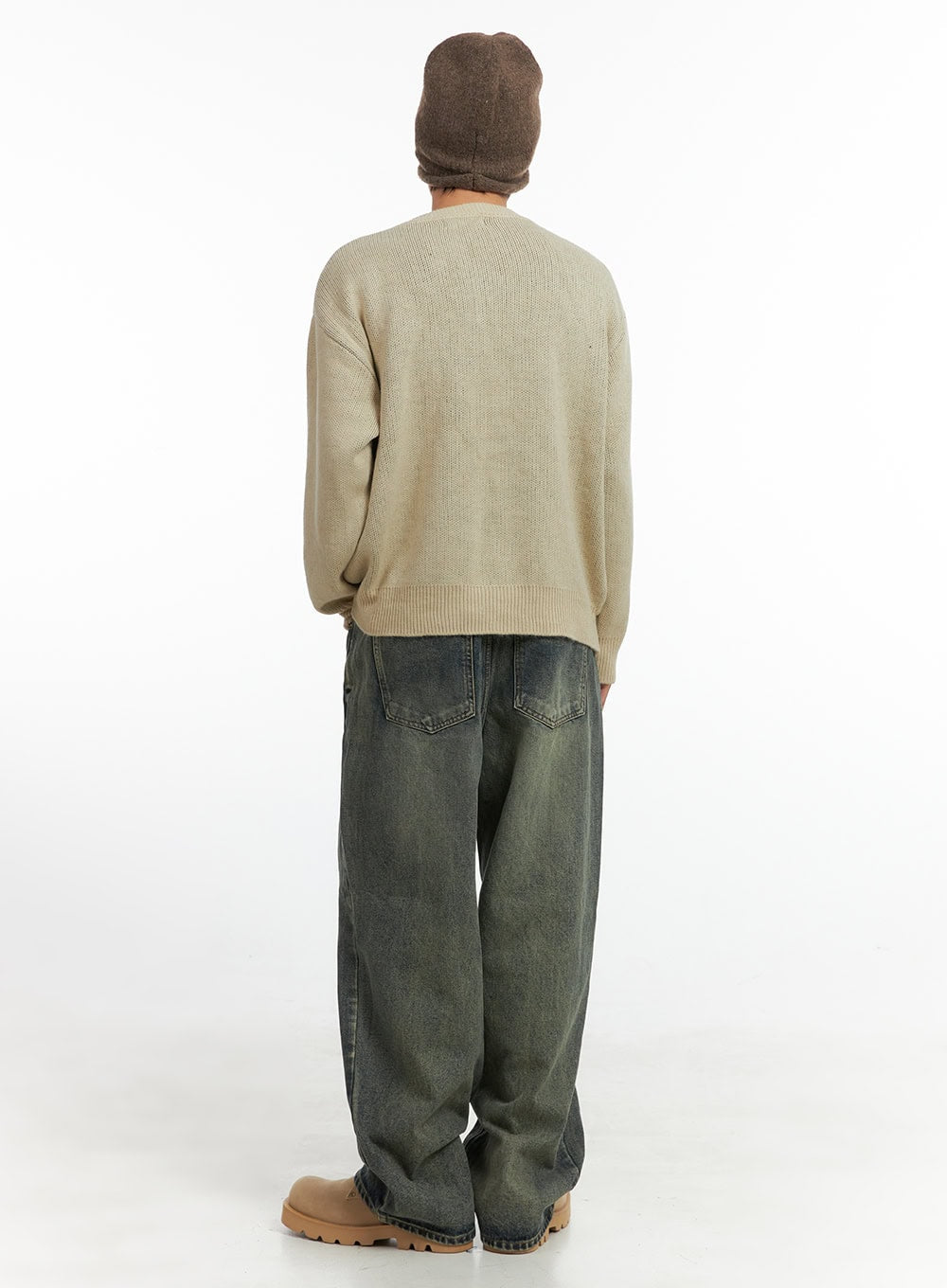 Model is wearing size M/L and the color Beige.