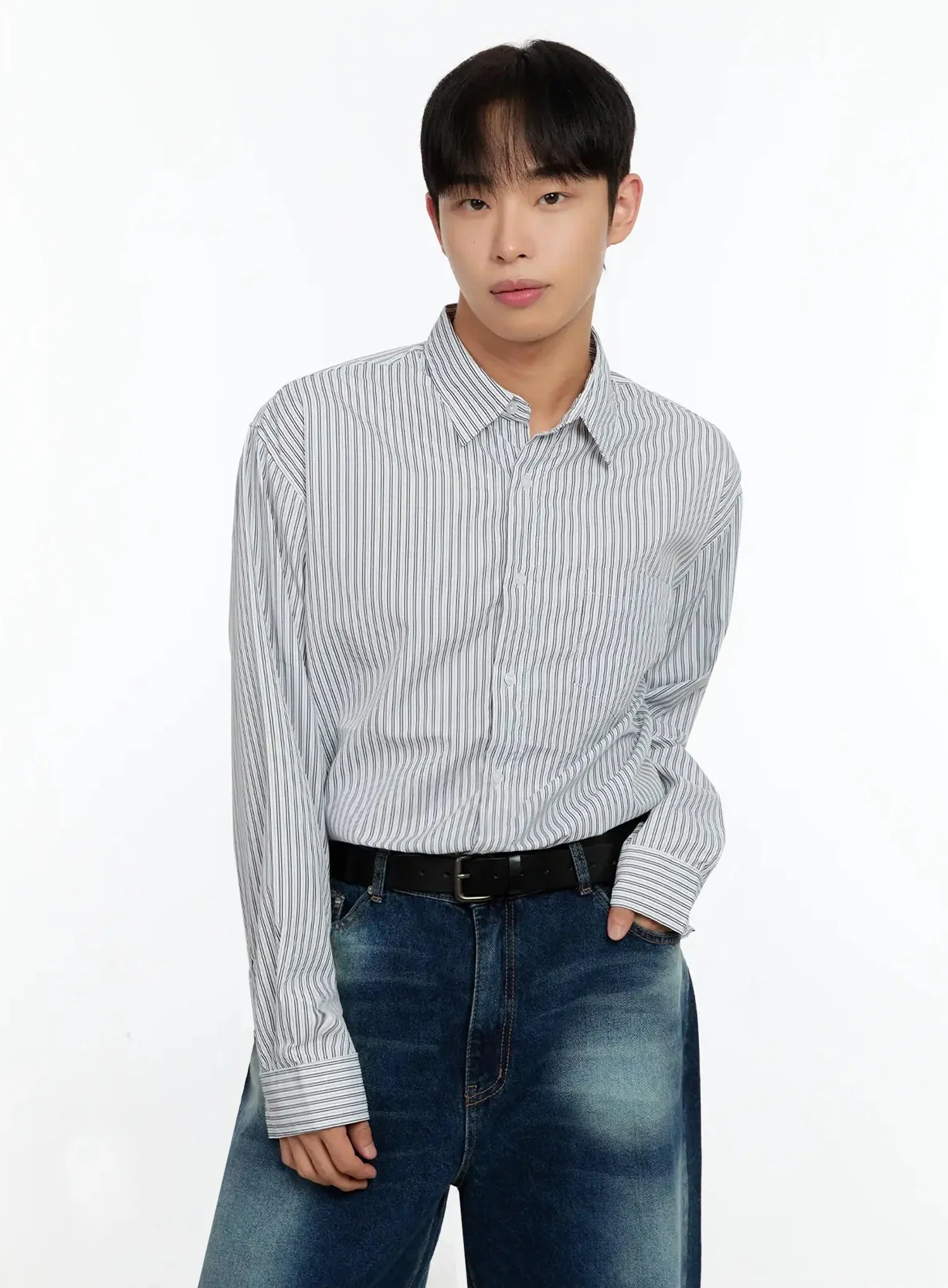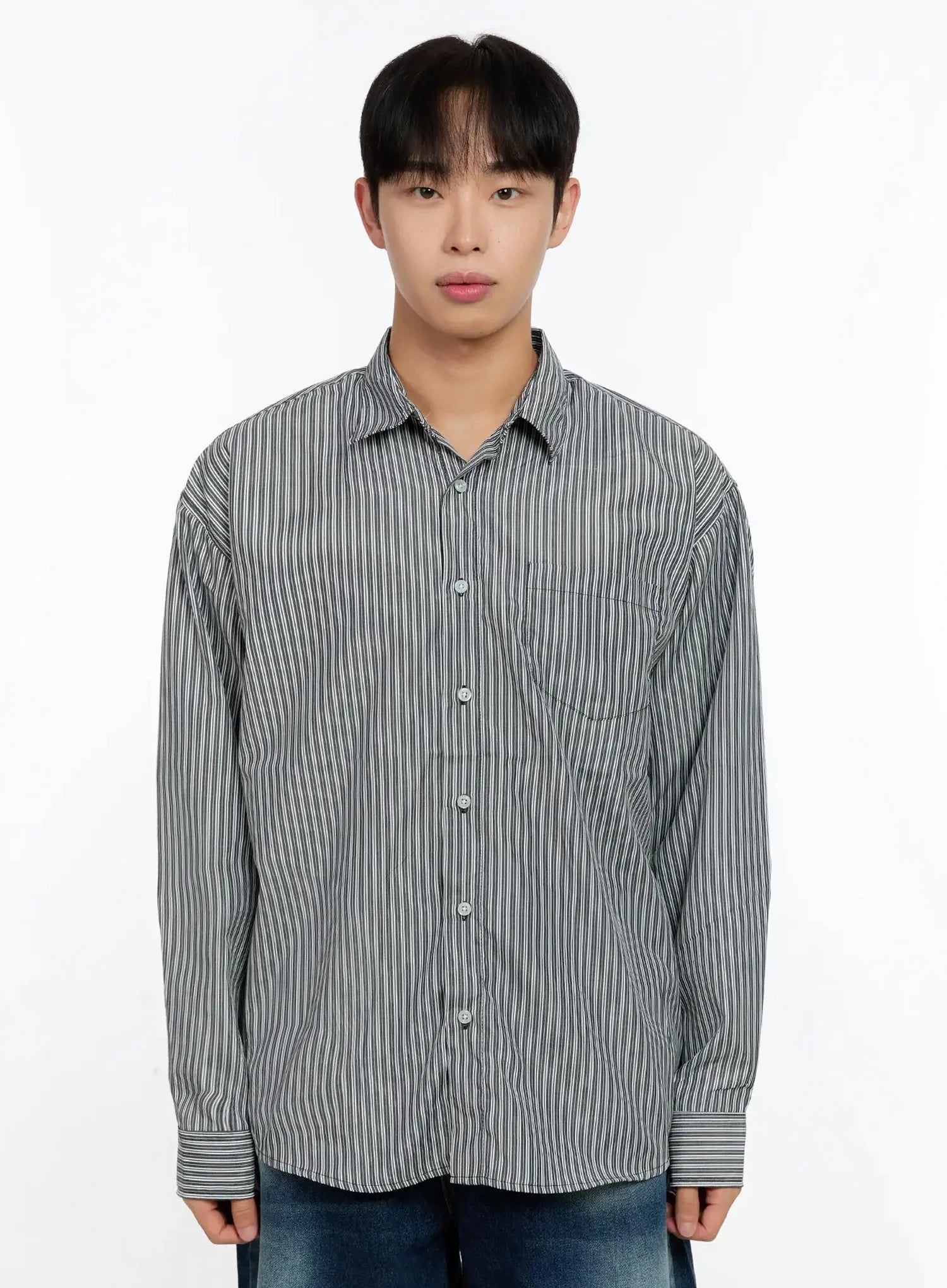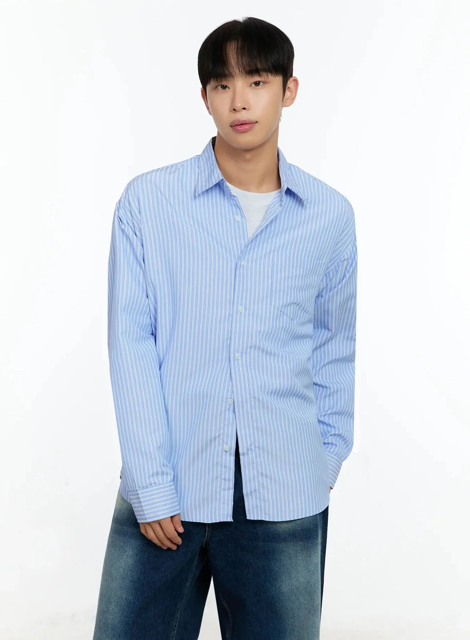 Men's Basic Striped Button-Up IN506