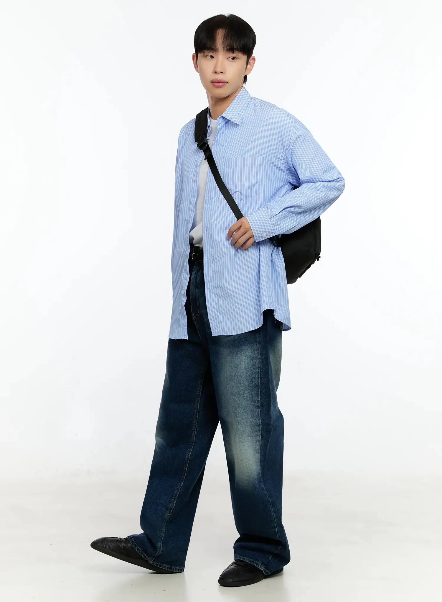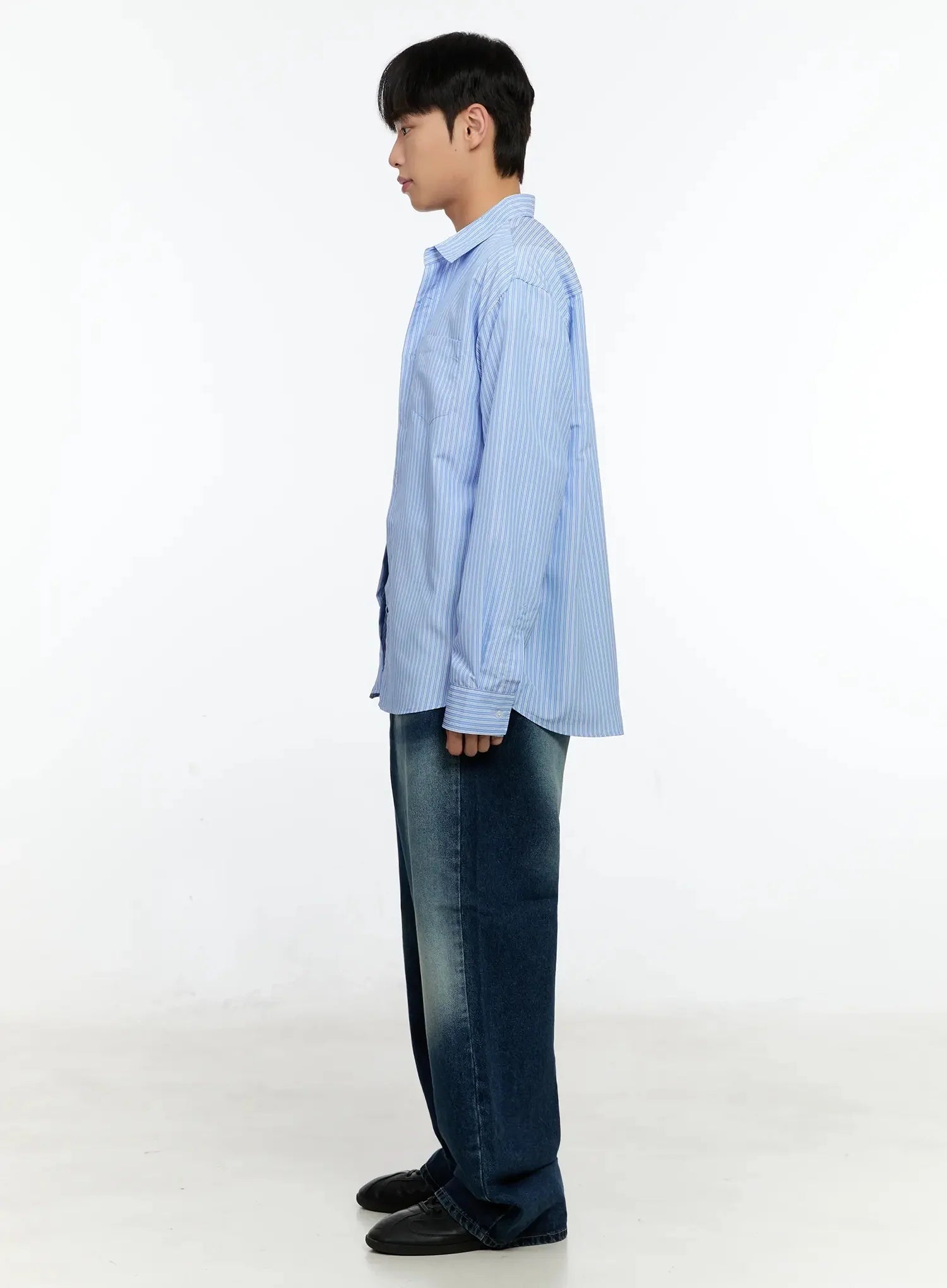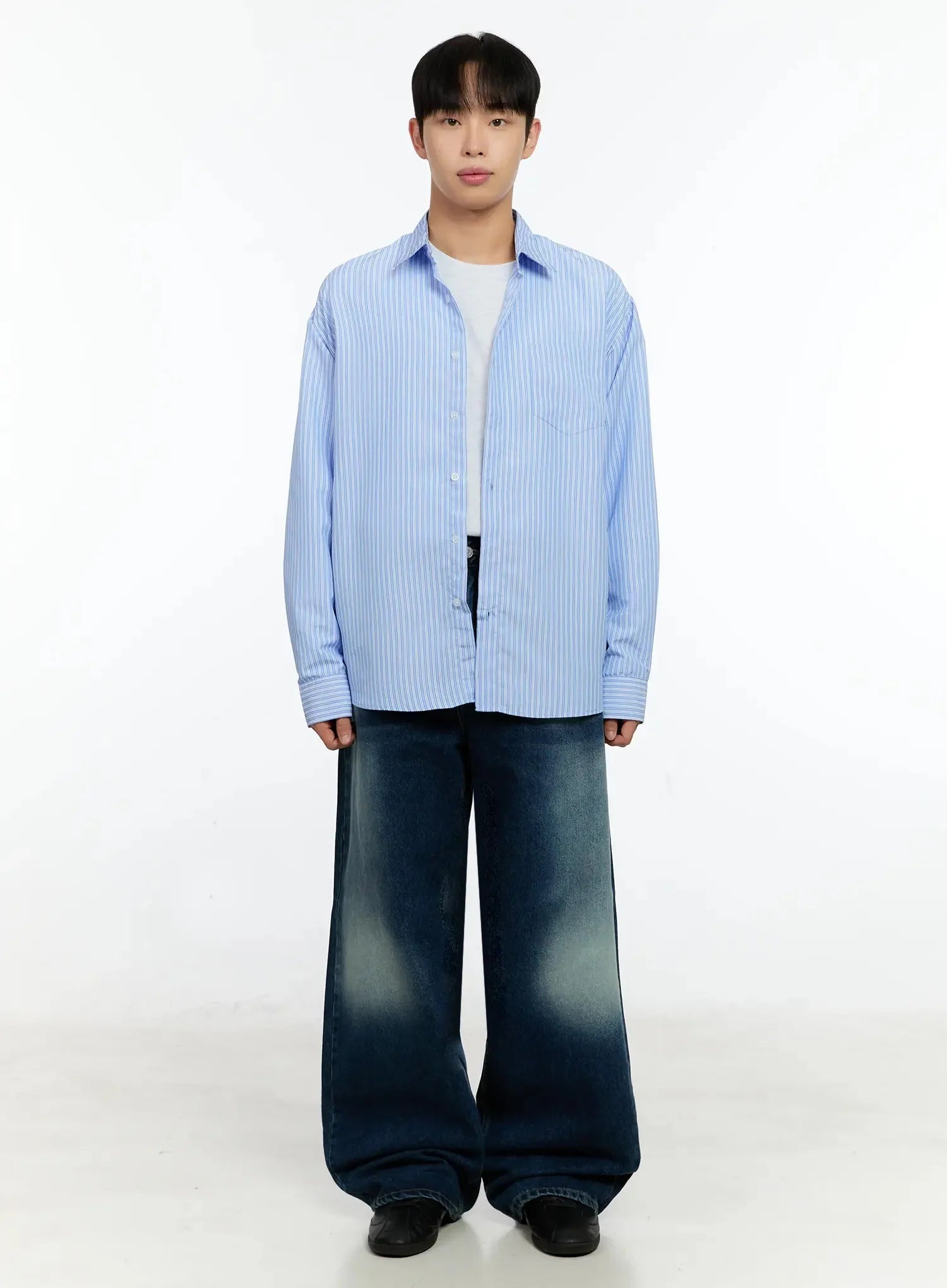 Men's Basic Striped Button-Up IN506