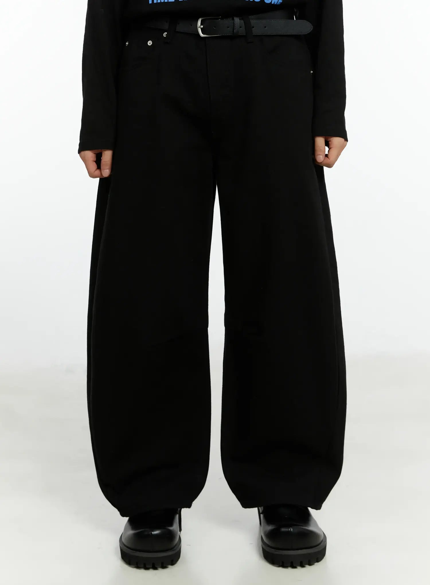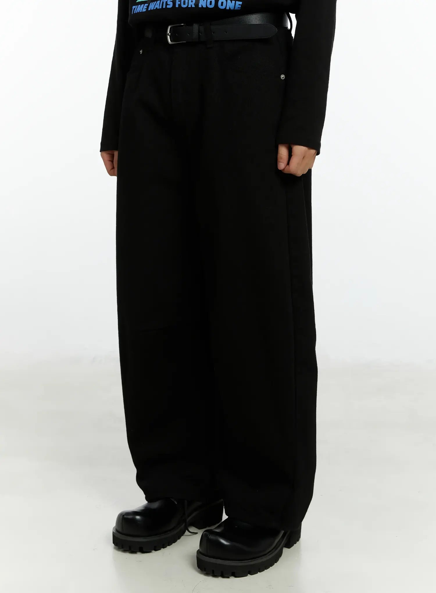 Men's Black Curved Fit Wide Cotton Pants IF511
