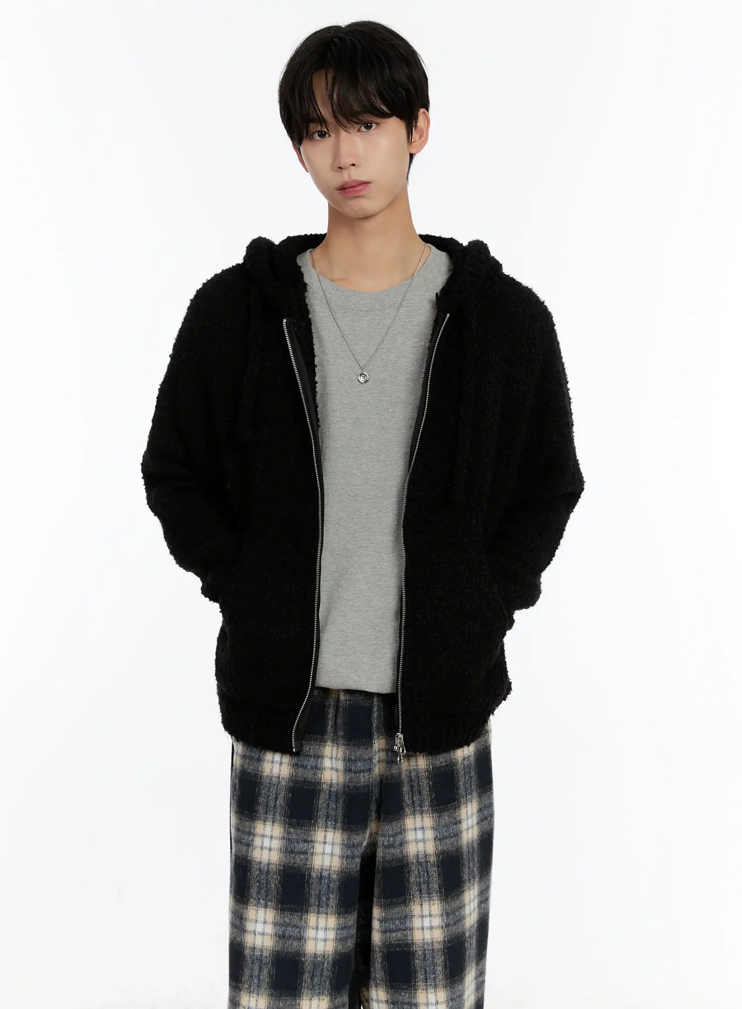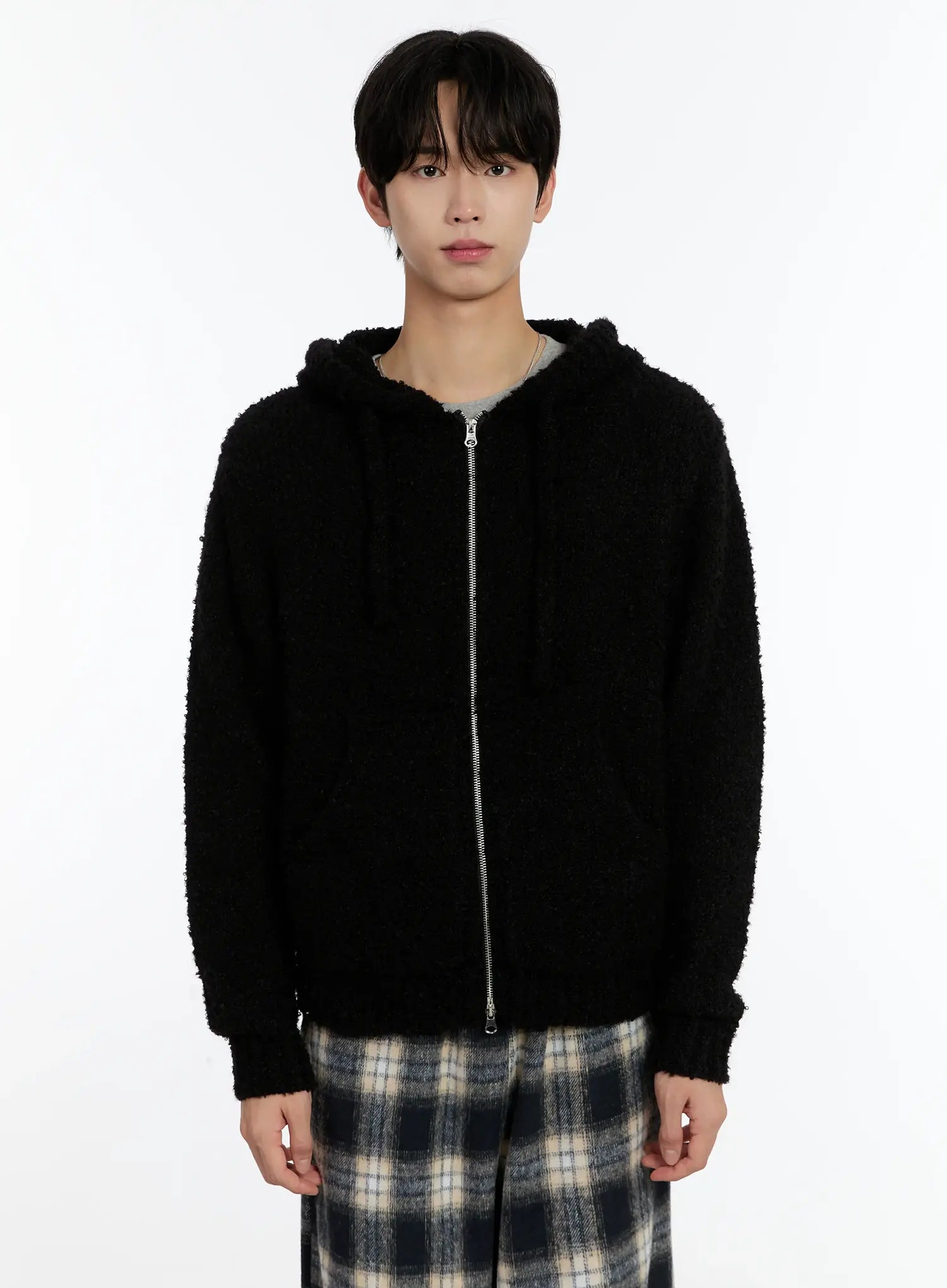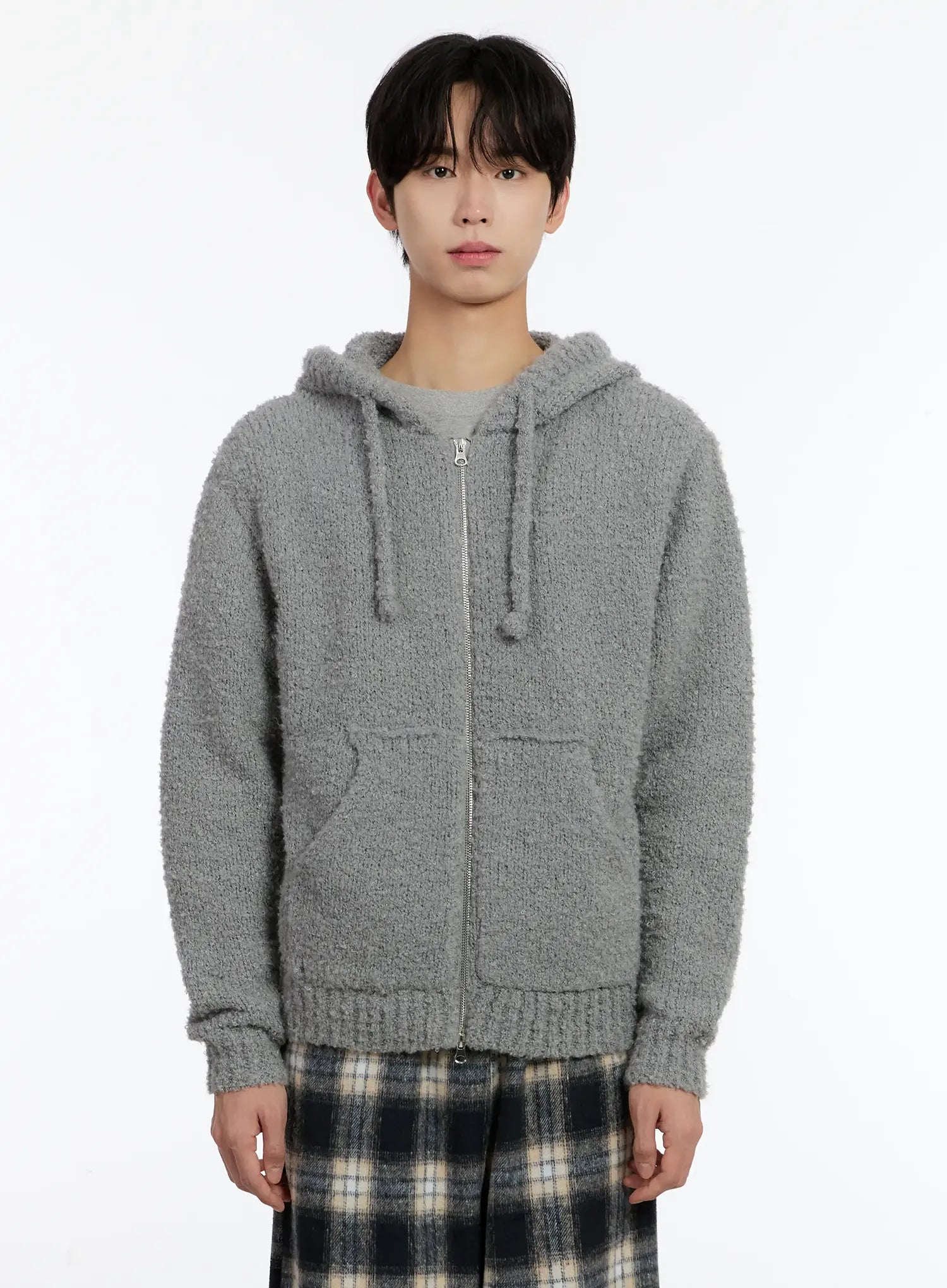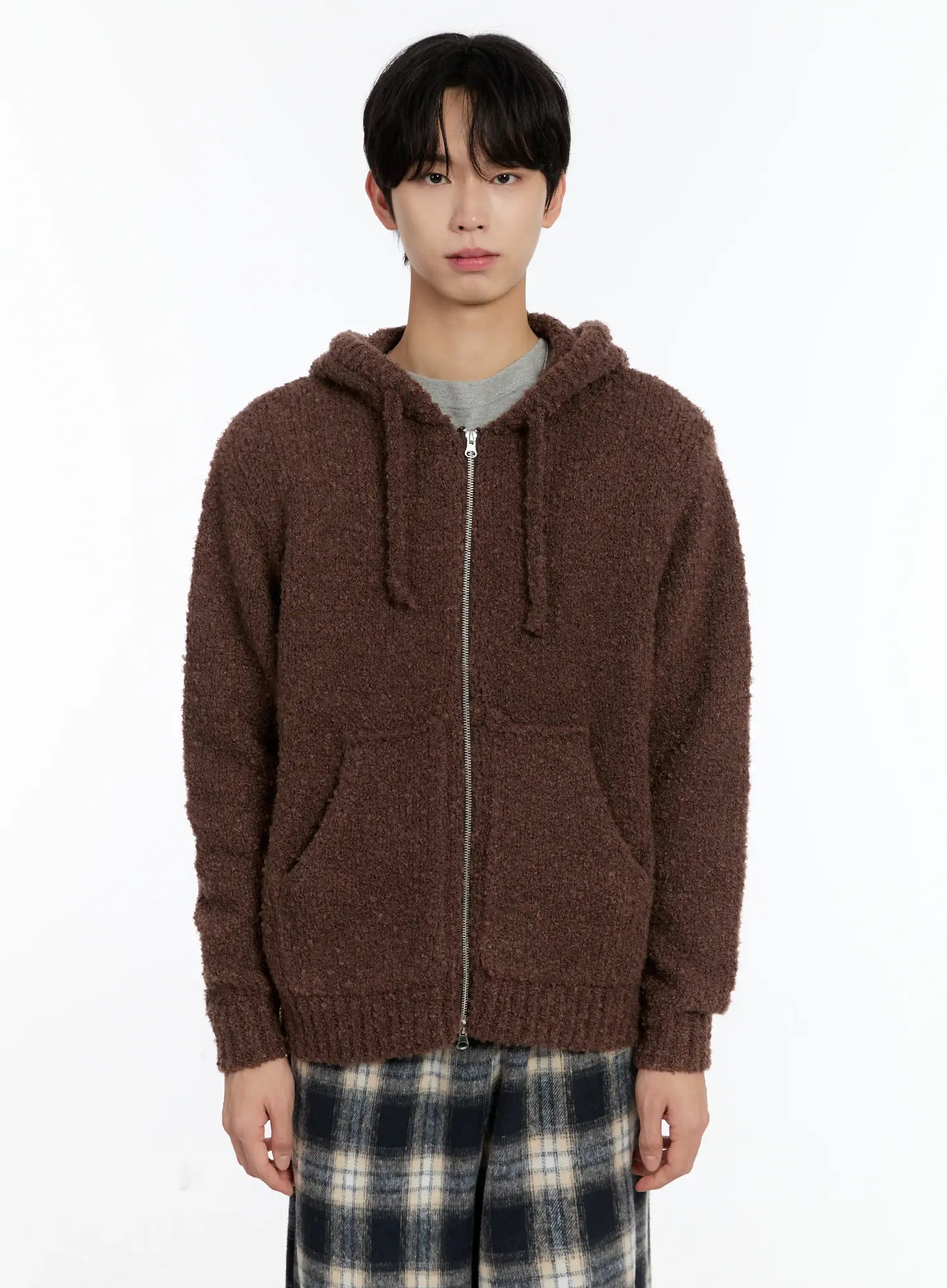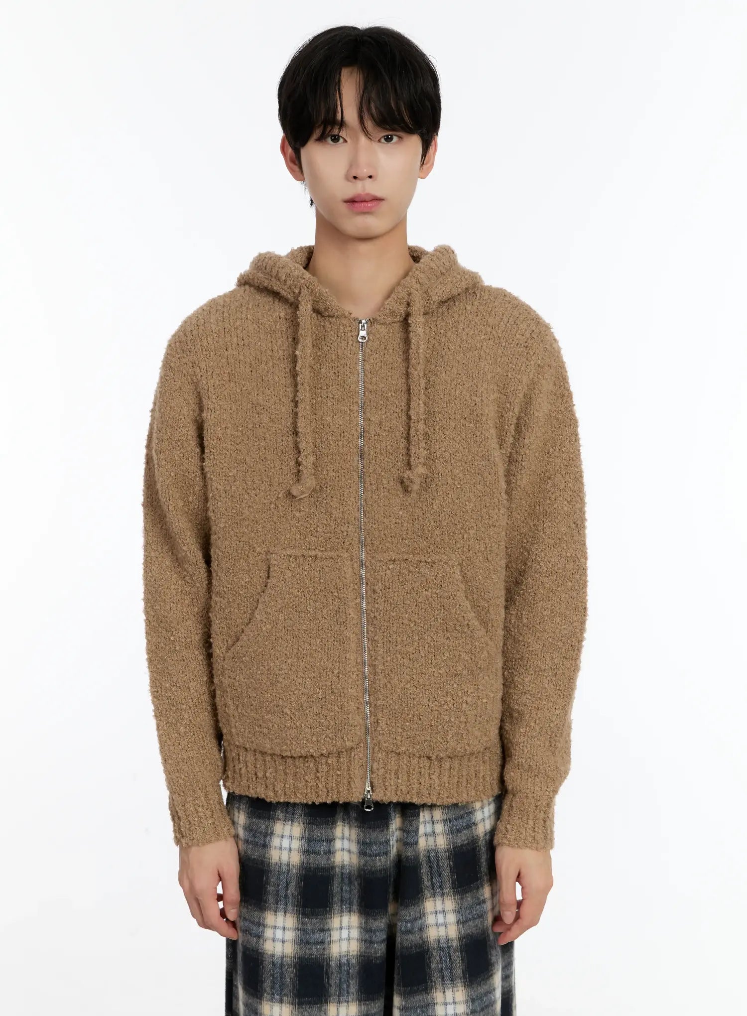 Men's Boucle Knit Zip-Up Hoodie ID502
