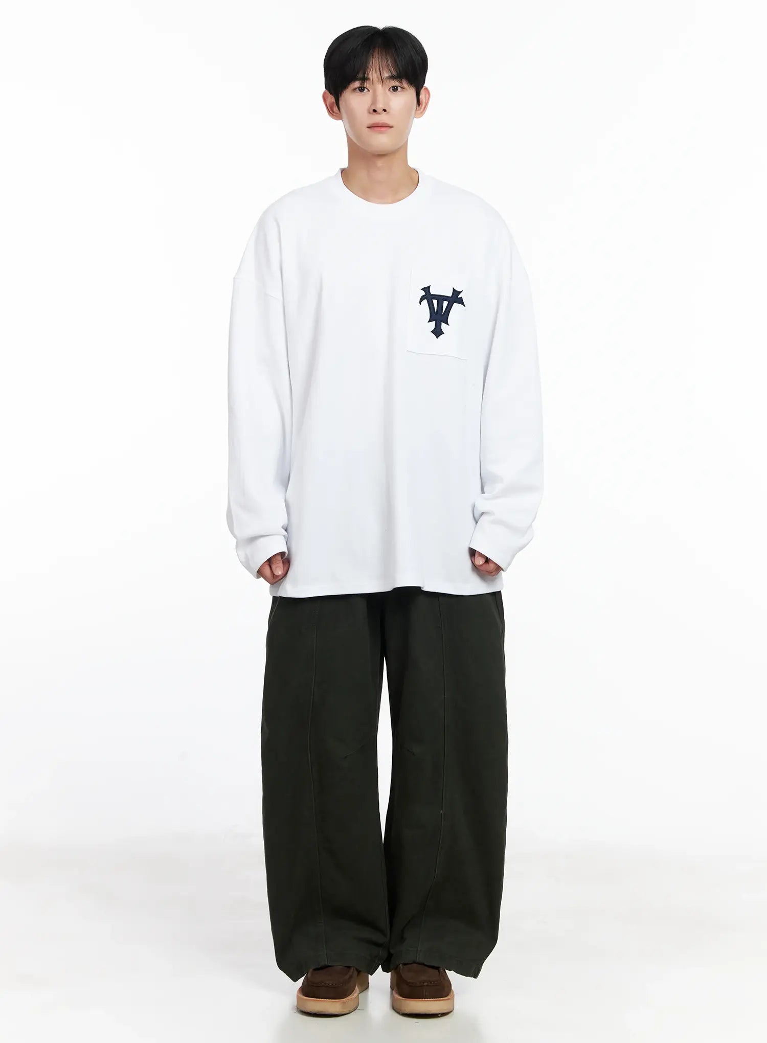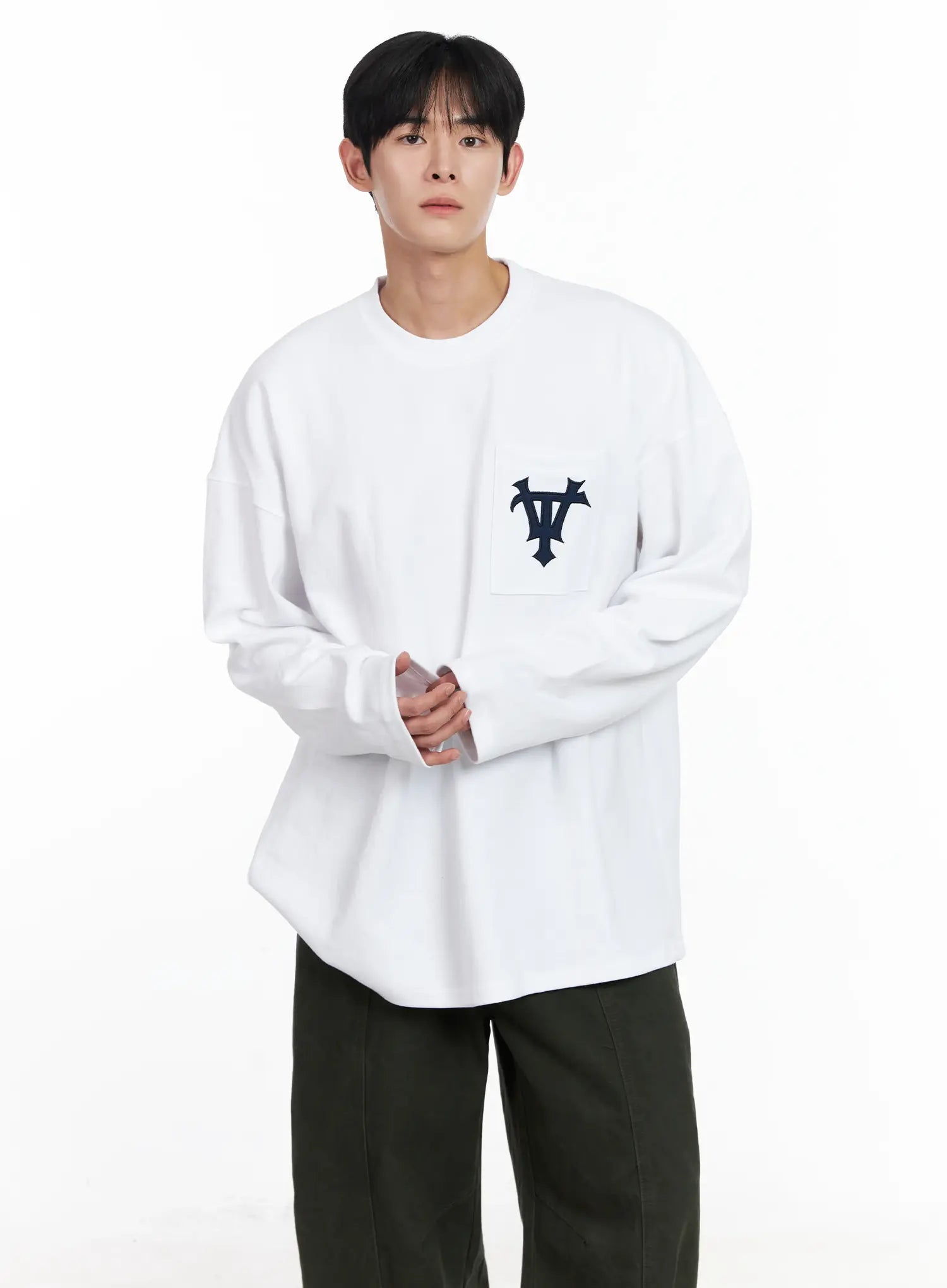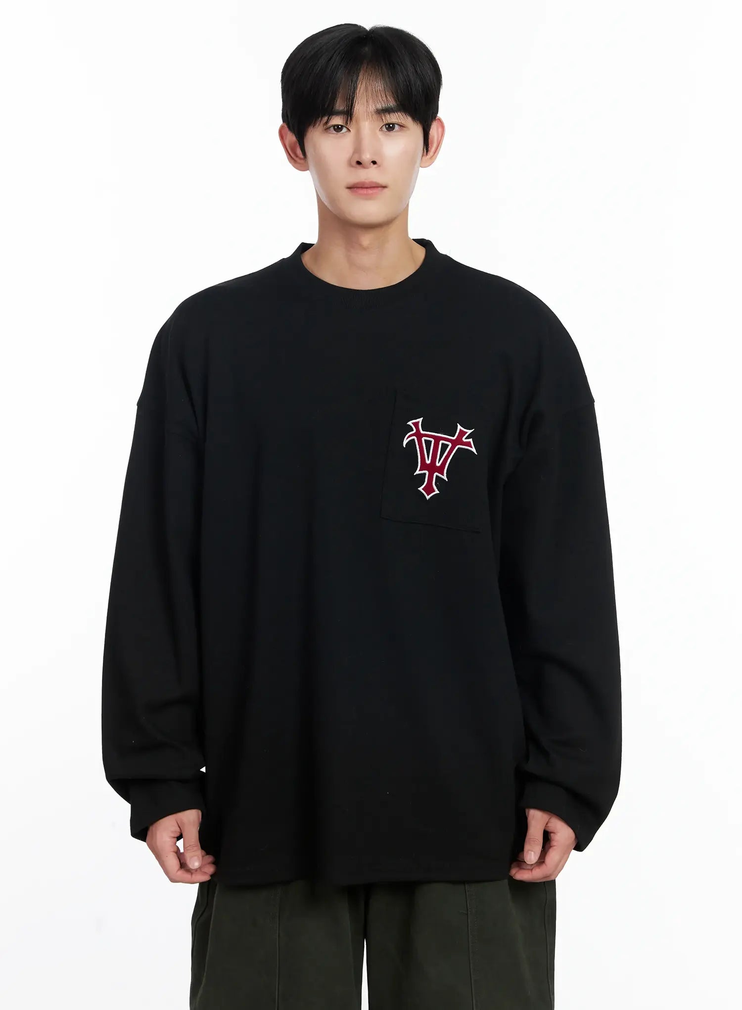 Men's Casual Embroidered Pocket Long Sleeve IJ521