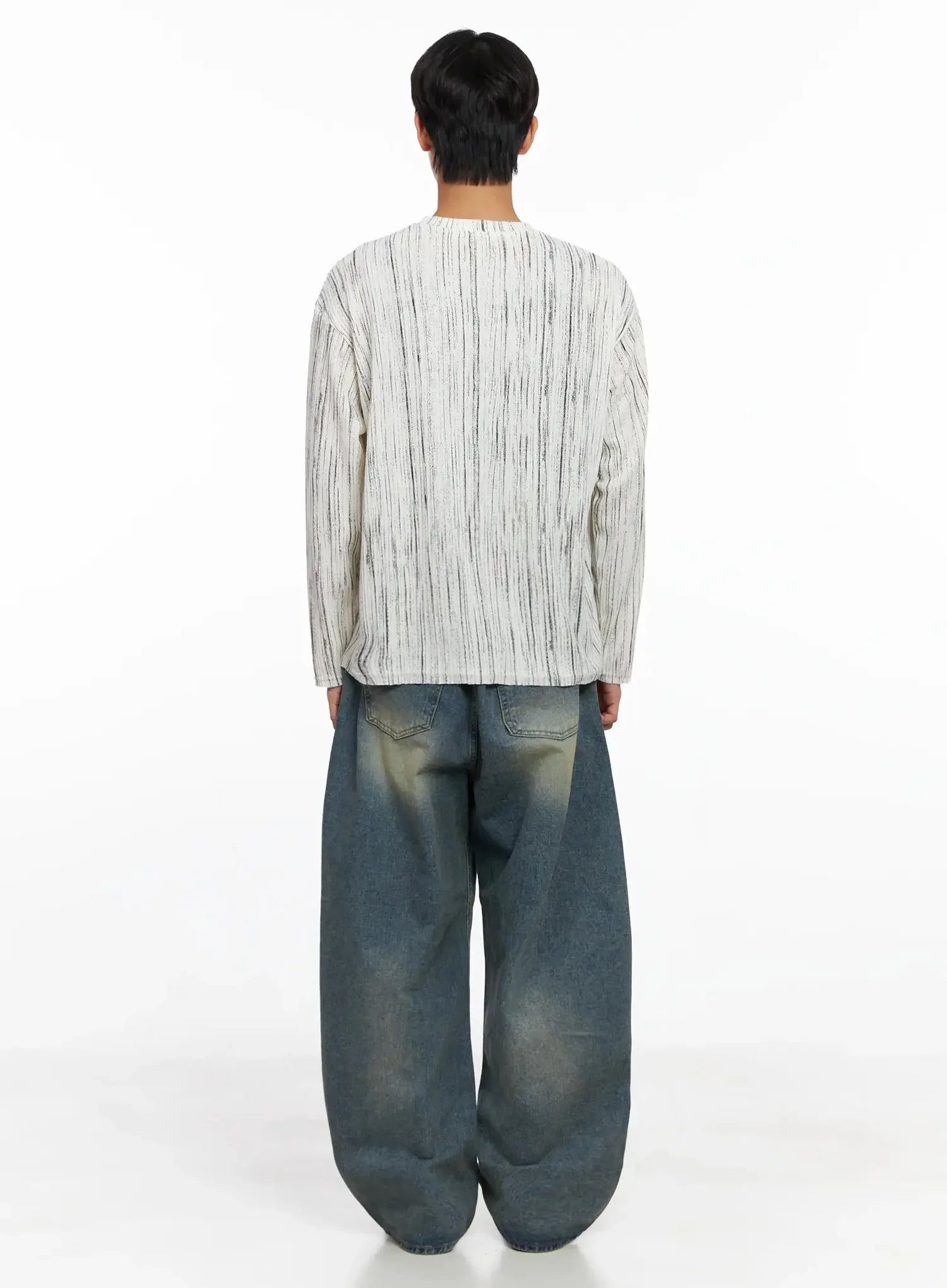Men's Classic Blue Washed Wide-Leg Jeans IO516