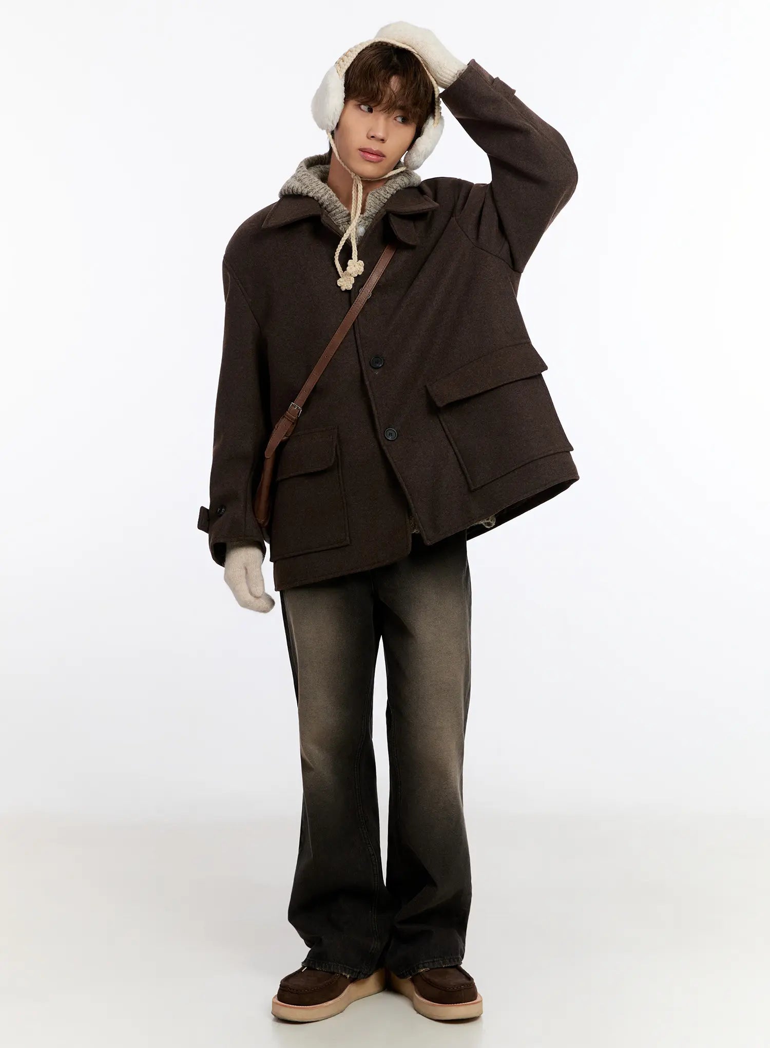 Model is wearing size M/L and the color Dark brown.