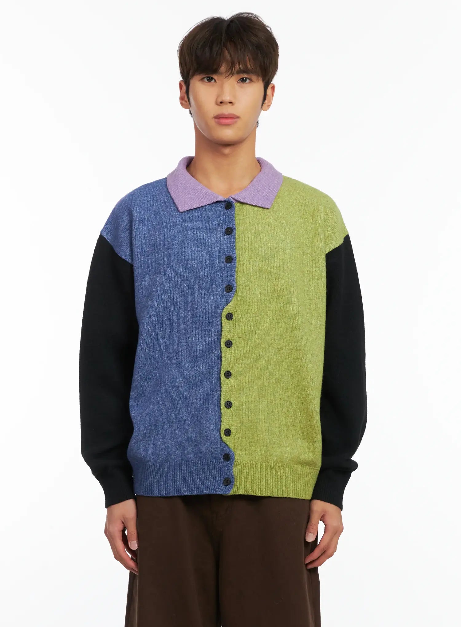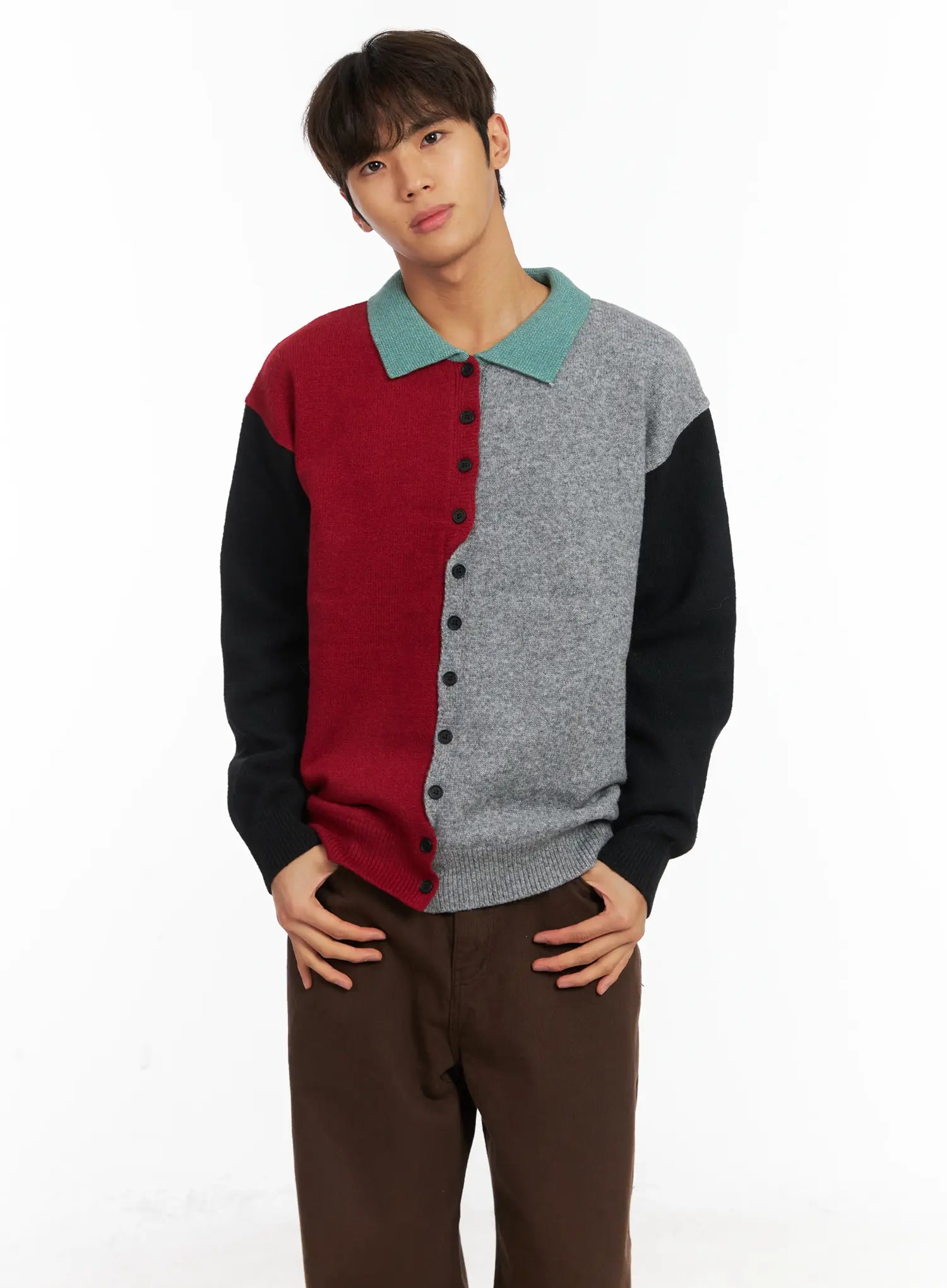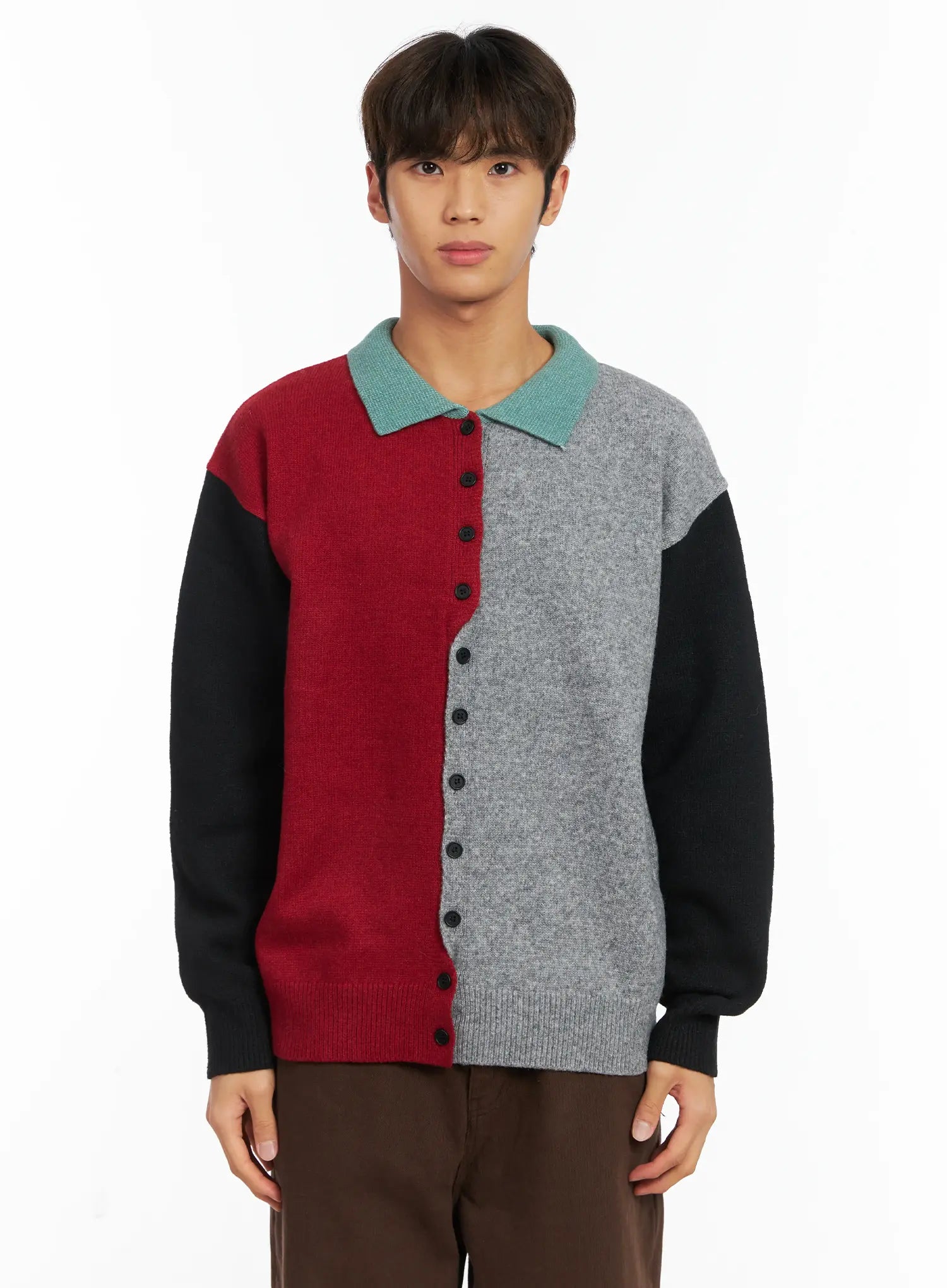 Men's Colorblock Collared Cardigan ID511
