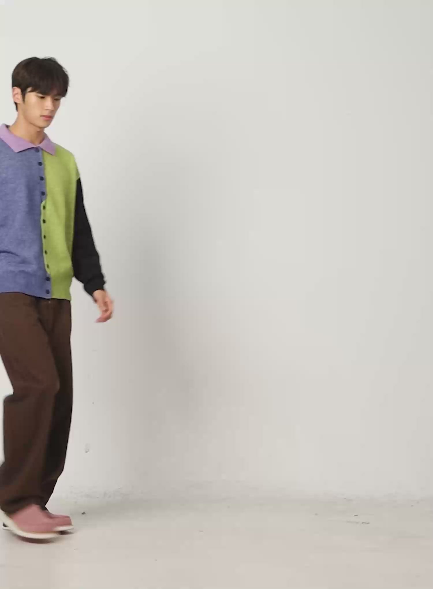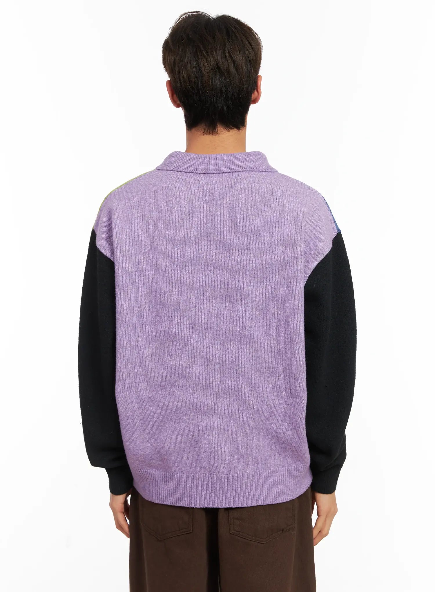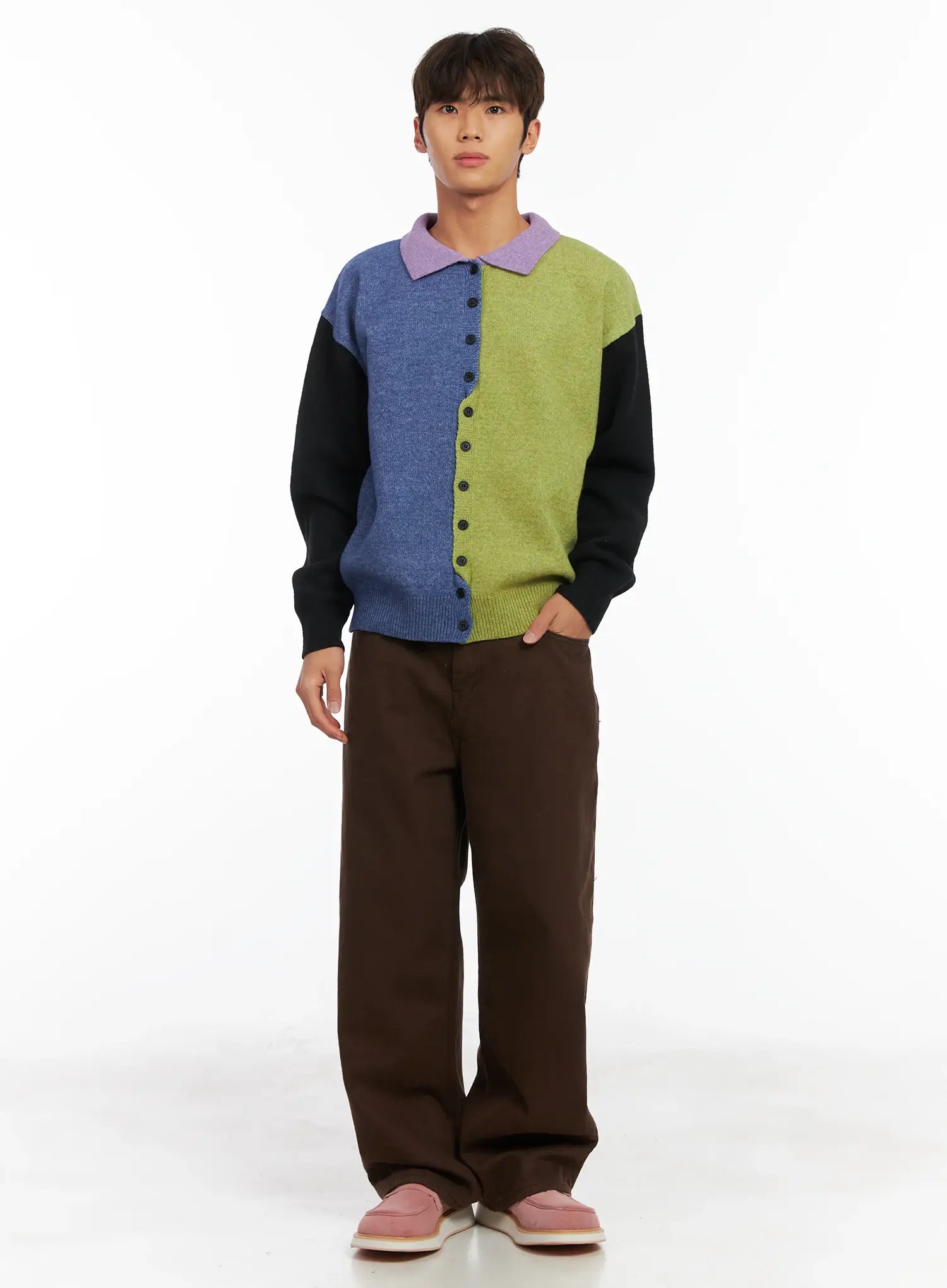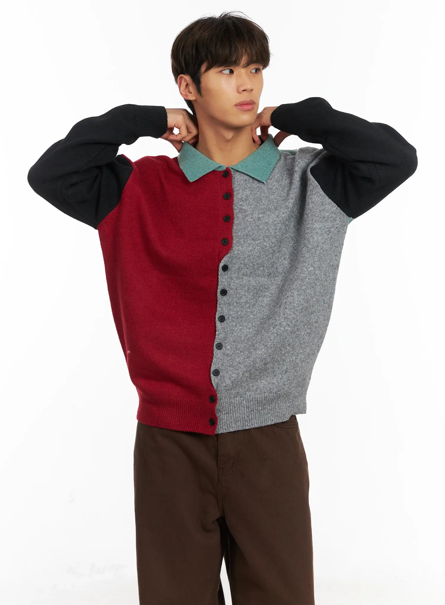 Men's Colorblock Collared Cardigan ID511