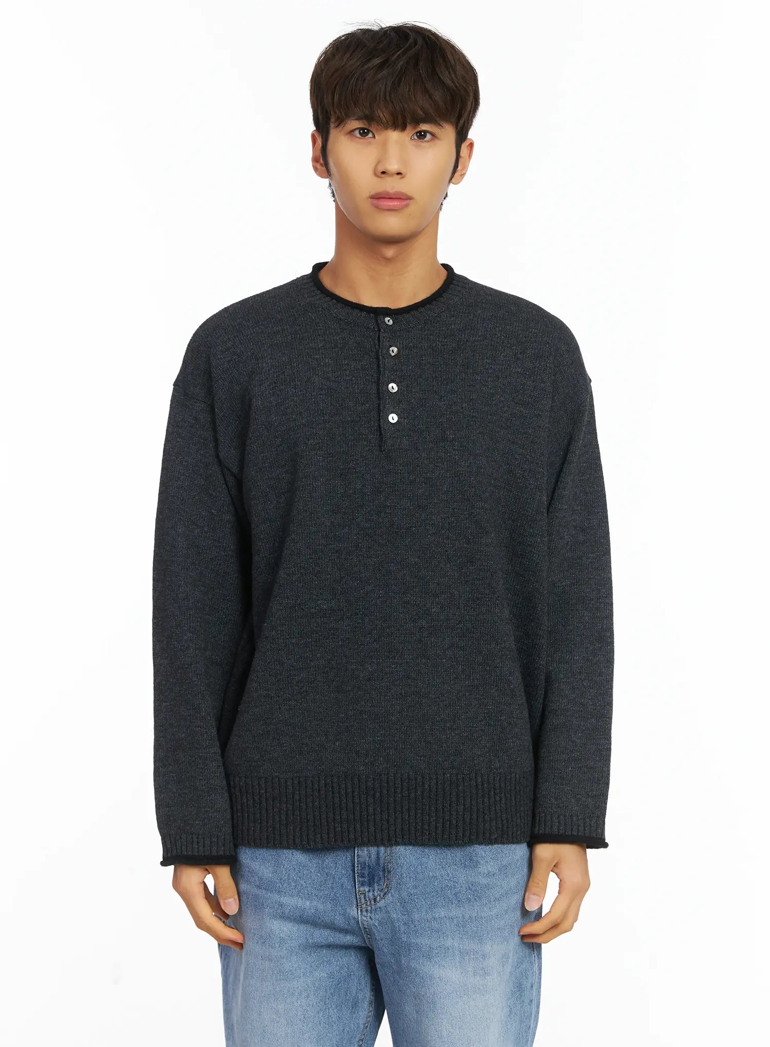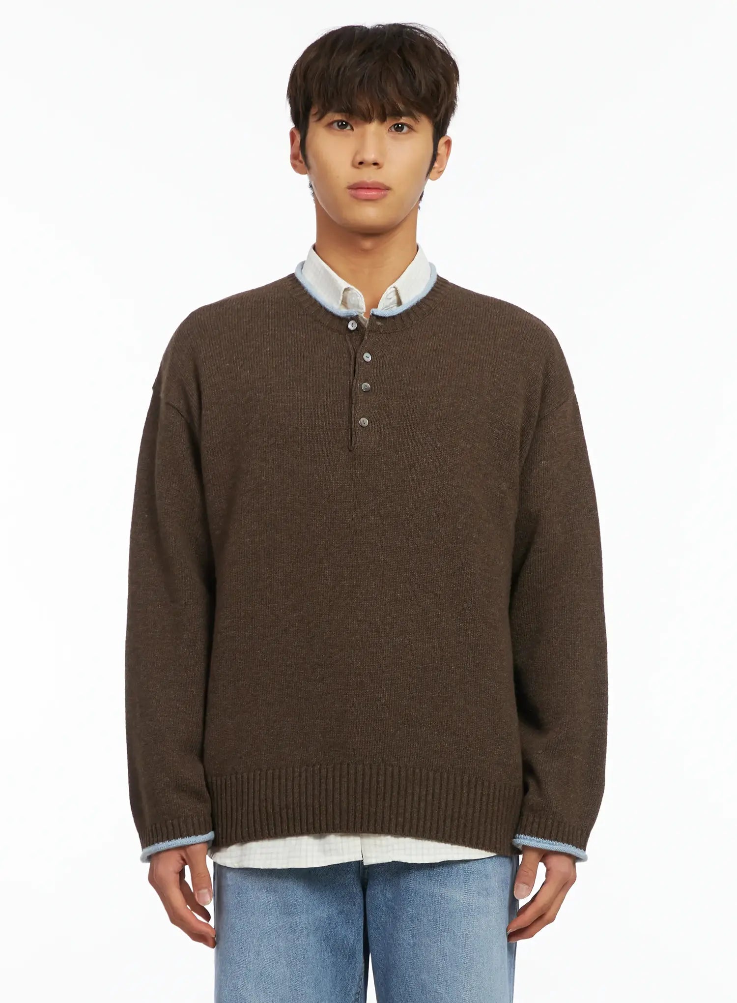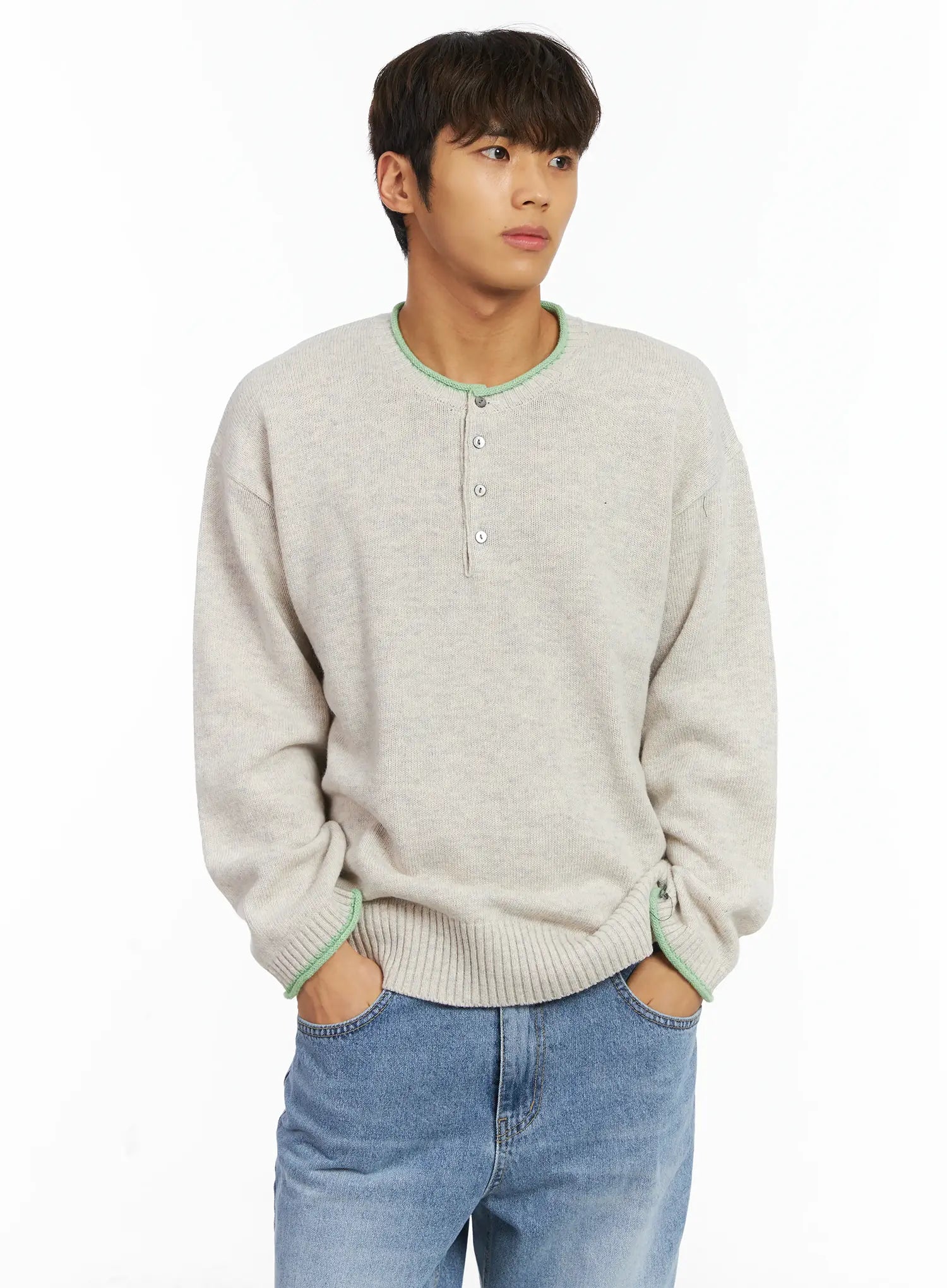Men's Contrast Henley Knit IJ514