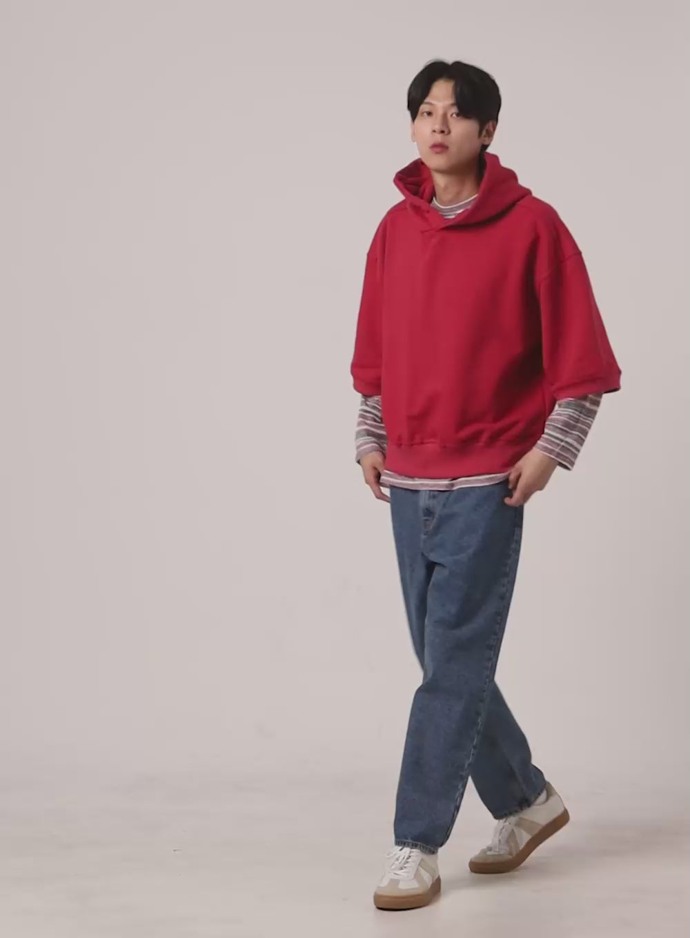 Men's Cozy Boxy Fit Hooded Sweatshirt (Red) IU405
