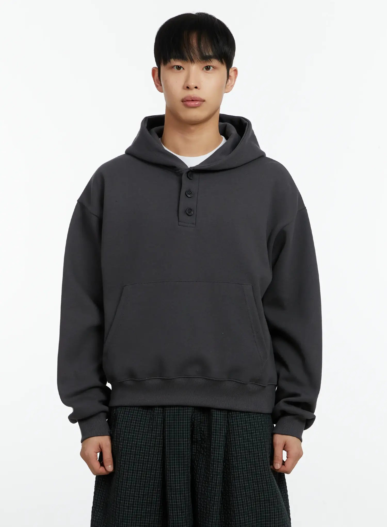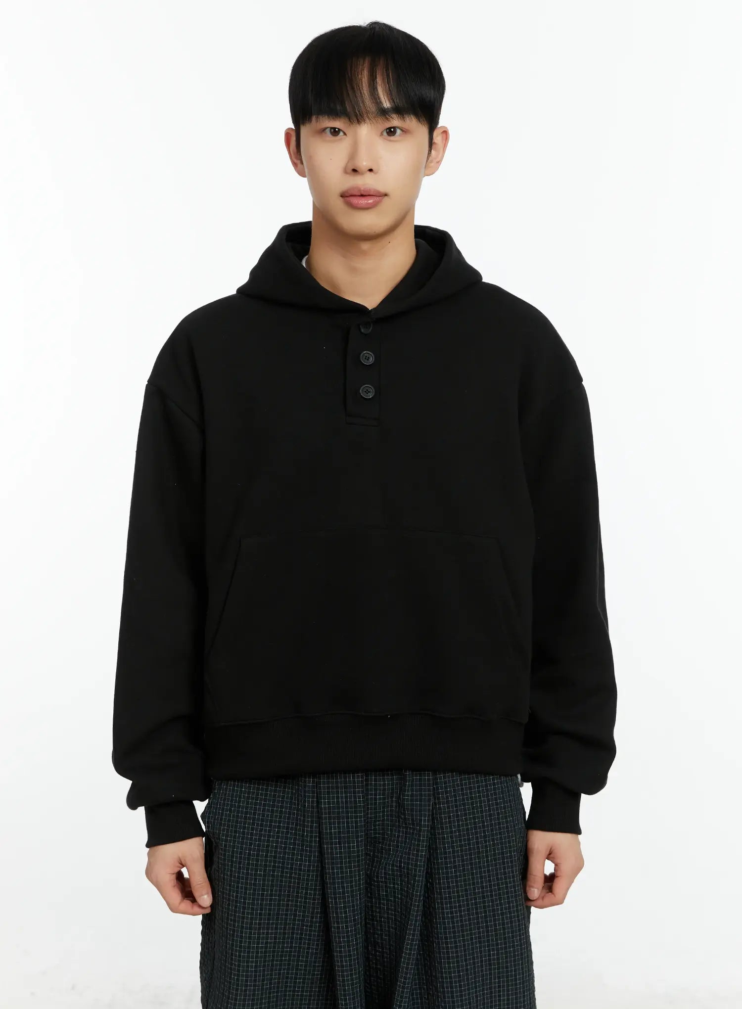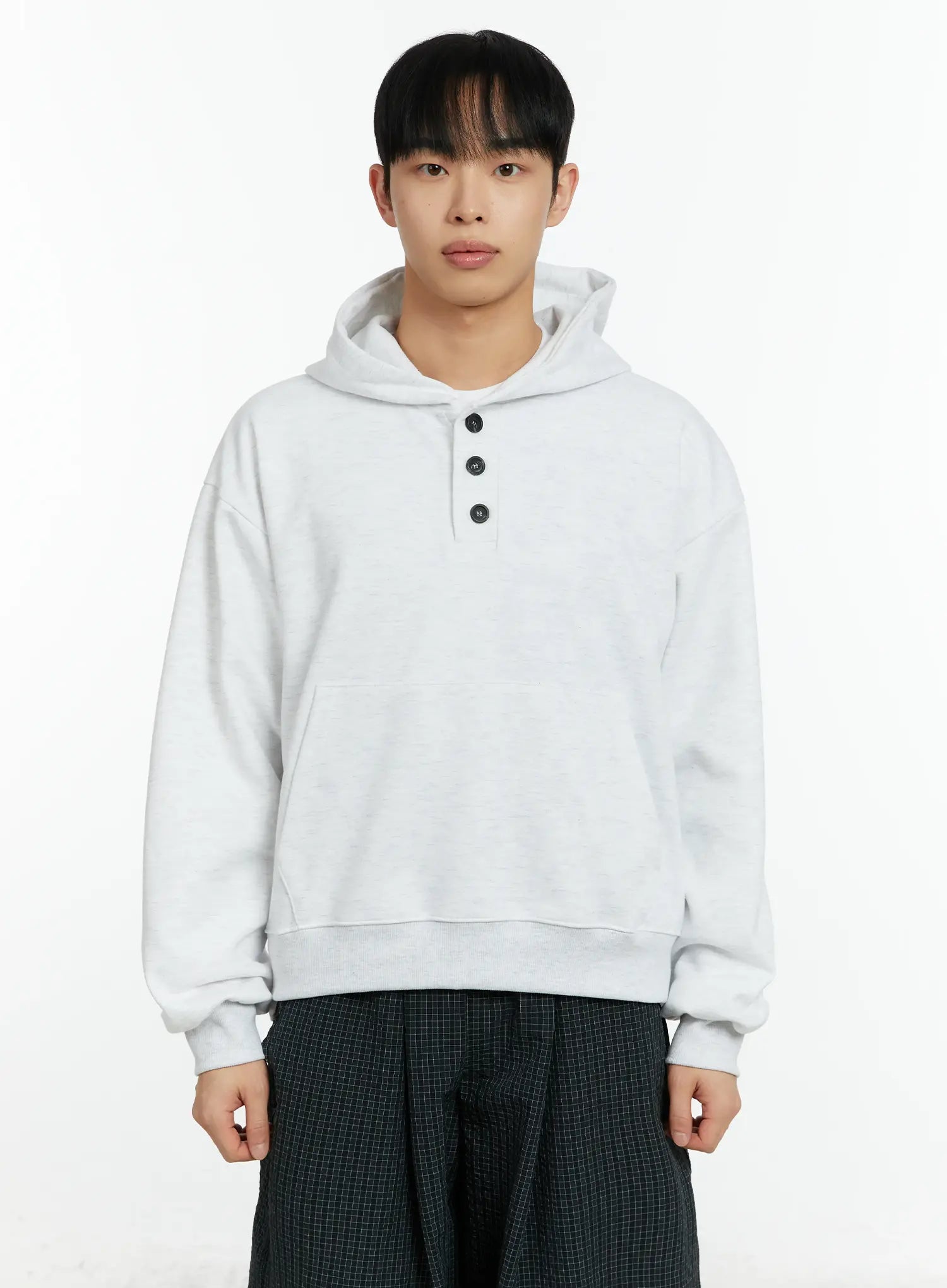 Men's Cropped Henley Hoodie IF511