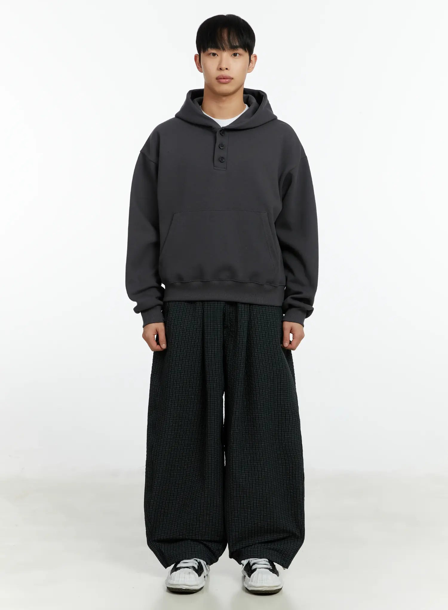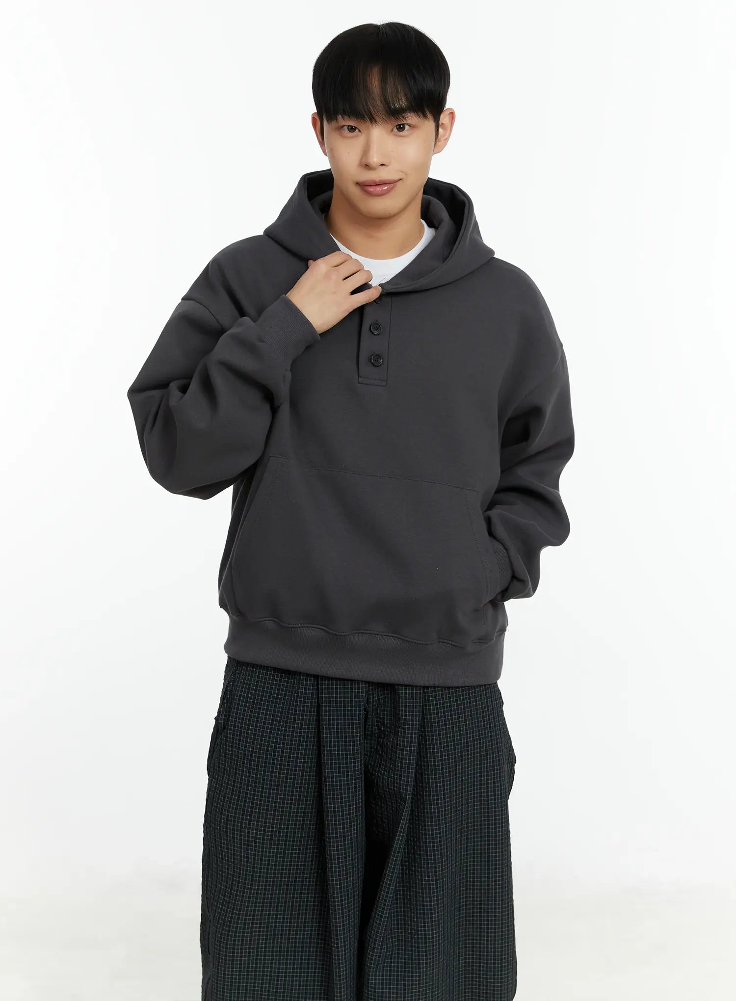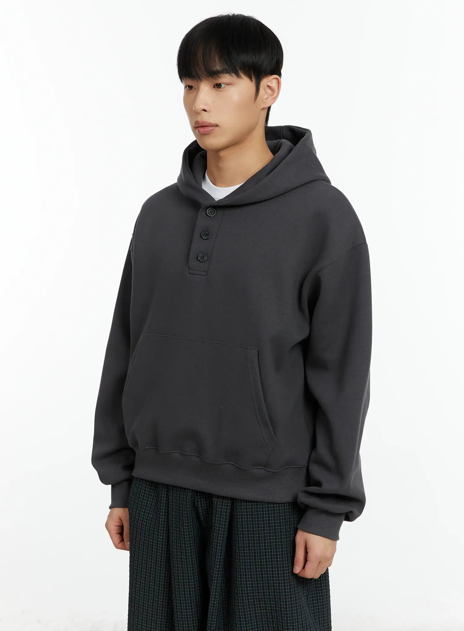Men's Cropped Henley Hoodie IF511