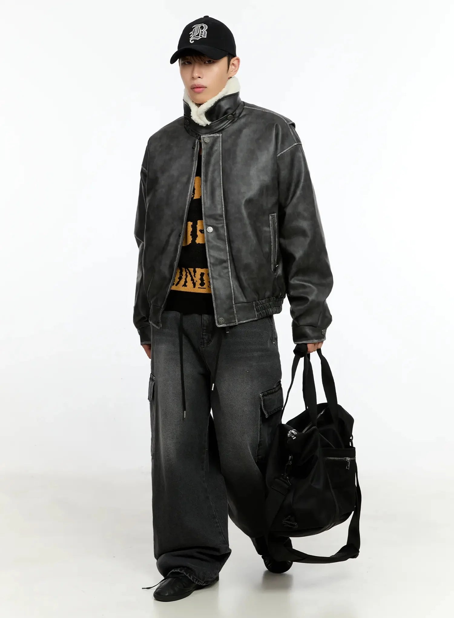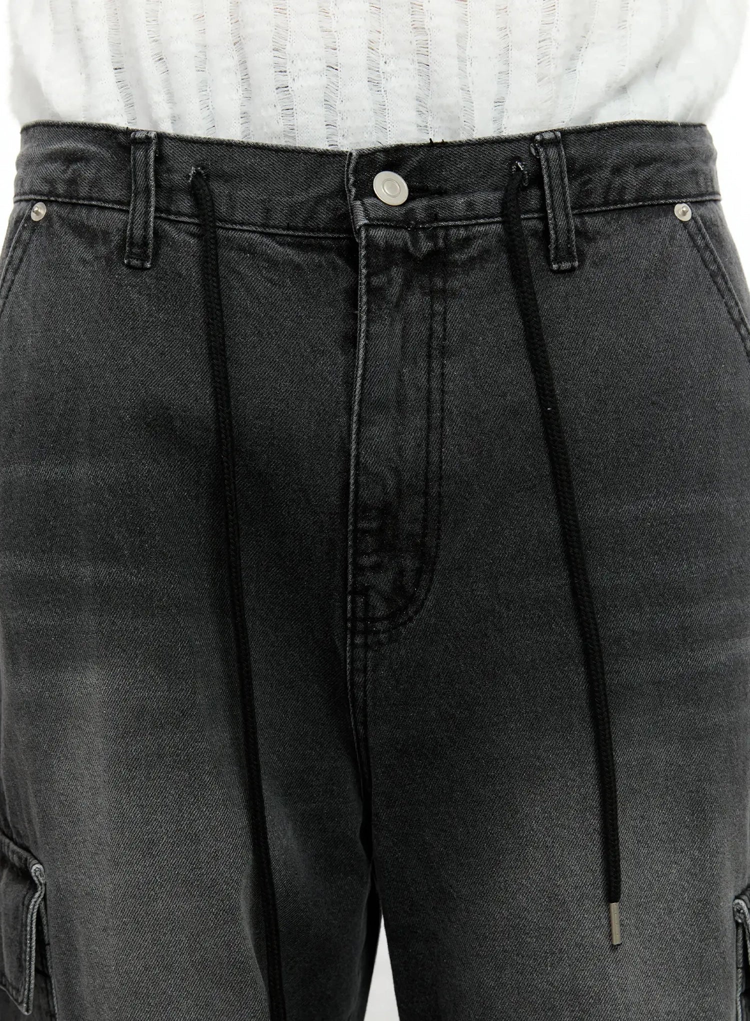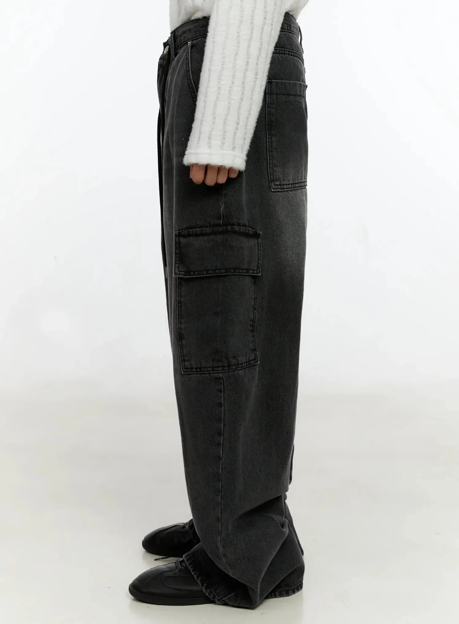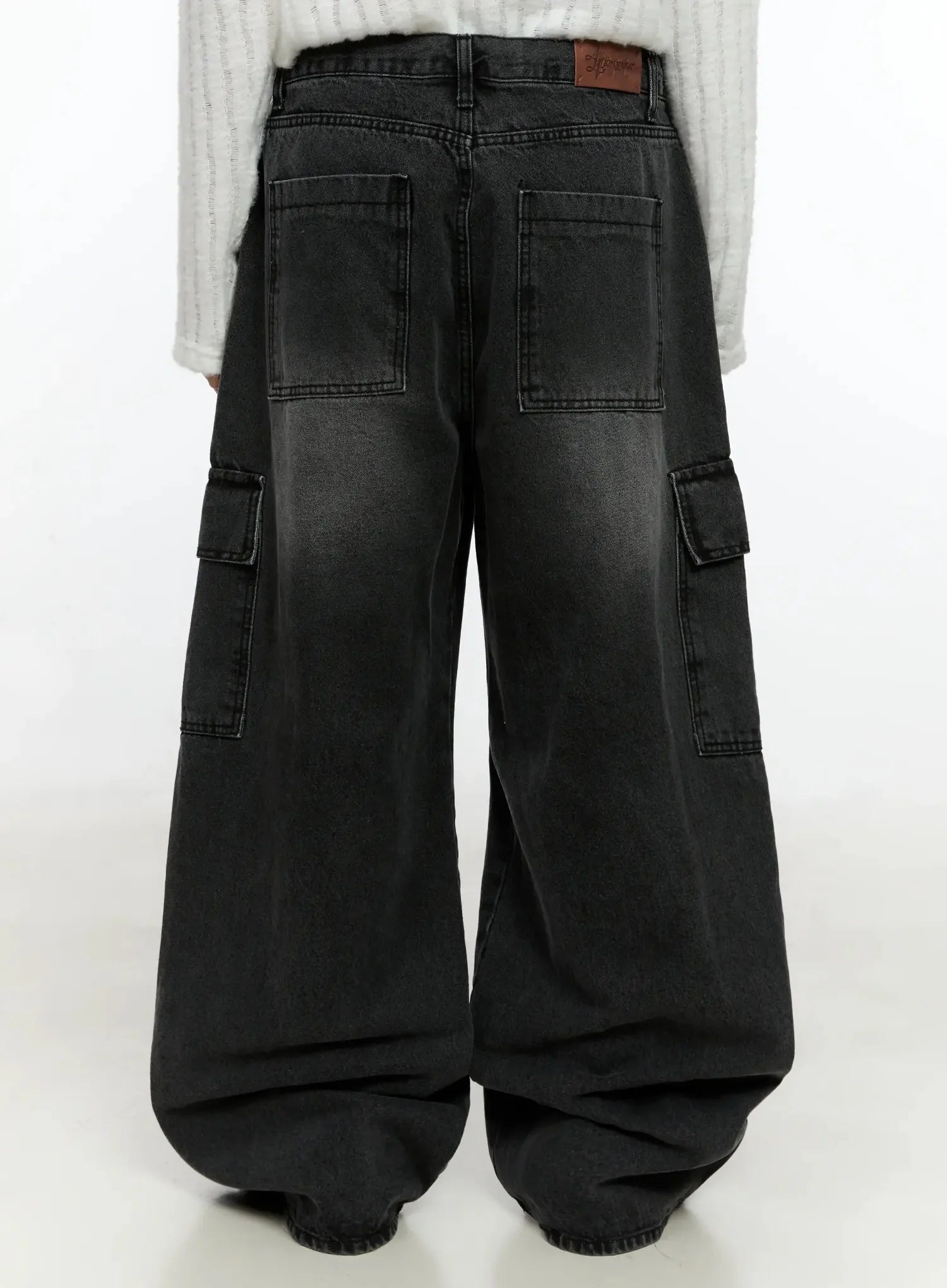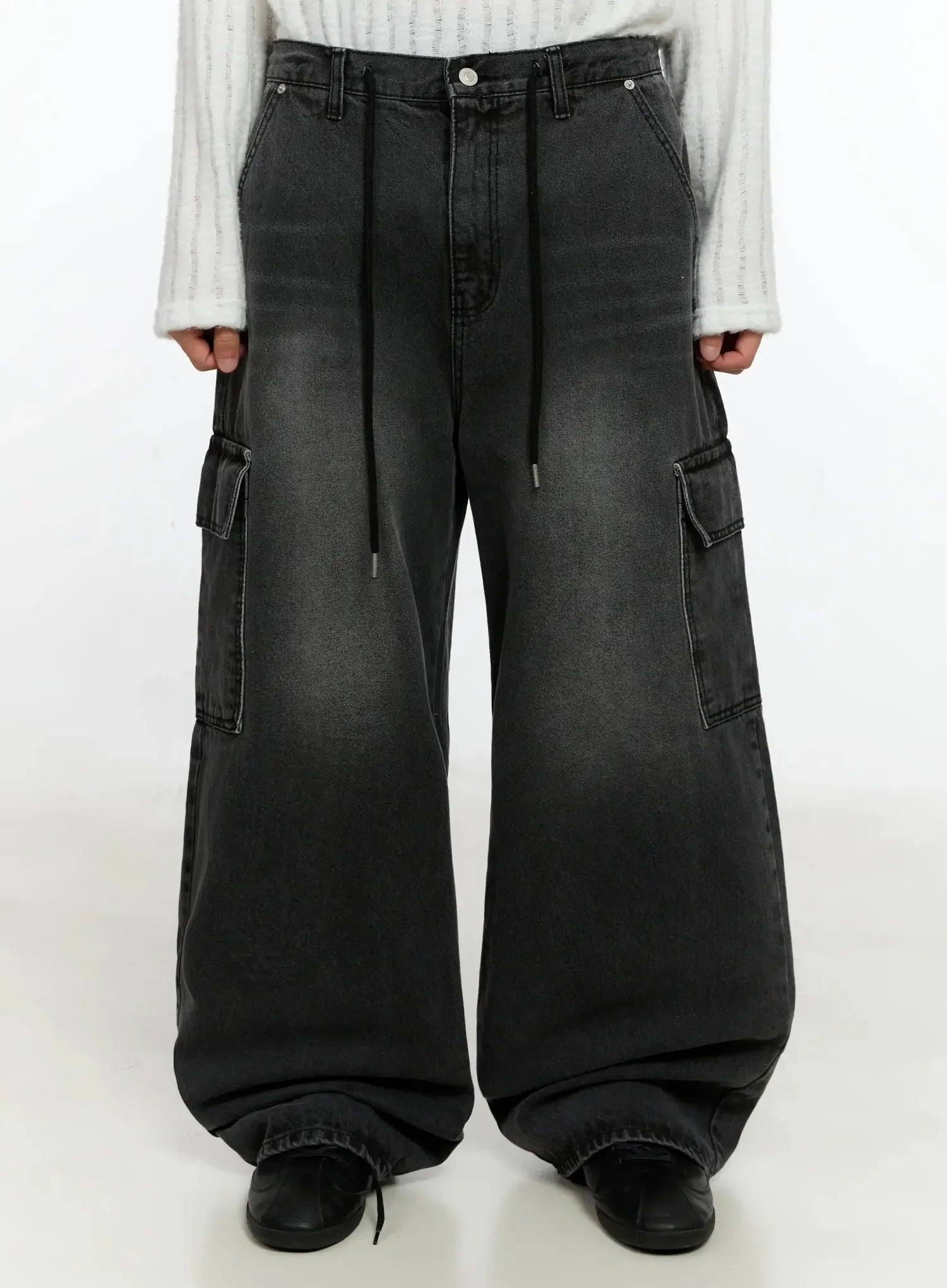 Men's Dark-Washed Cargo Wide Pants IN525