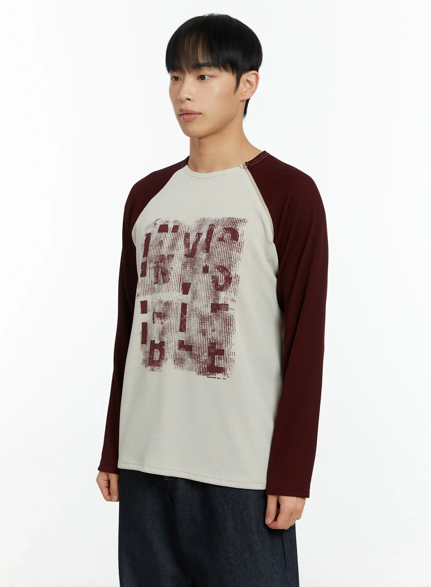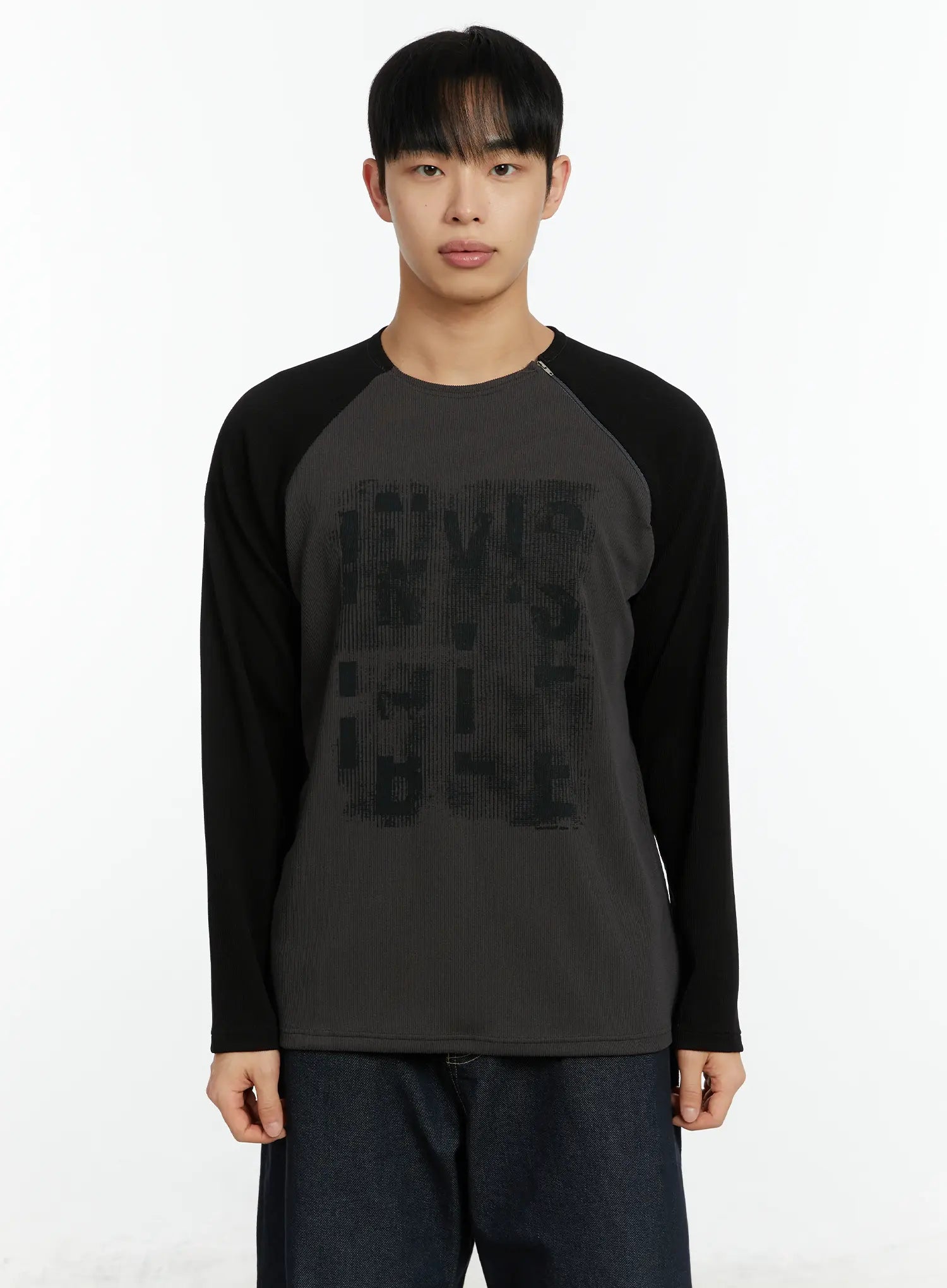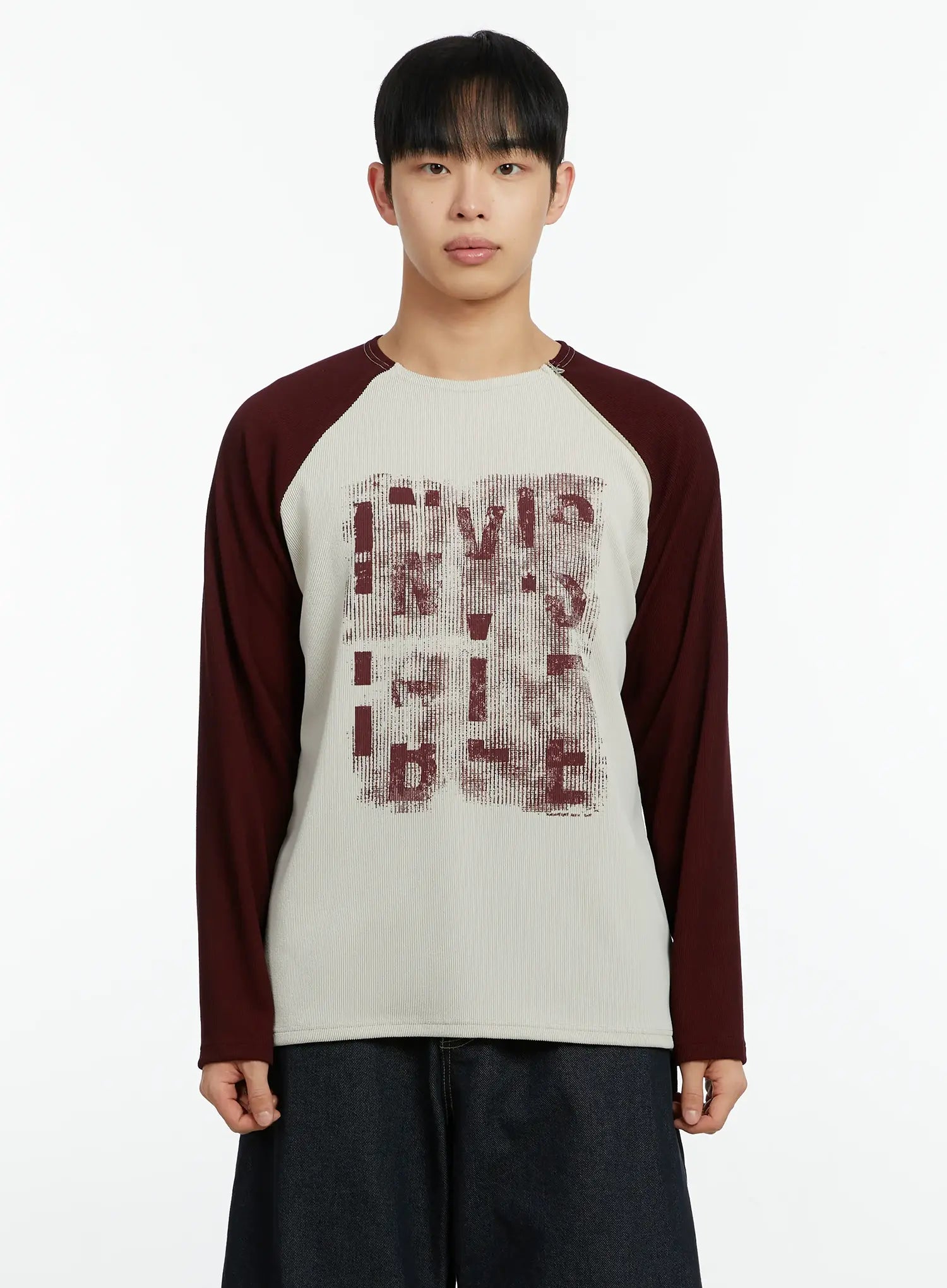 Men's Graphic Print Ribbed Long Sleeve Top IF510