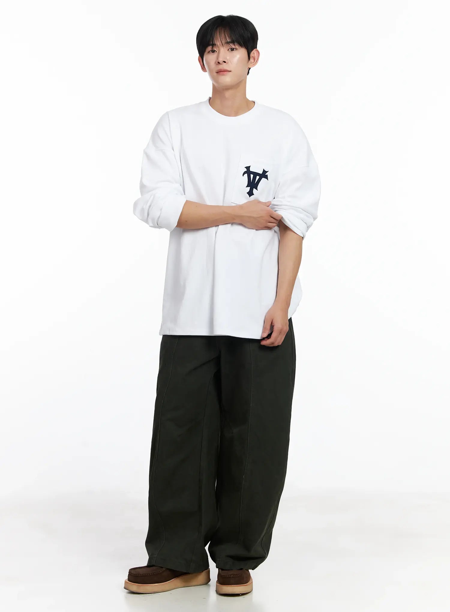 Men's Heart Embroidered Wide Cotton Pants IJ521