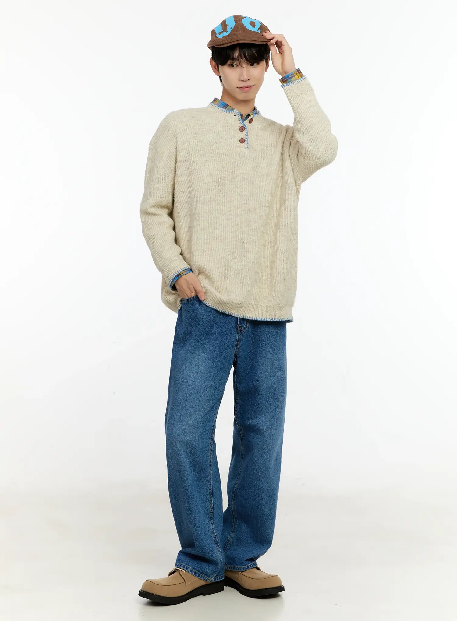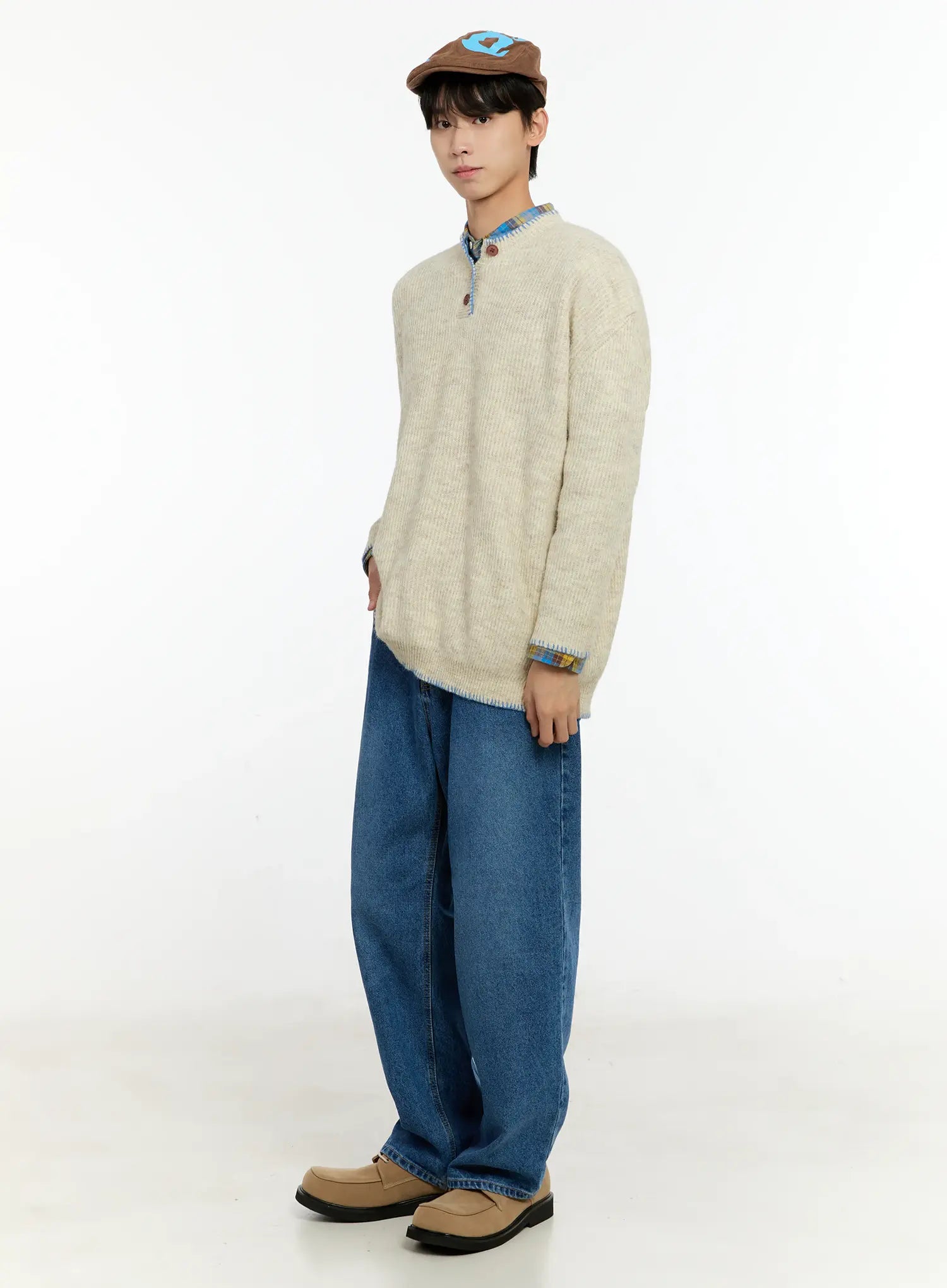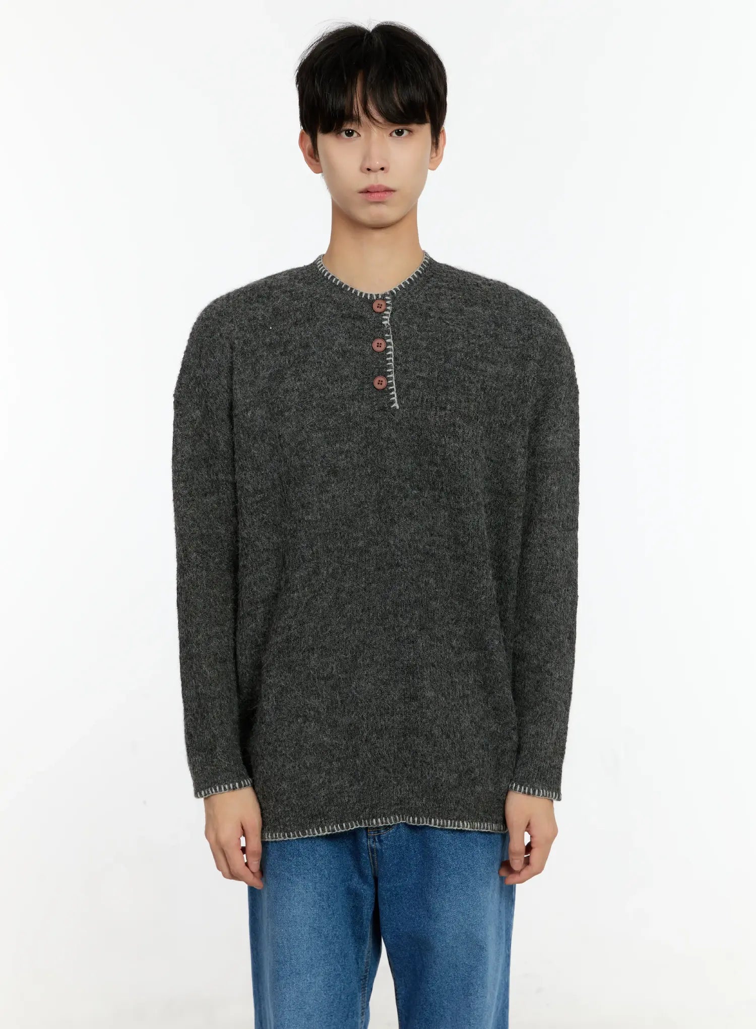 Men's Henley Contrast Stitch Sweater IN503