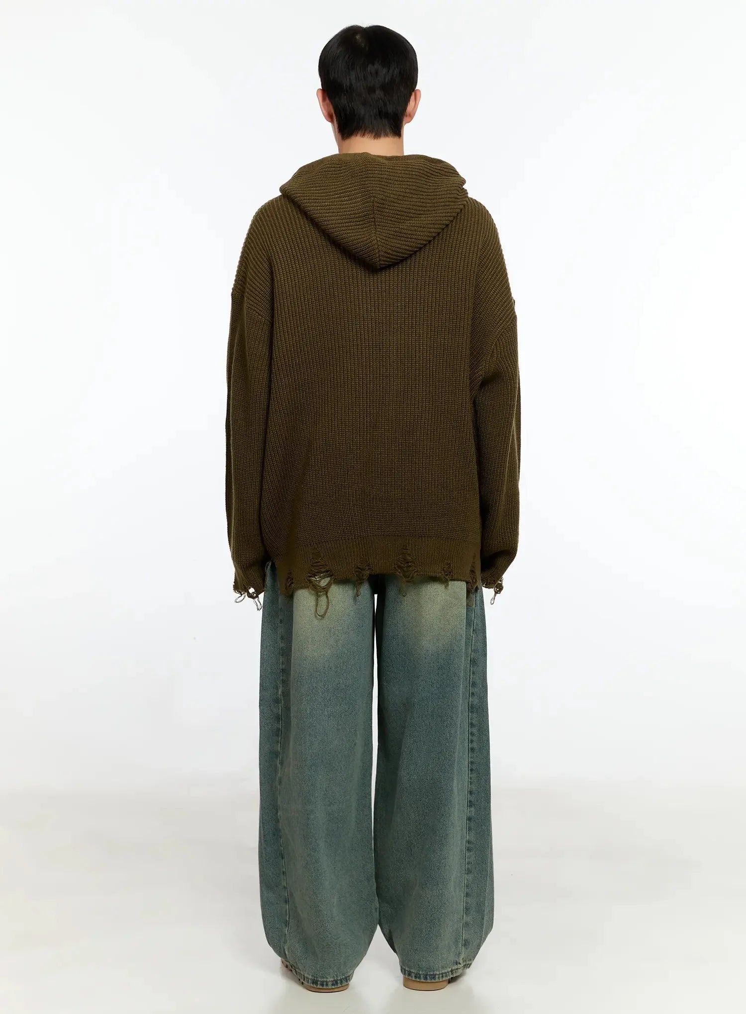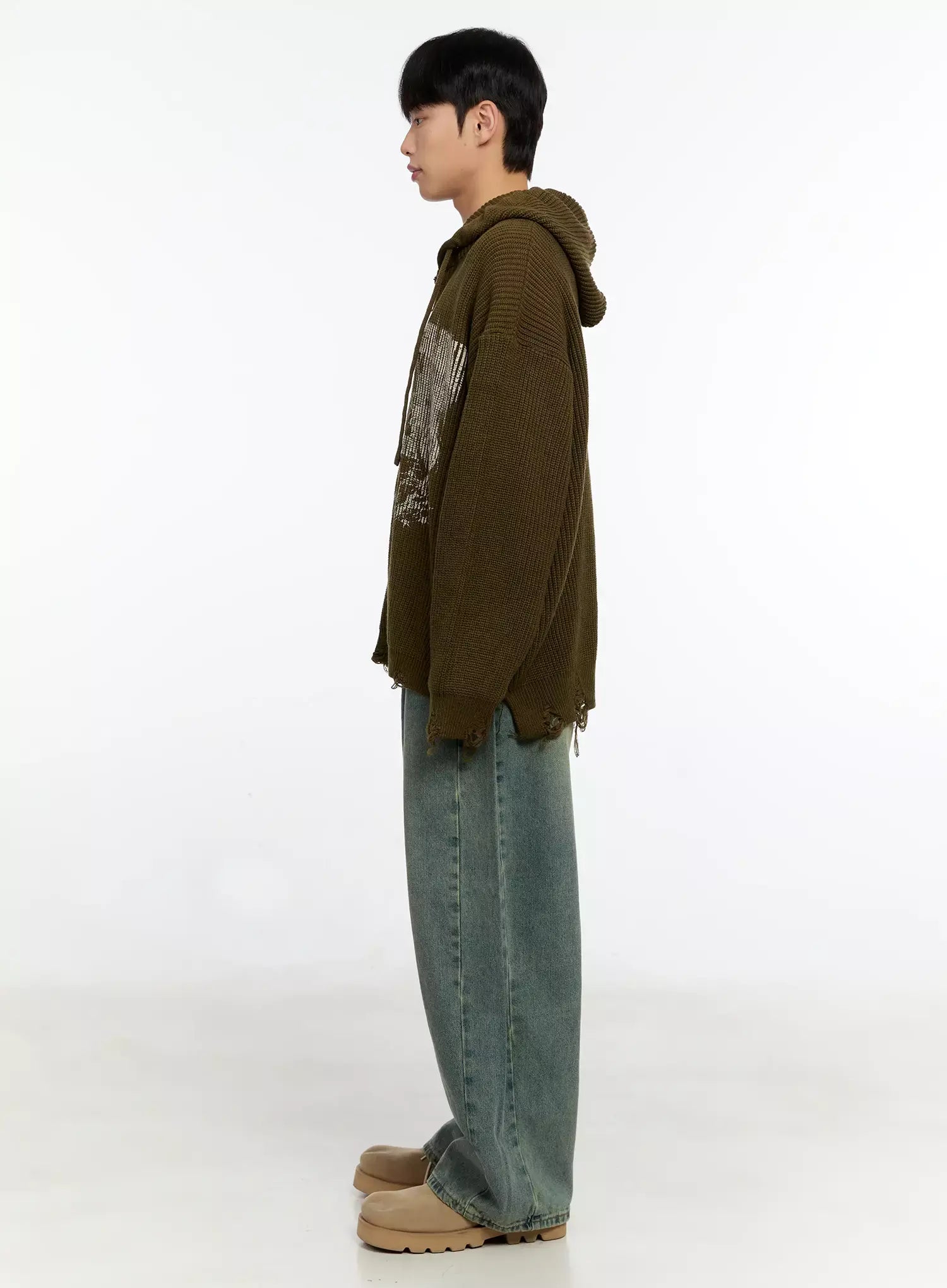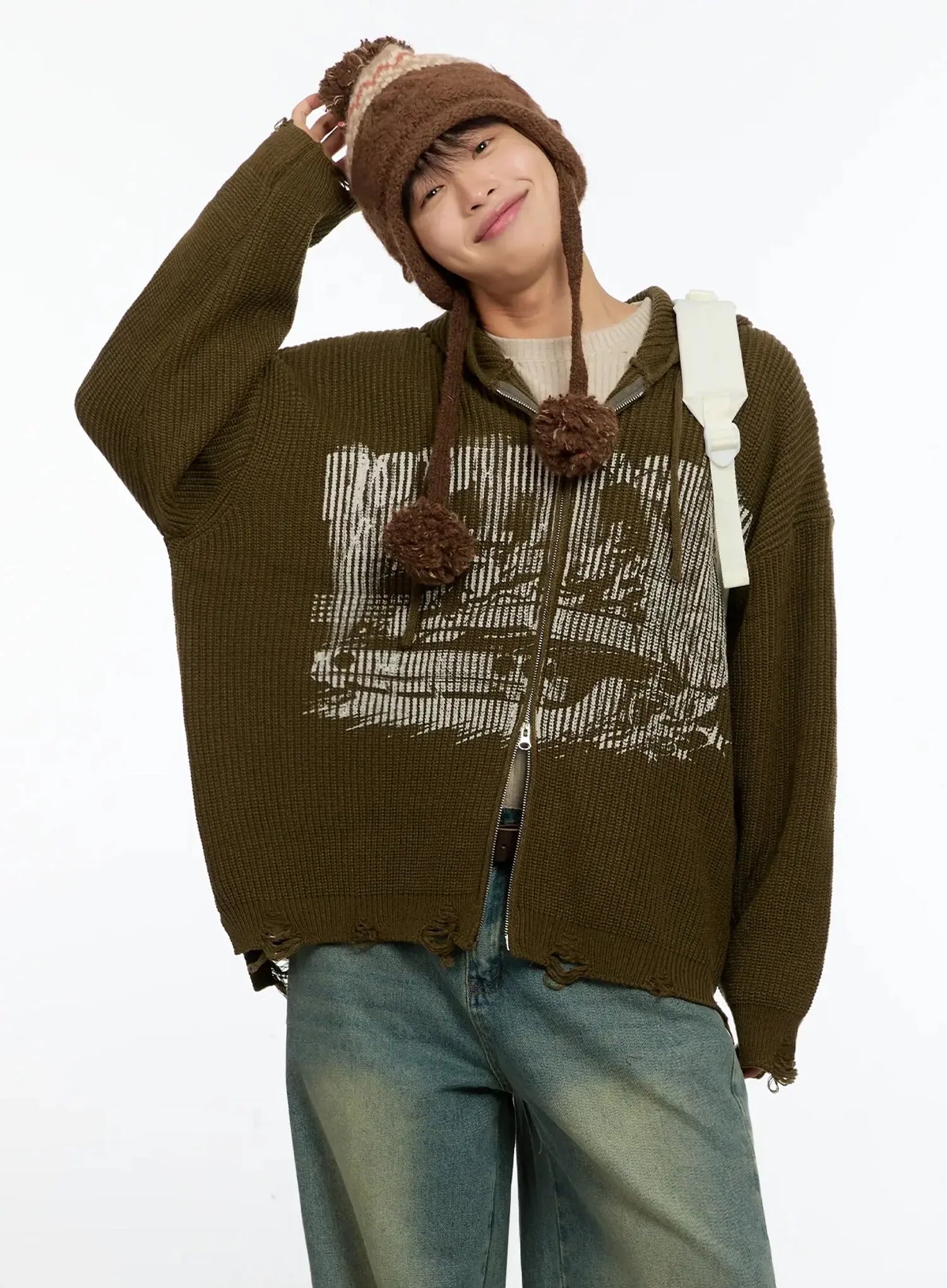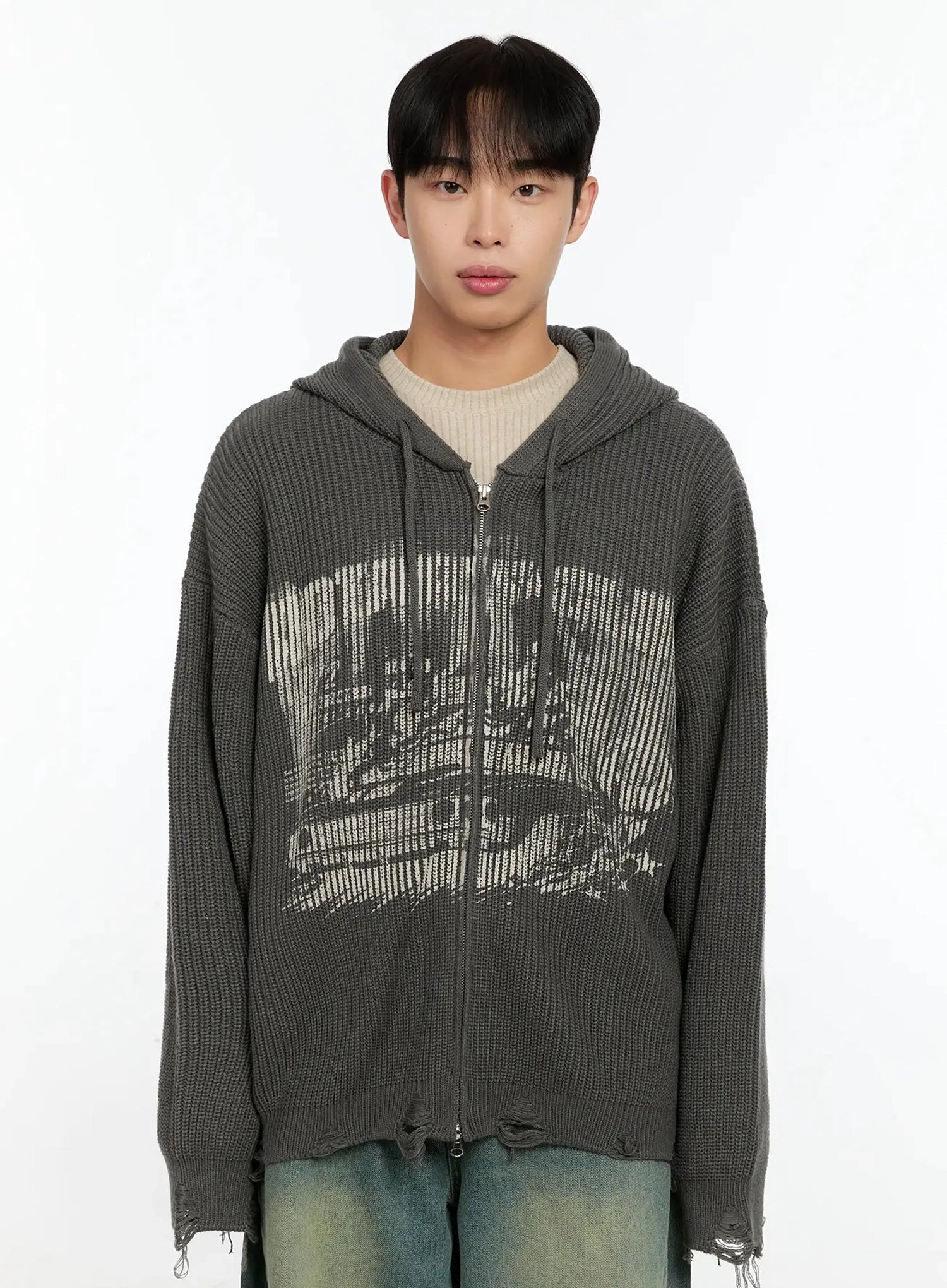 Men's Laser-Printed Knit Hooded Zip-Up IN525