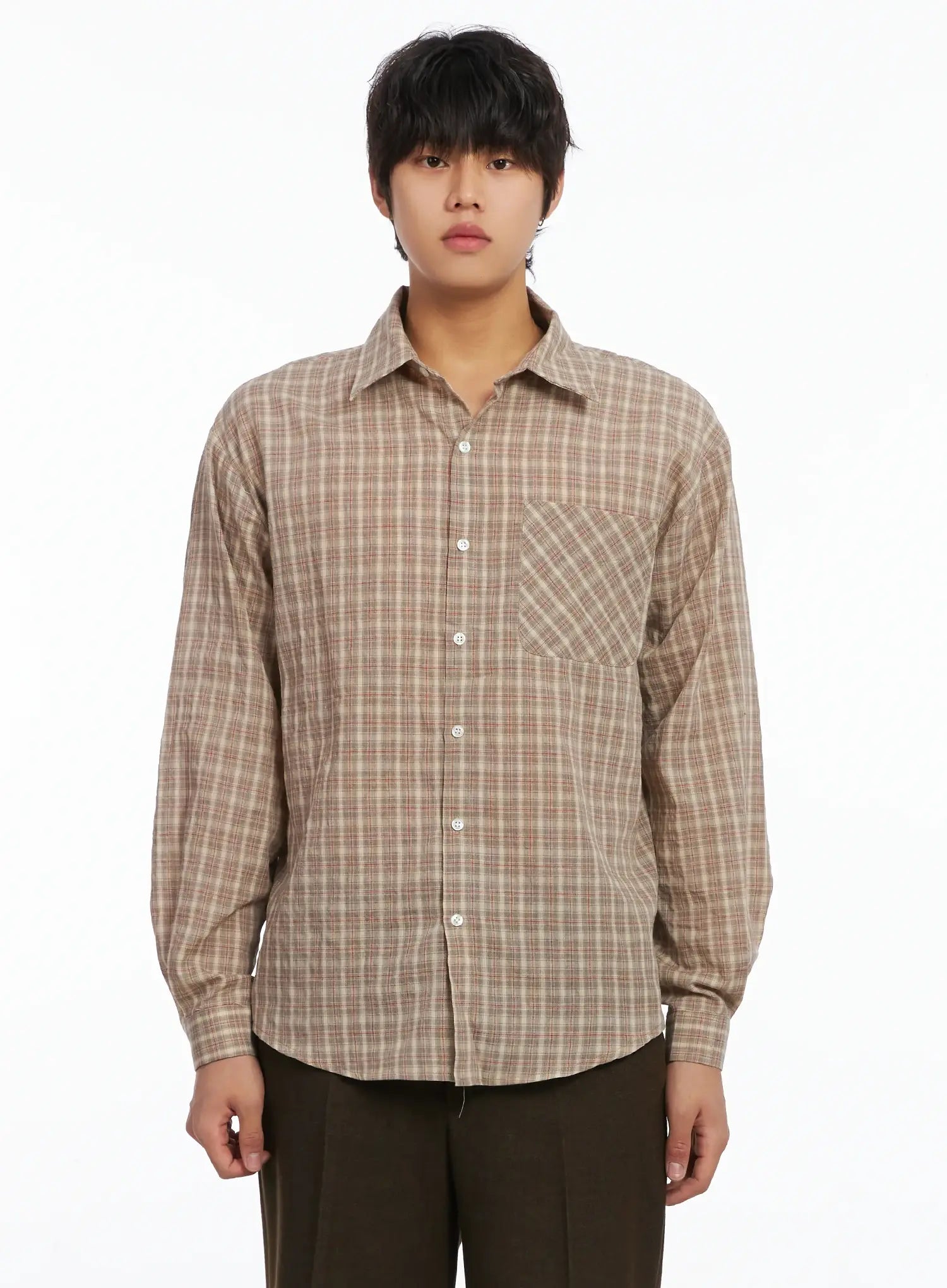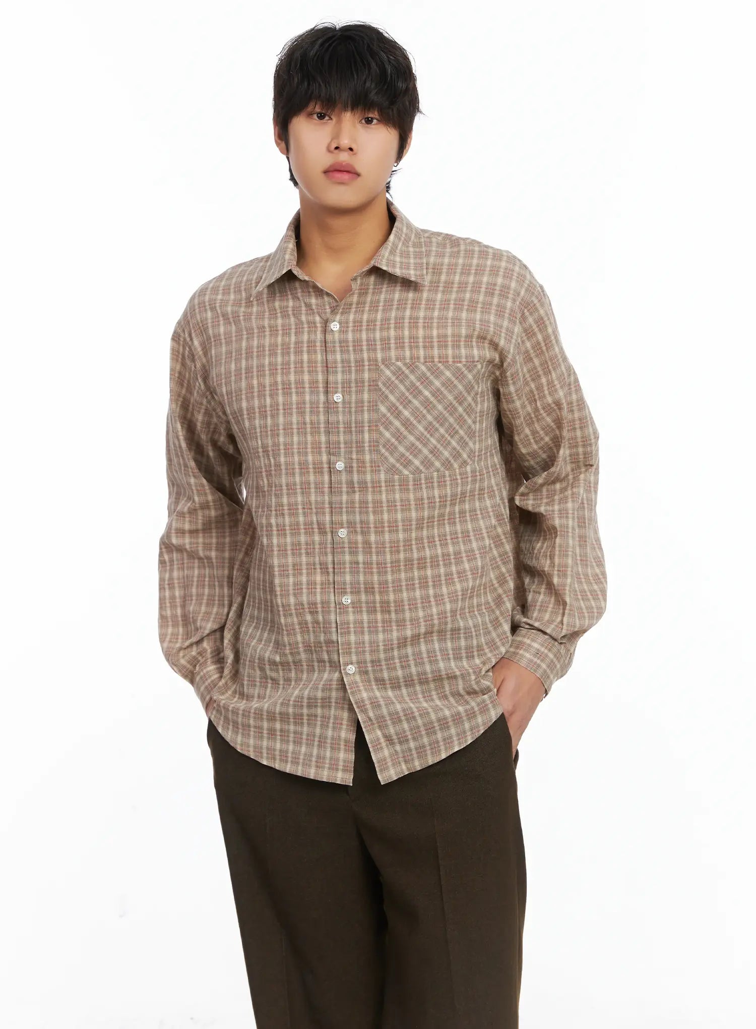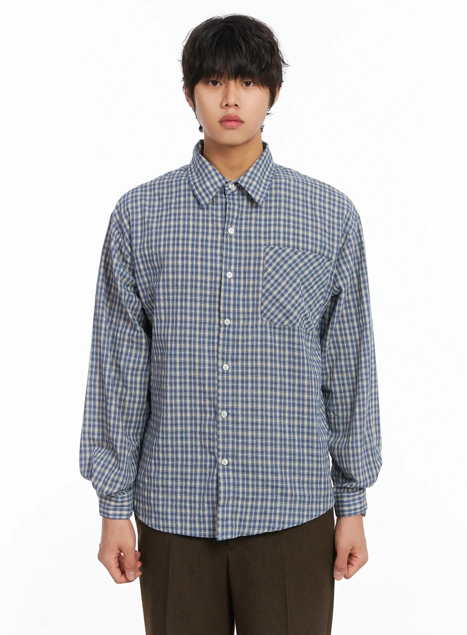Men's Plaid Button-Down Shirt IJ512