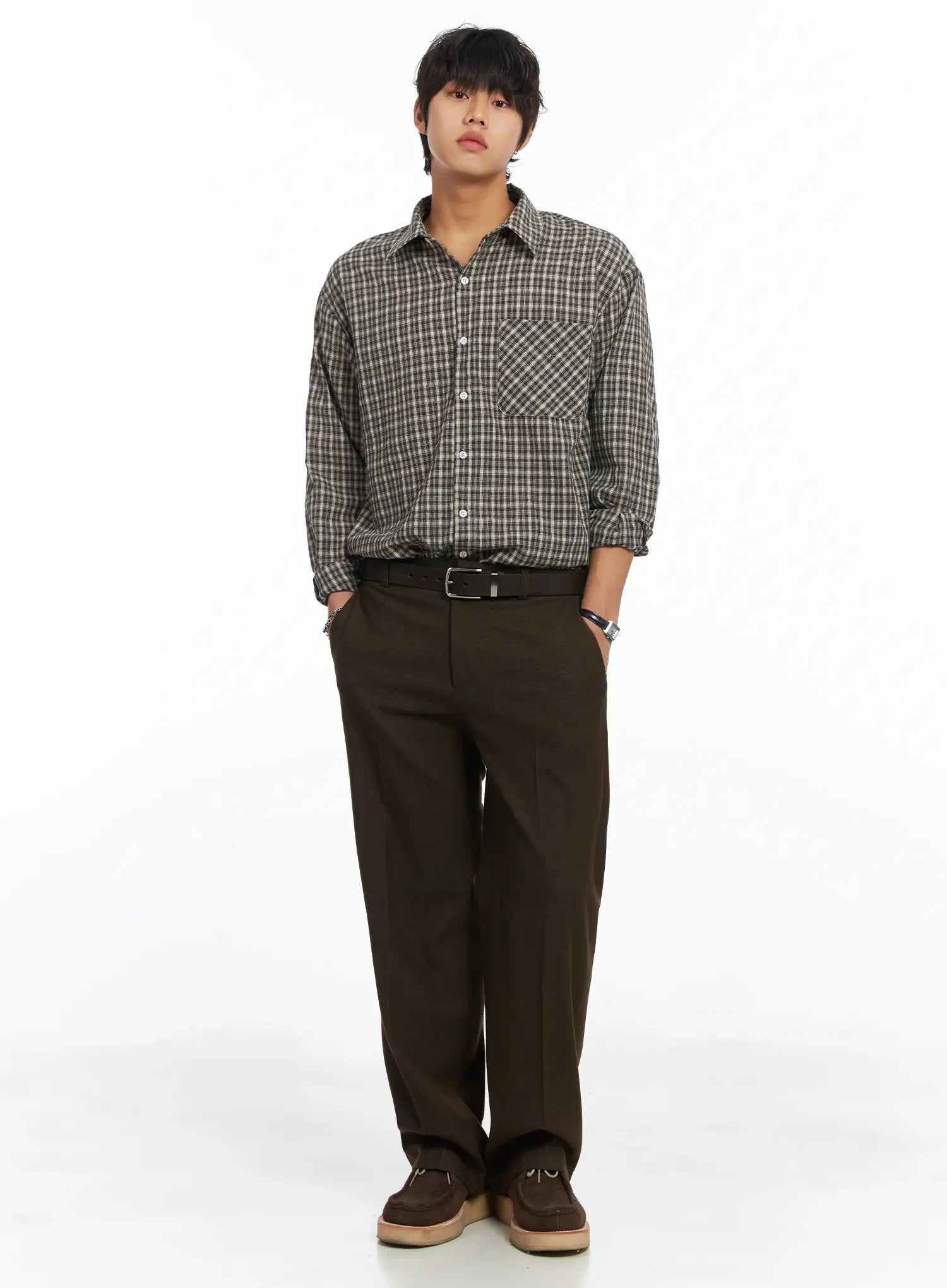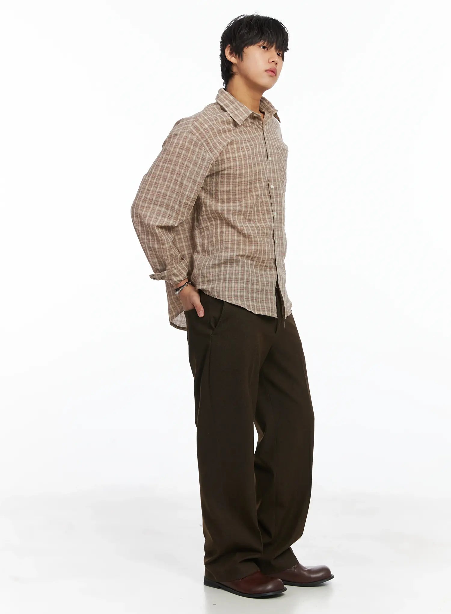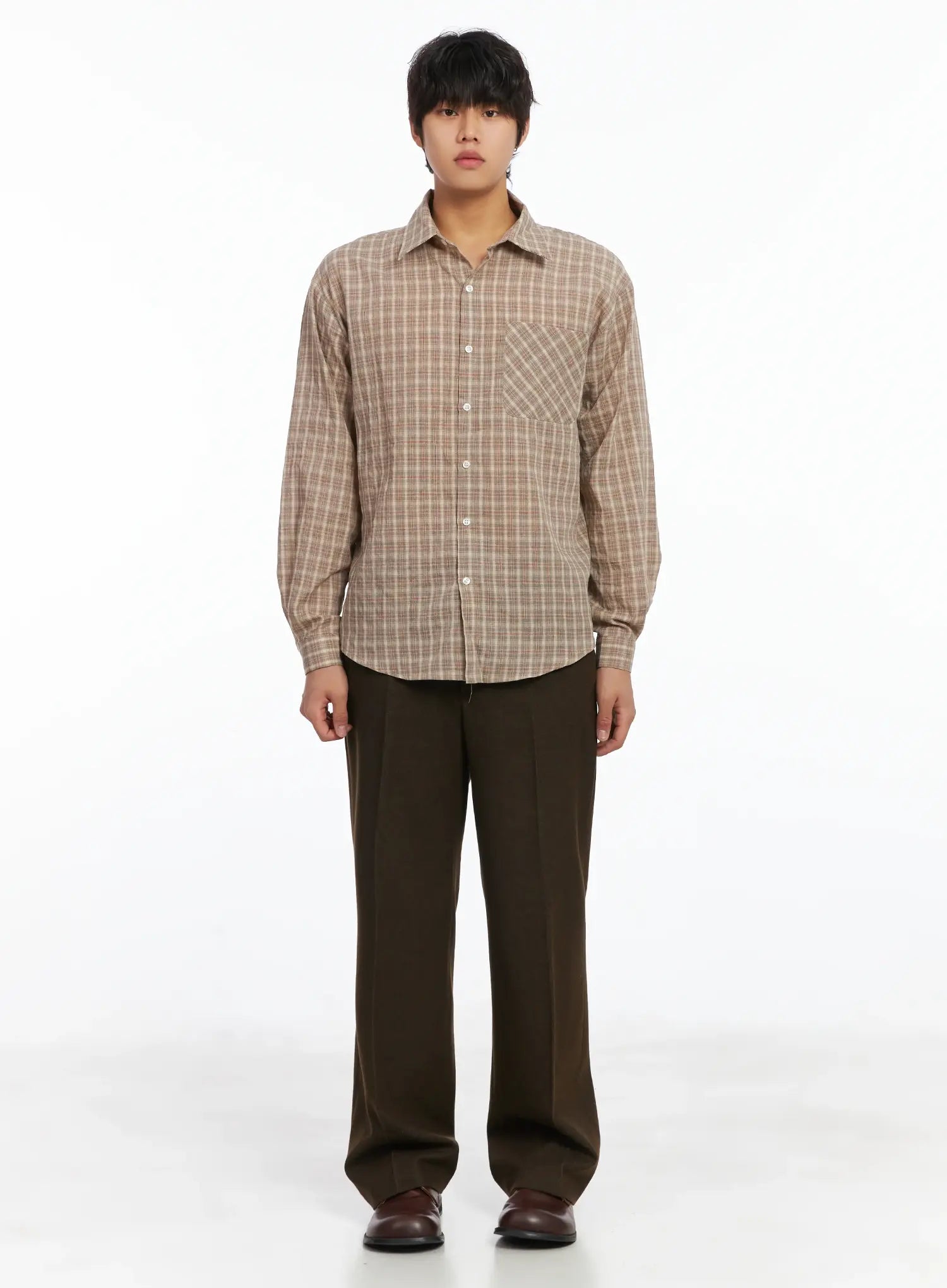 Men's Plaid Button-Down Shirt IJ512