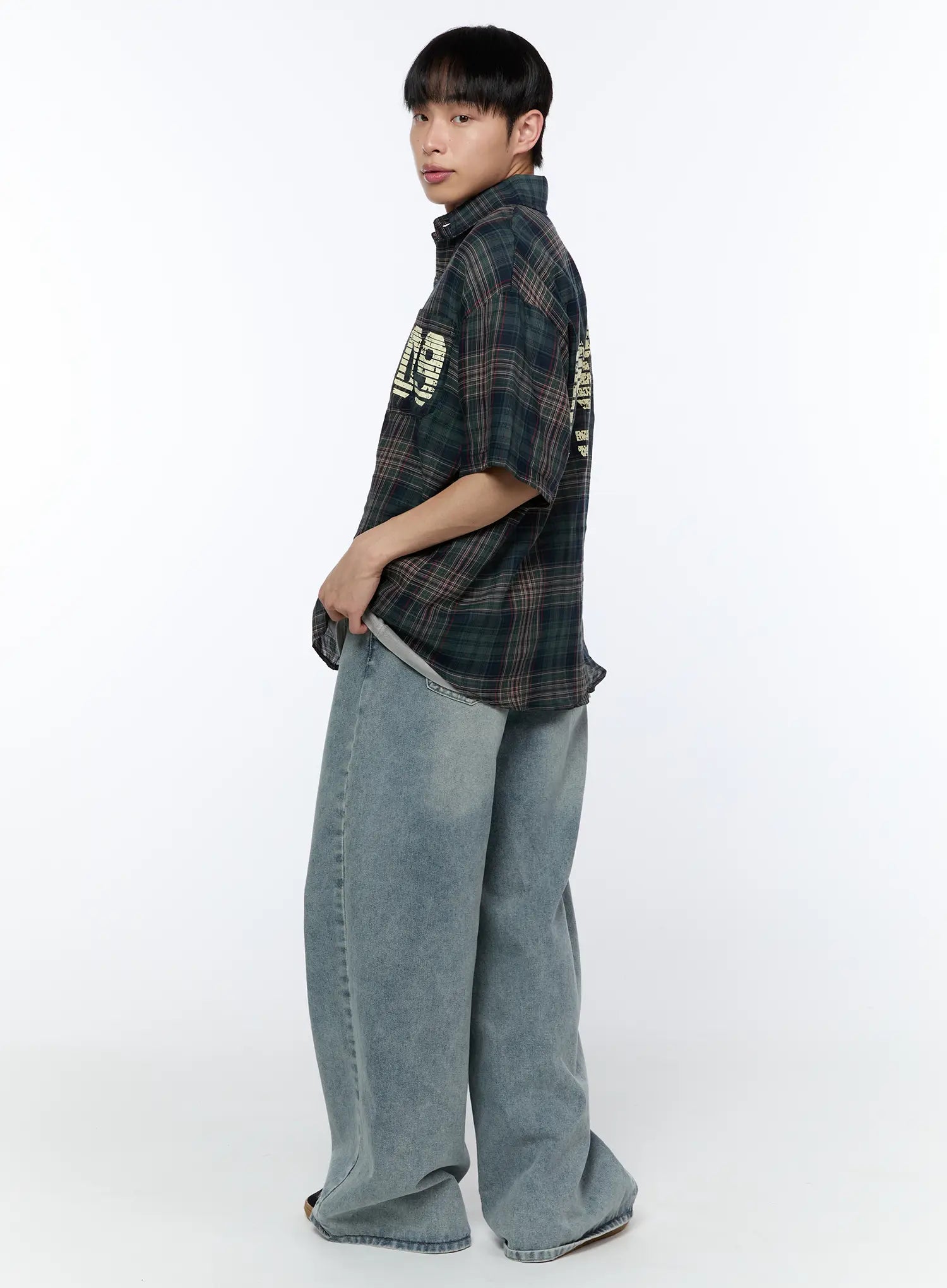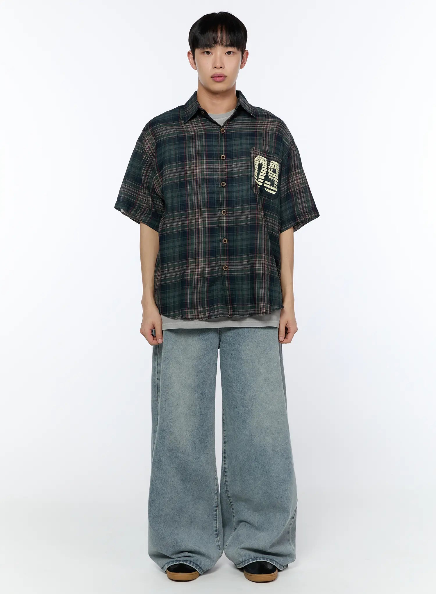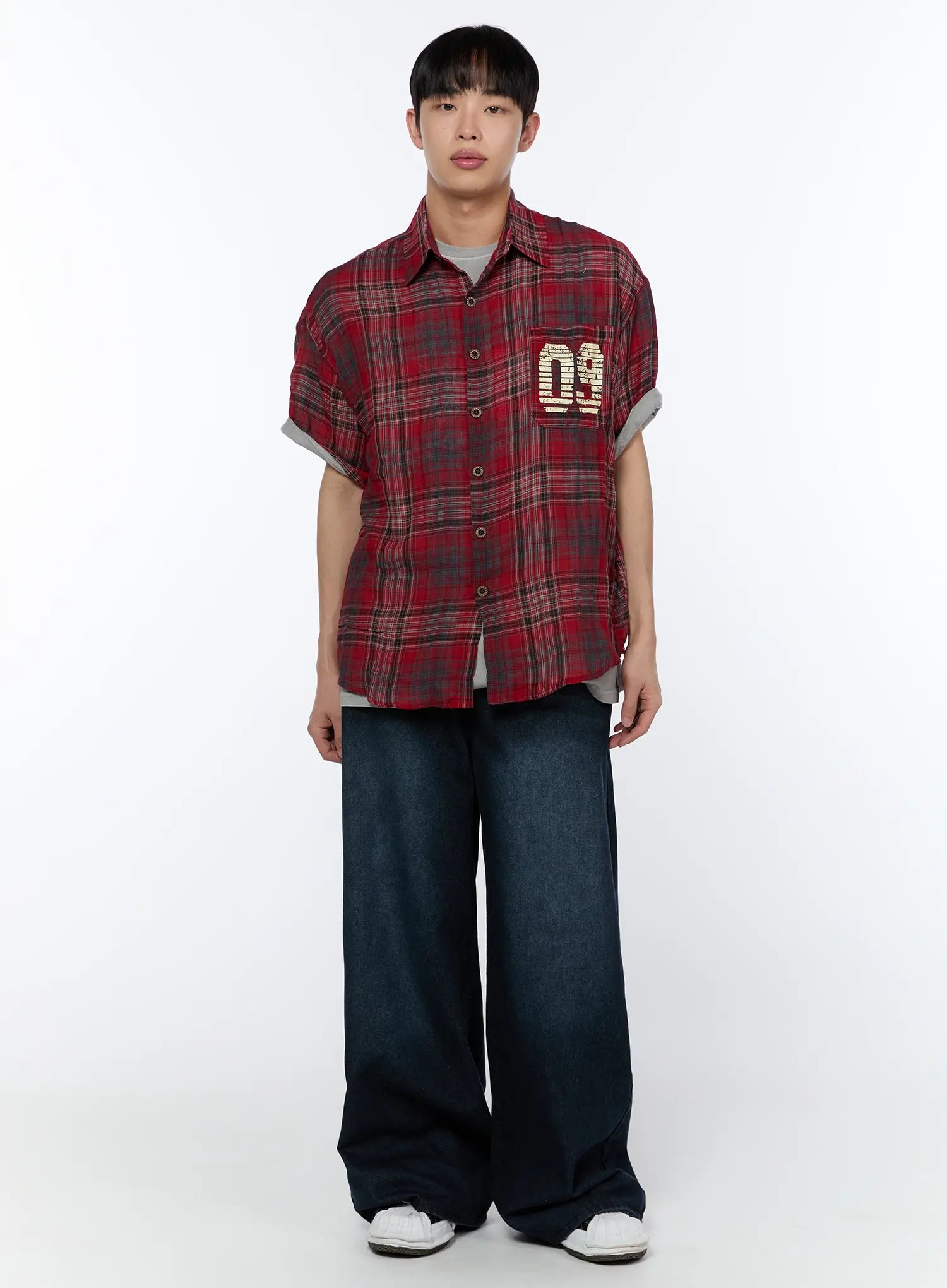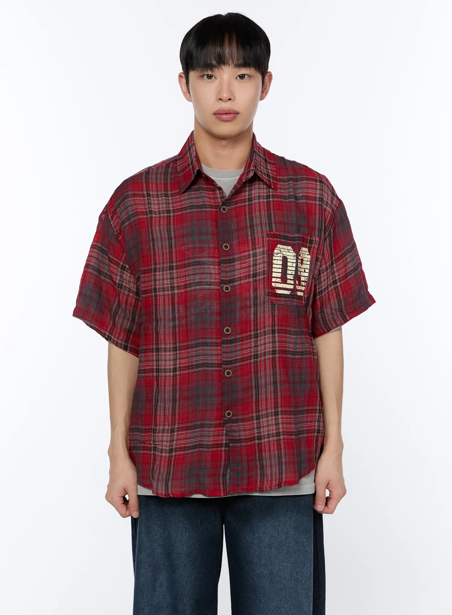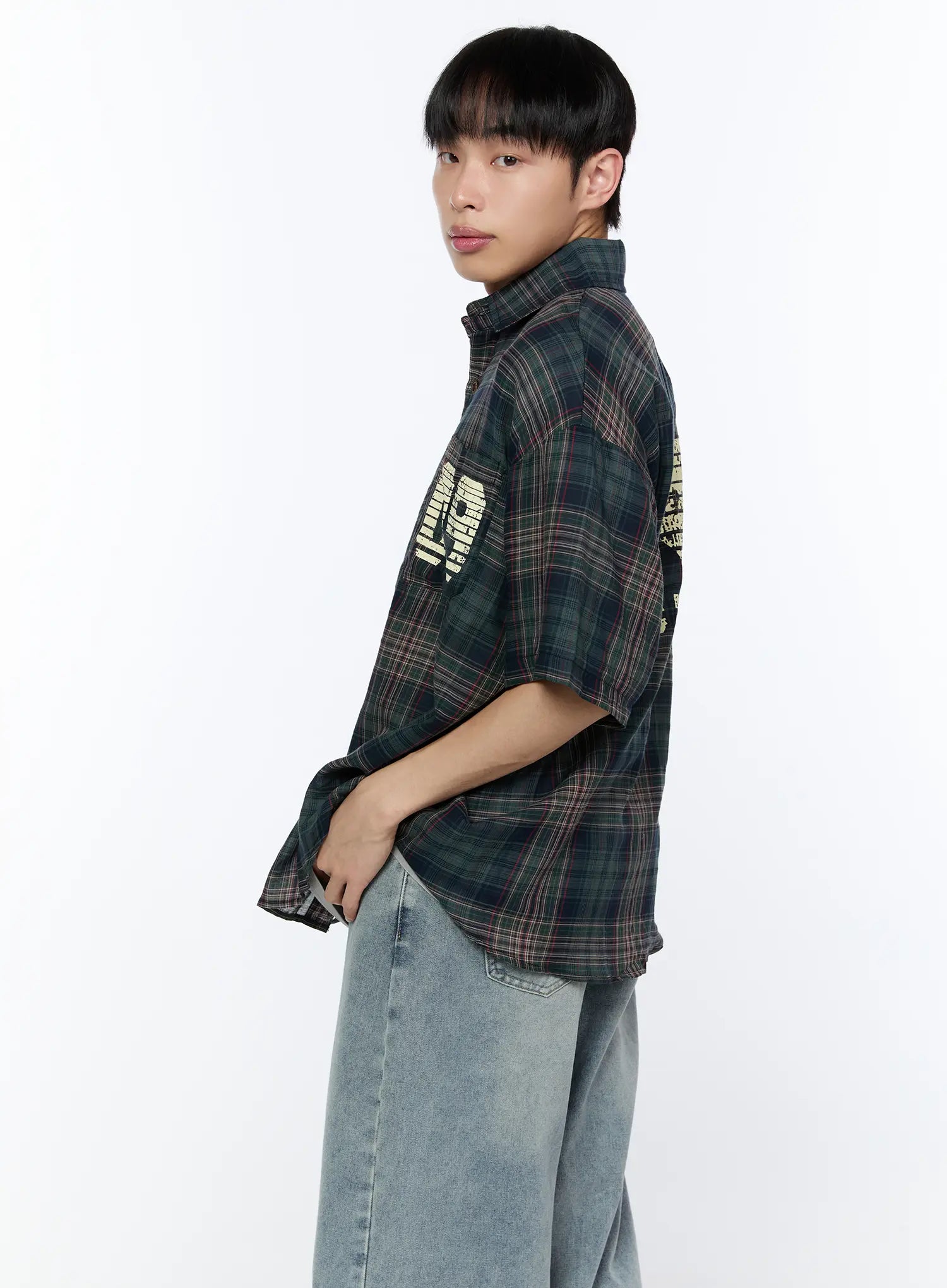 Men's Plaid Graphic Short Sleeve Shirt IA520
