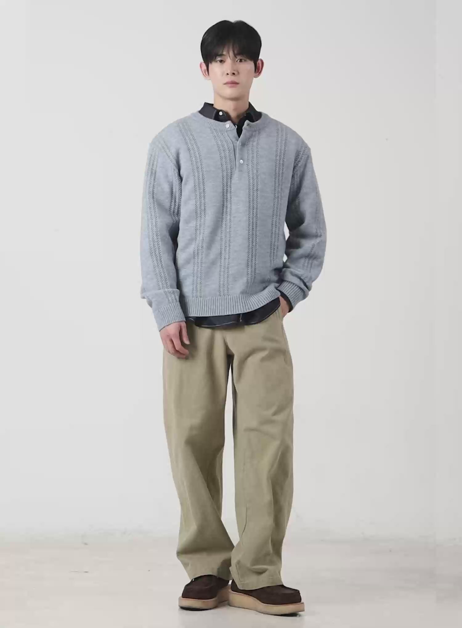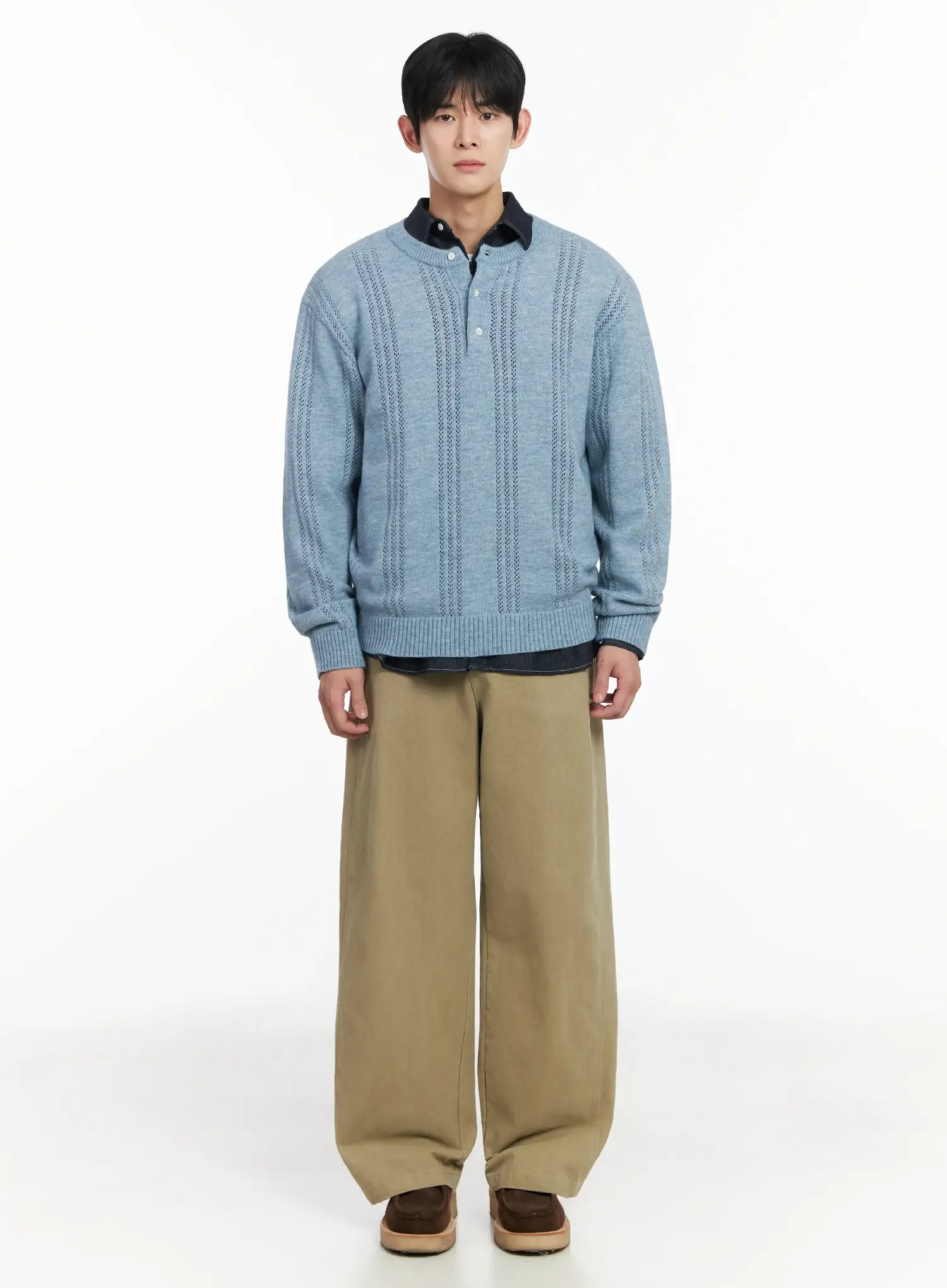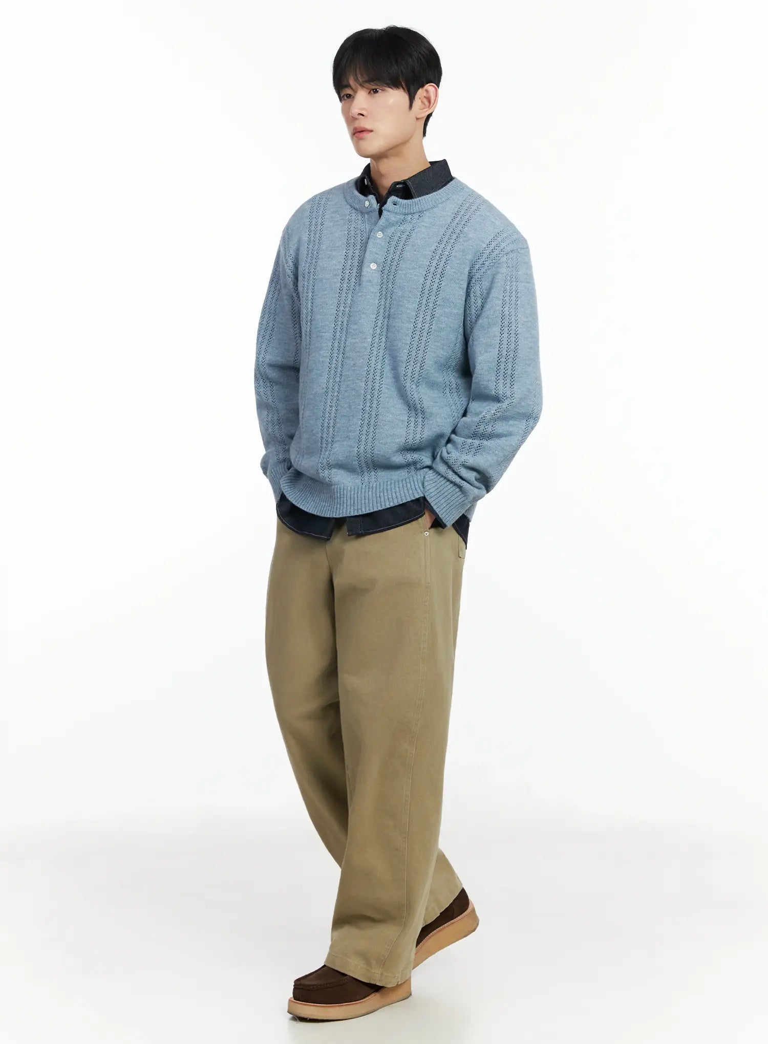 Men's Pointelle Henley Knit Sweater IF517