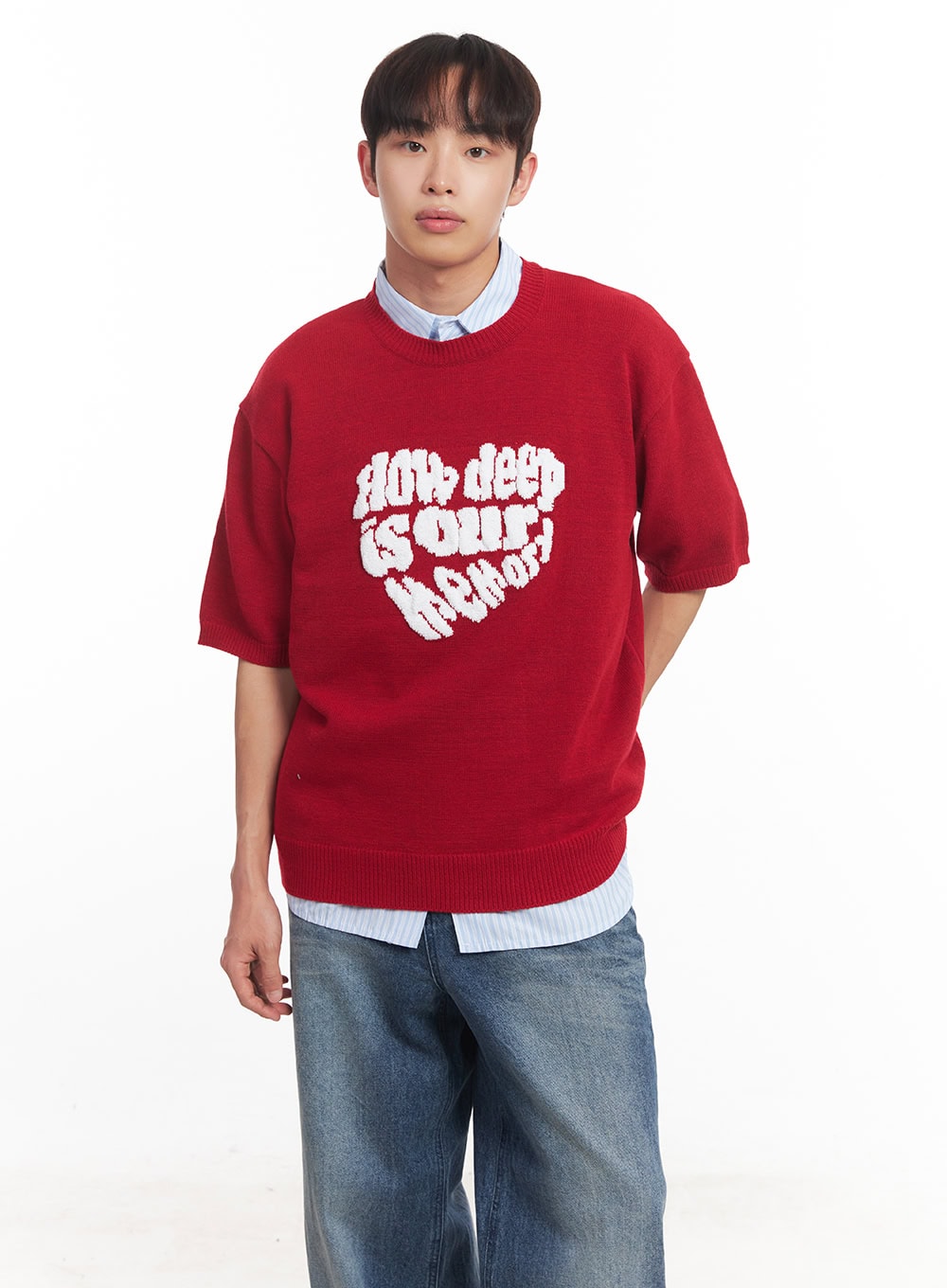Men's Short Sleeve Buttoned Striped Shirt IA521