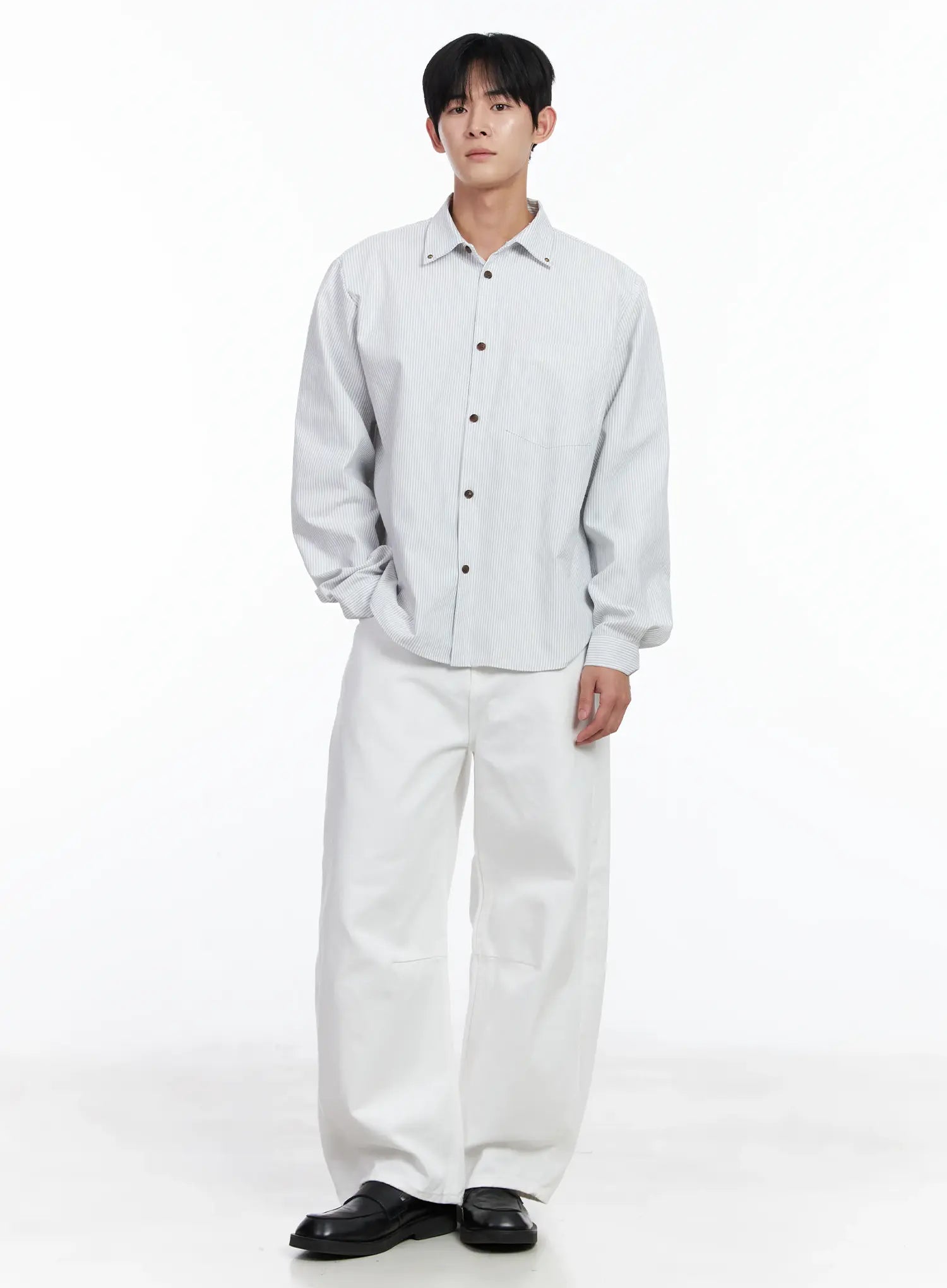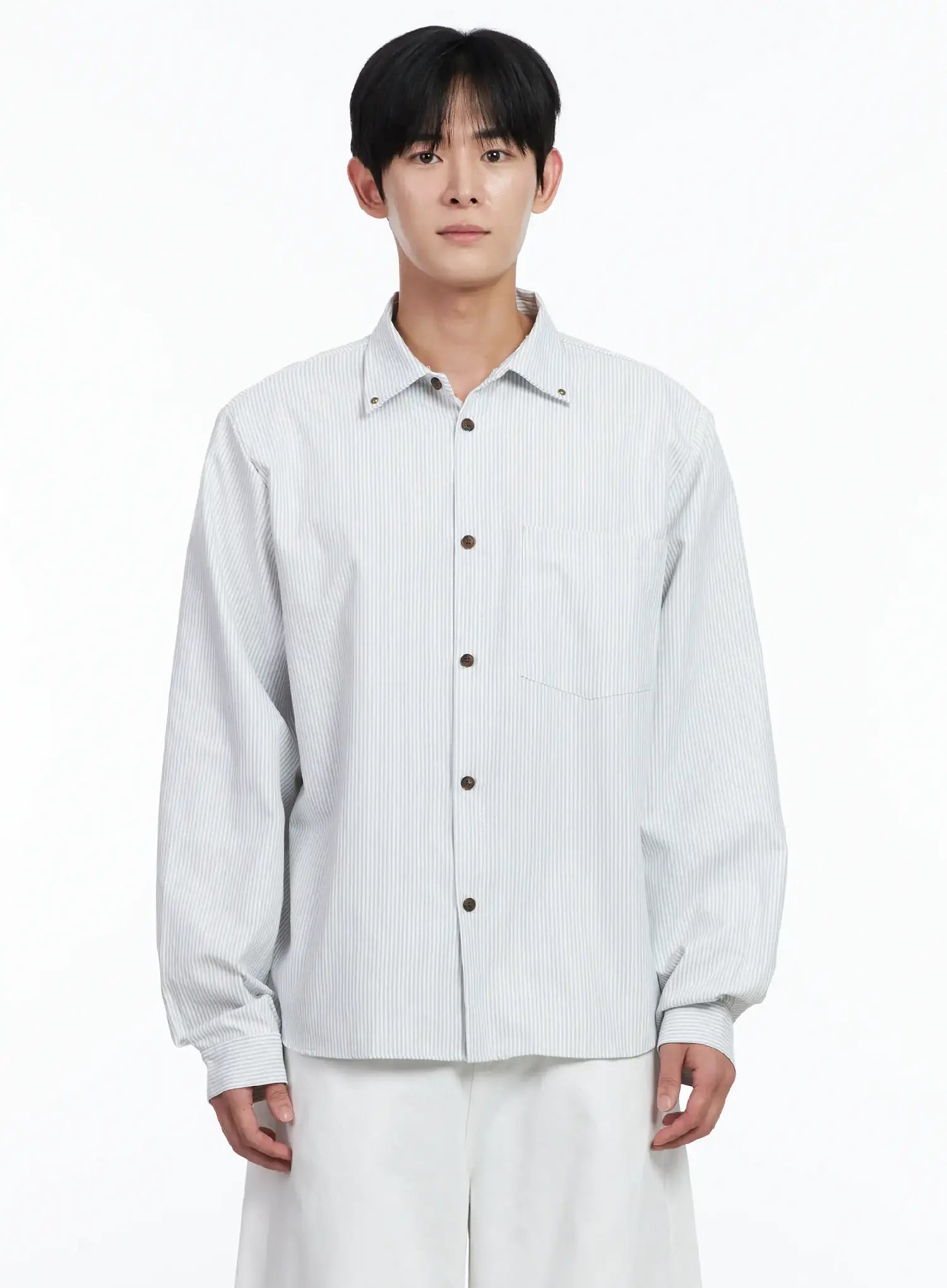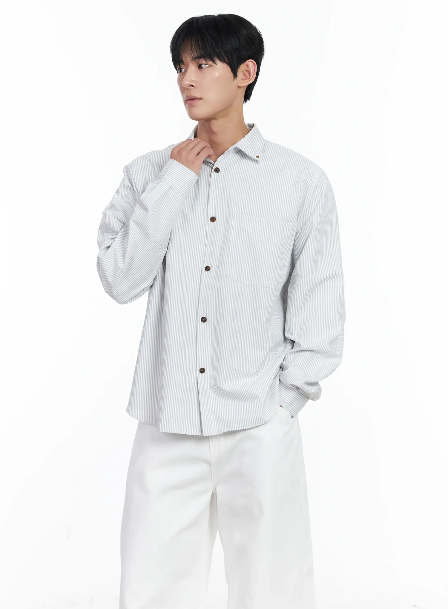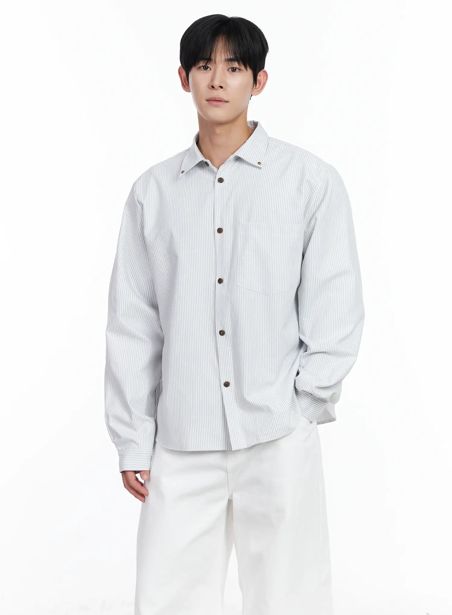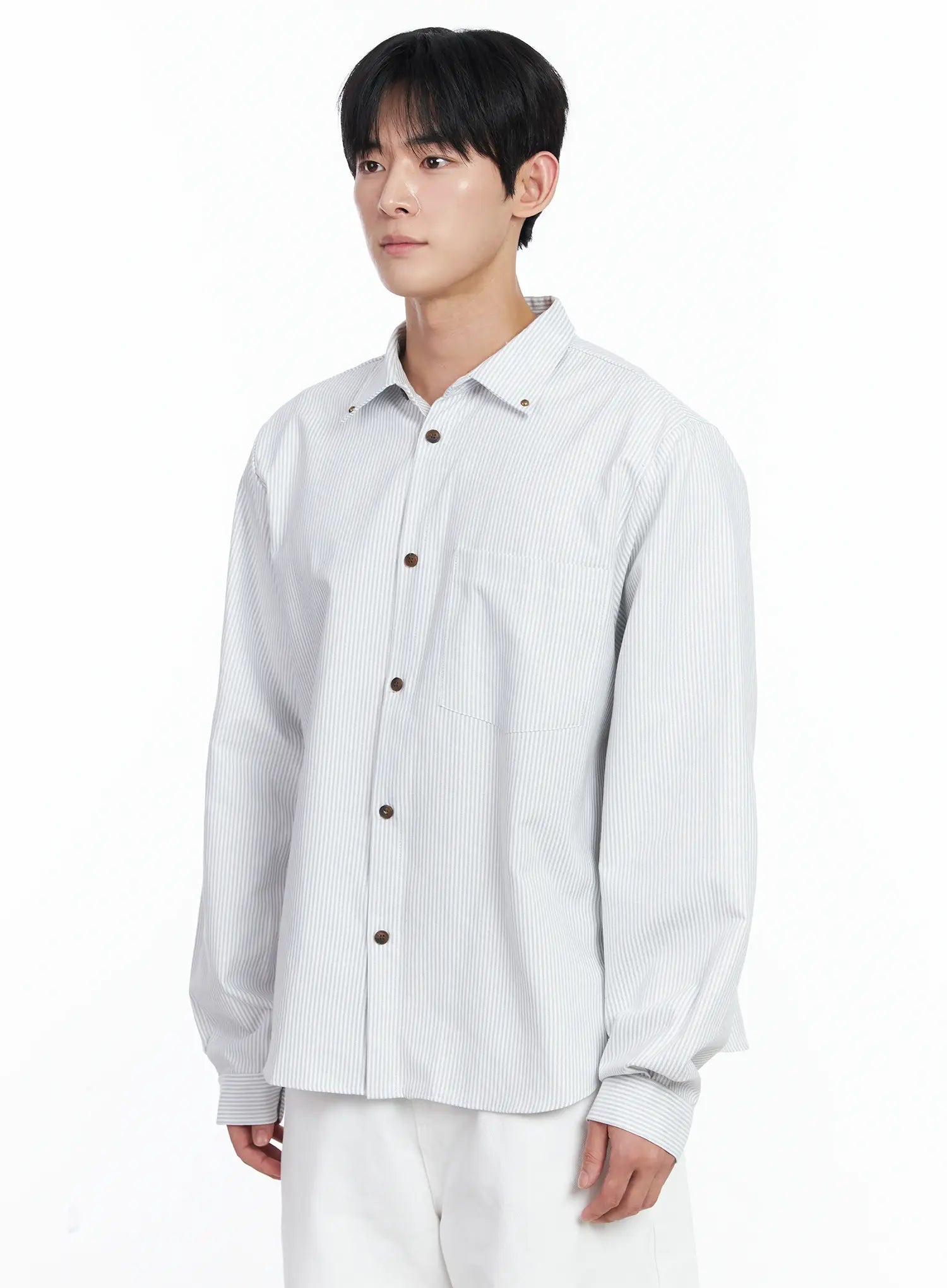 Men's Simple Striped Button-Up Shirt IJ521
