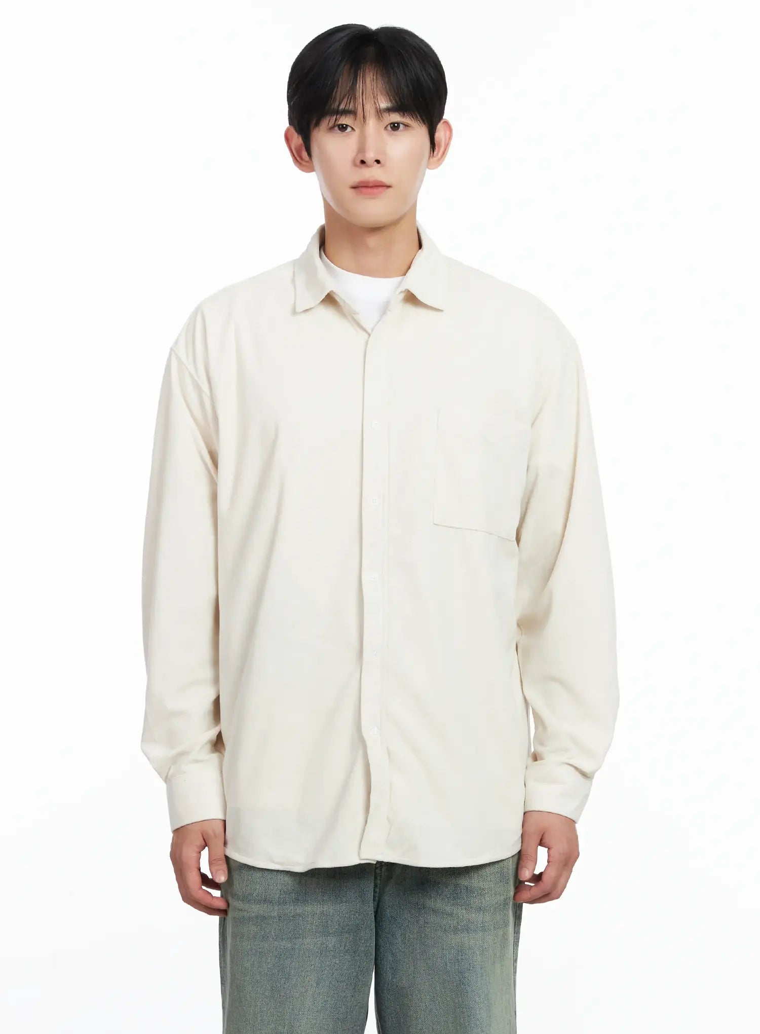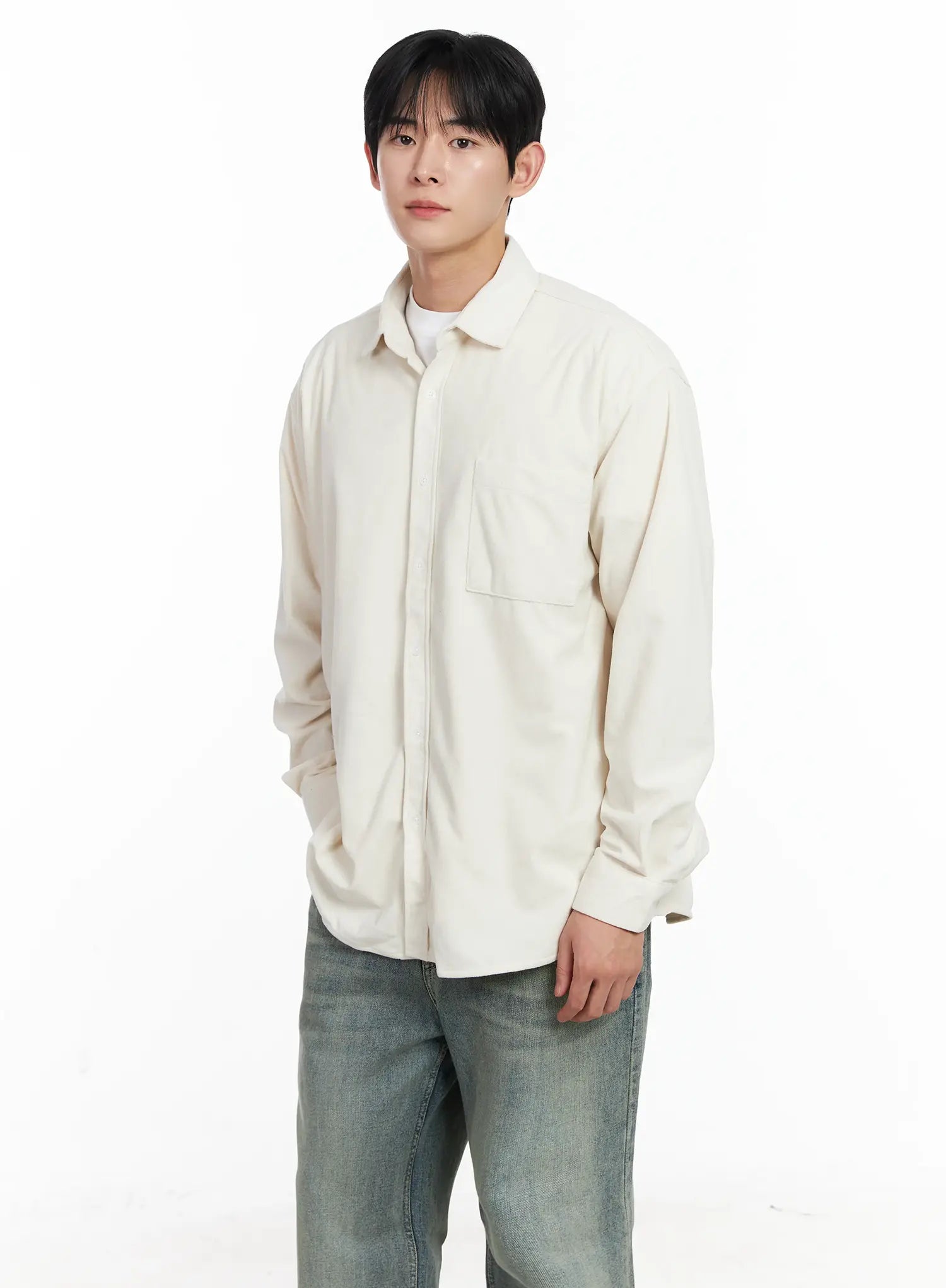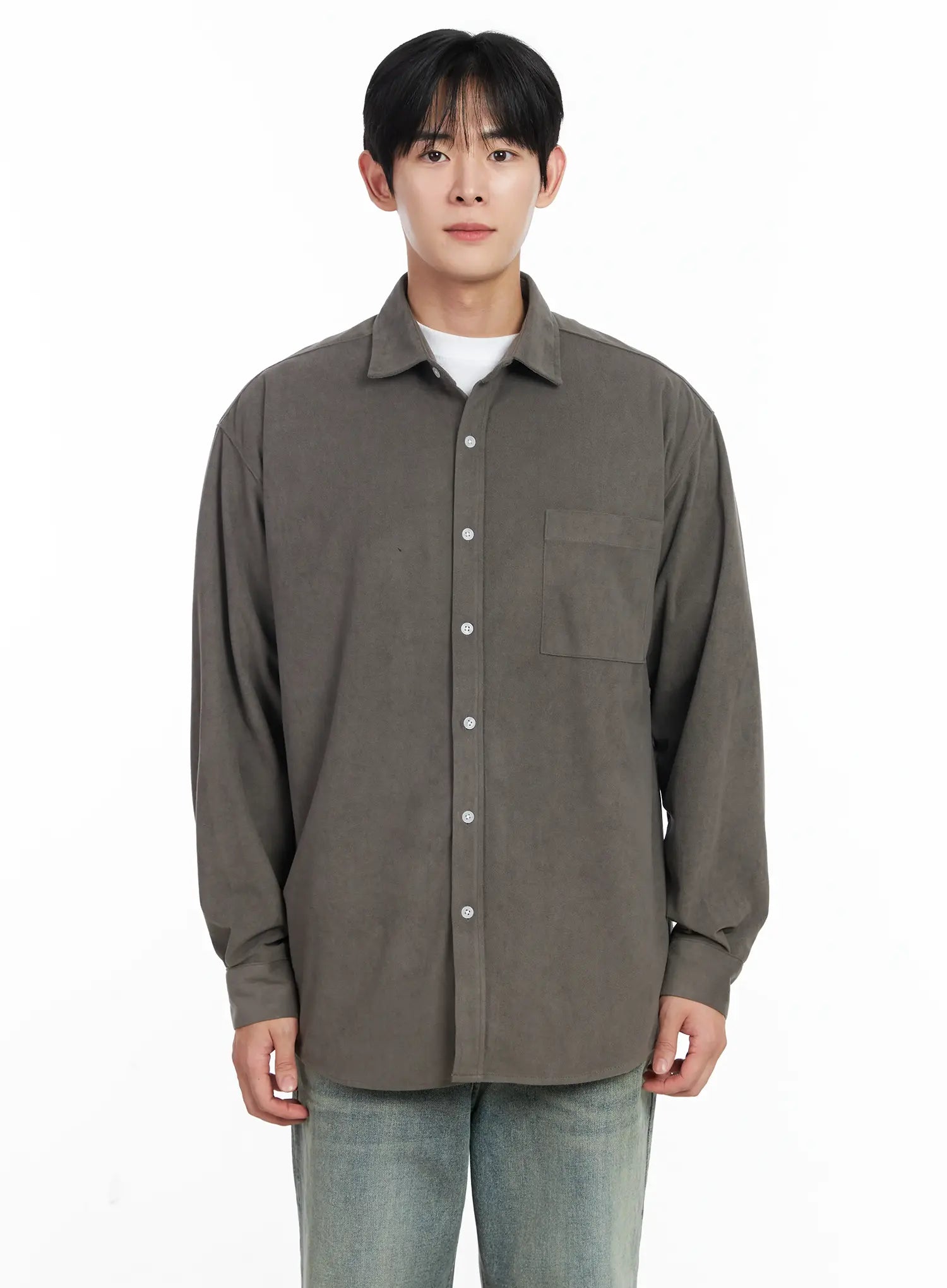 Men's Simple Suede Button-Up Shirt IJ521