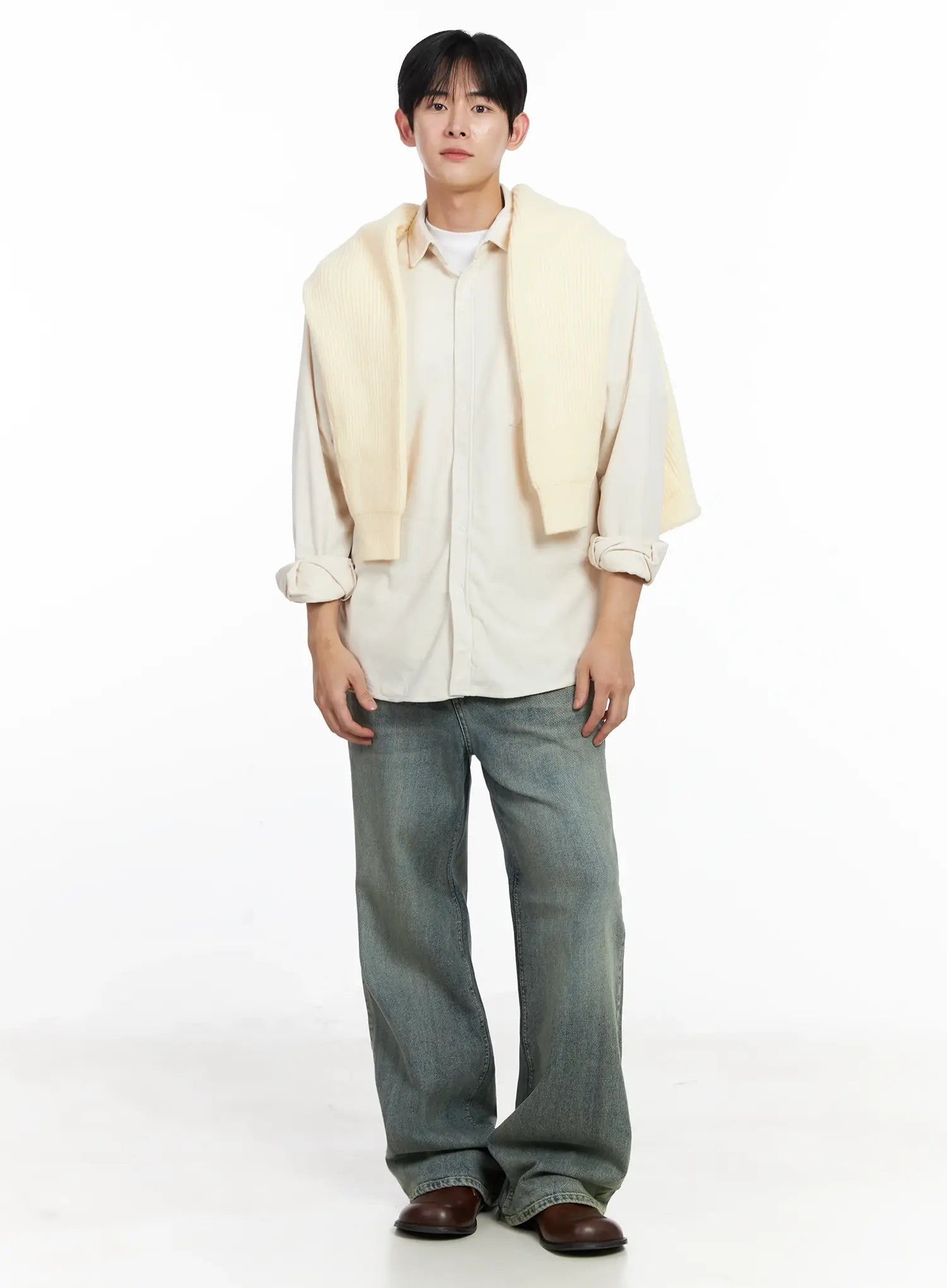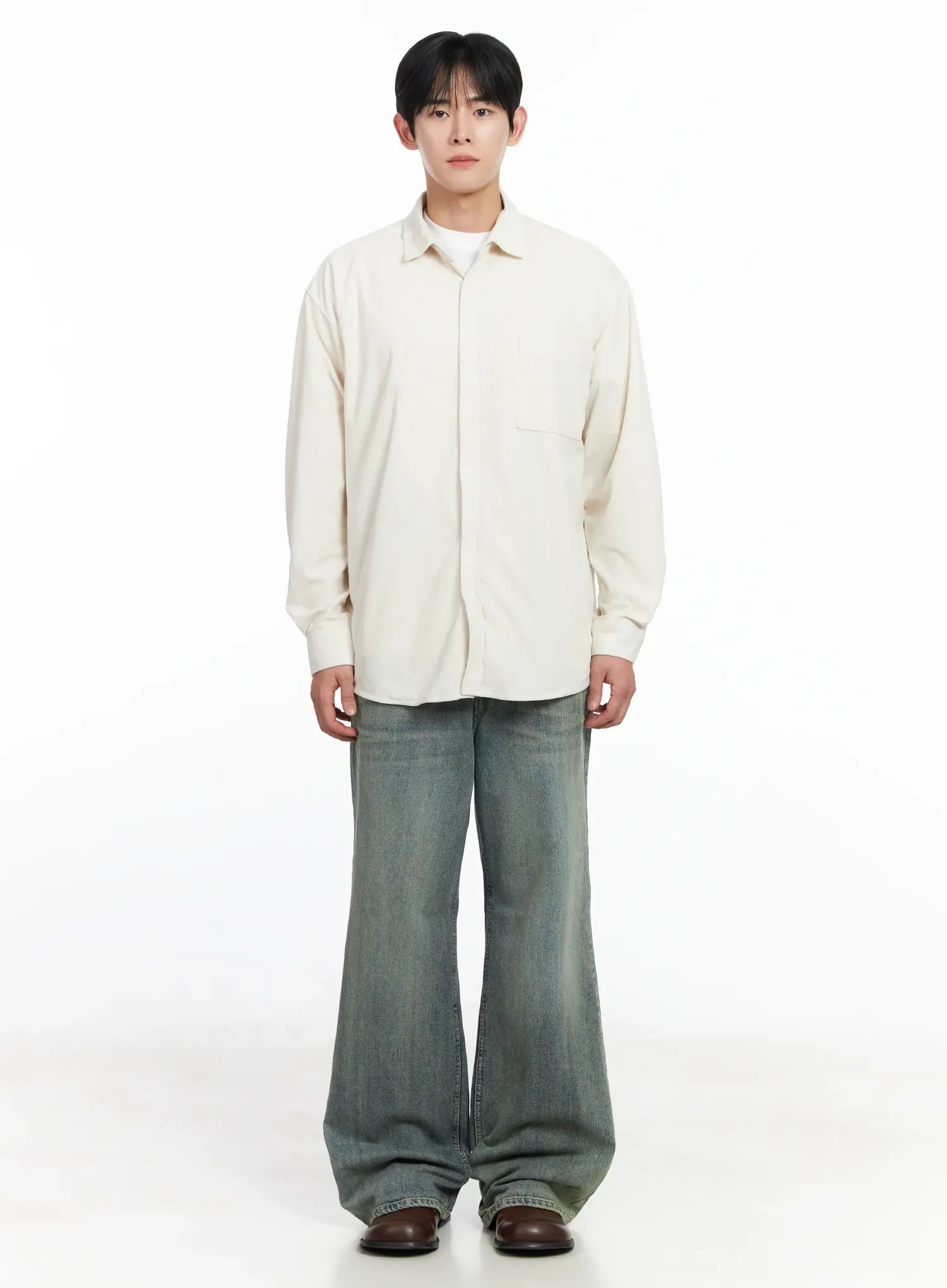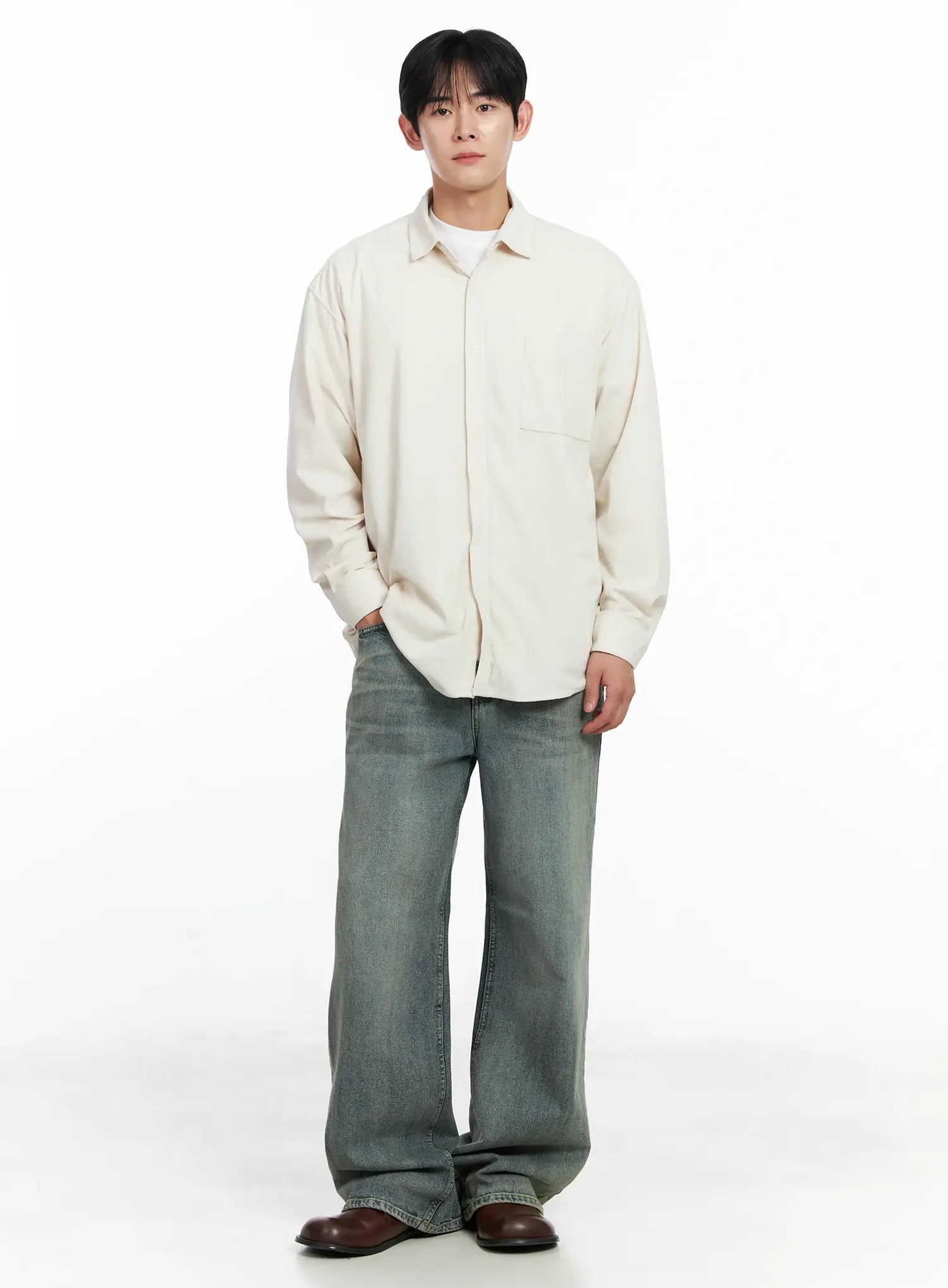 Men's Simple Suede Button-Up Shirt IJ521