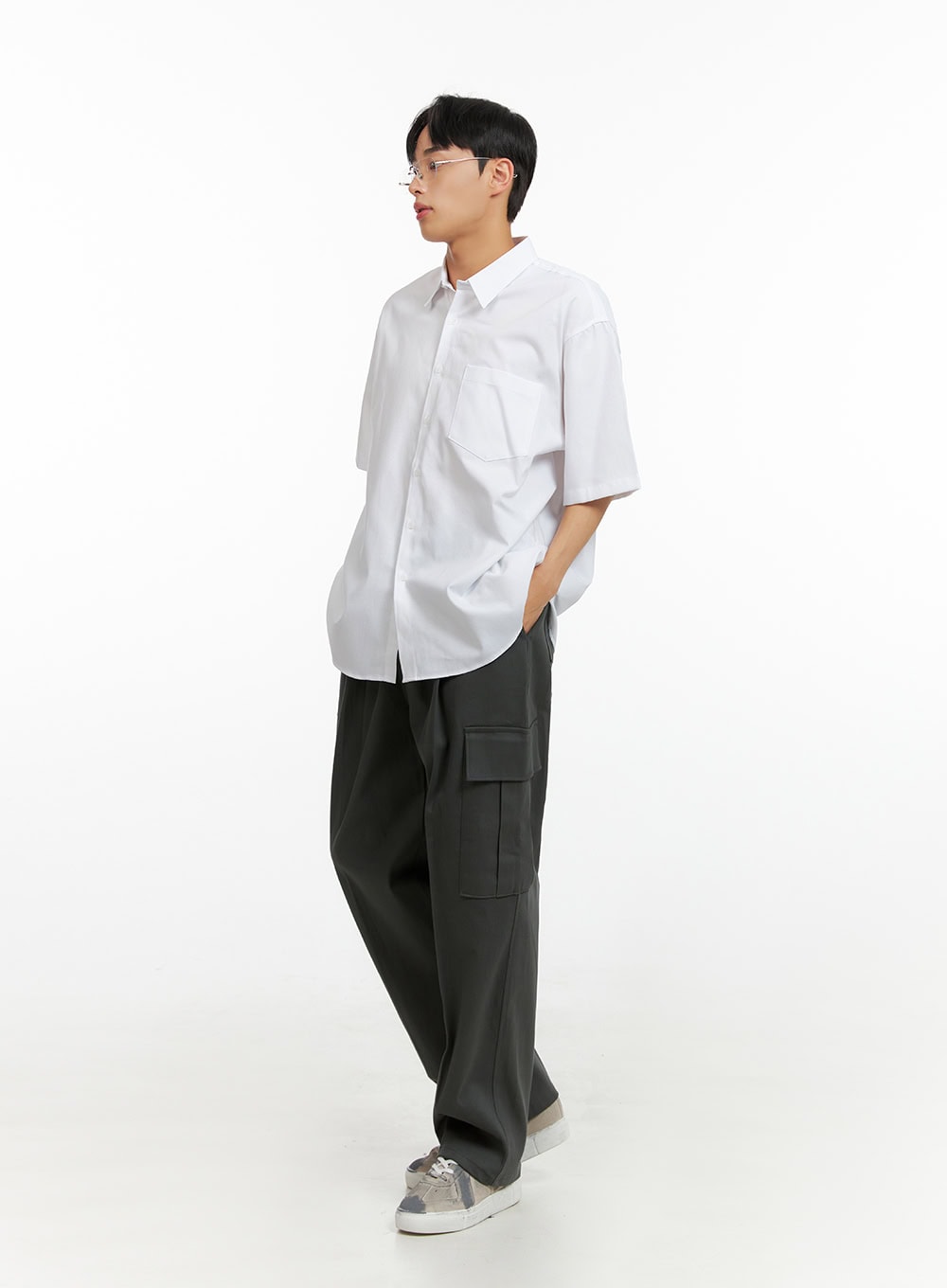 Men's Solid Cargo Pants (Dark Gray) IU414