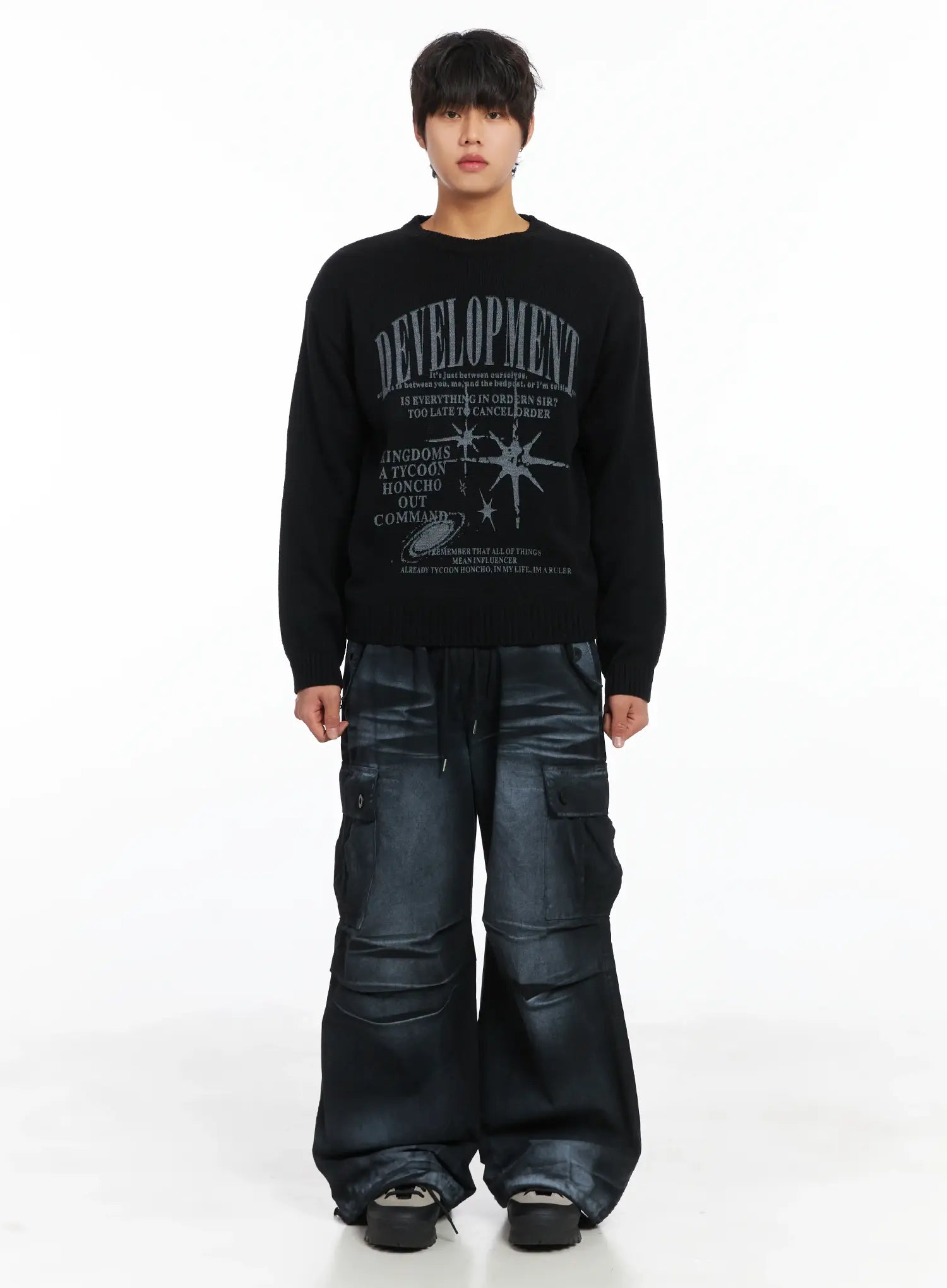 Men's Spray Wash Wide-Leg Cargo Pants IJ512